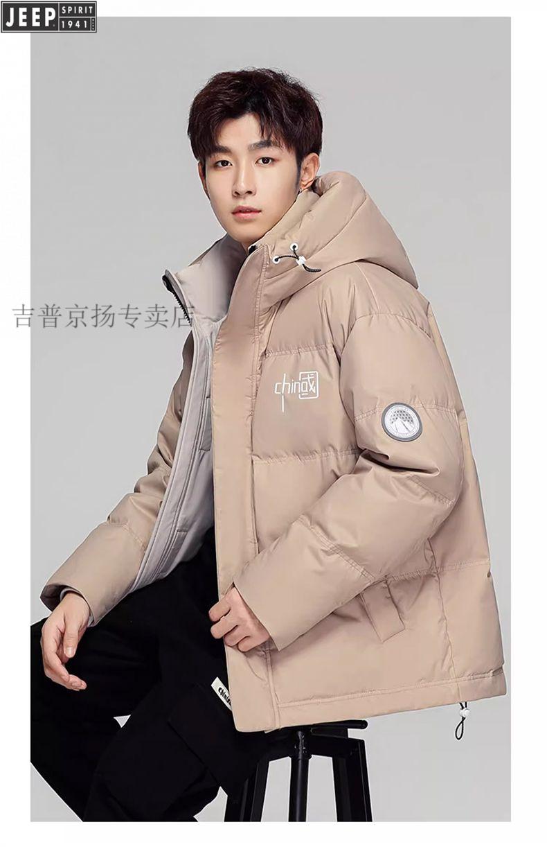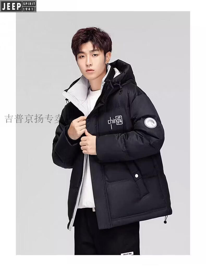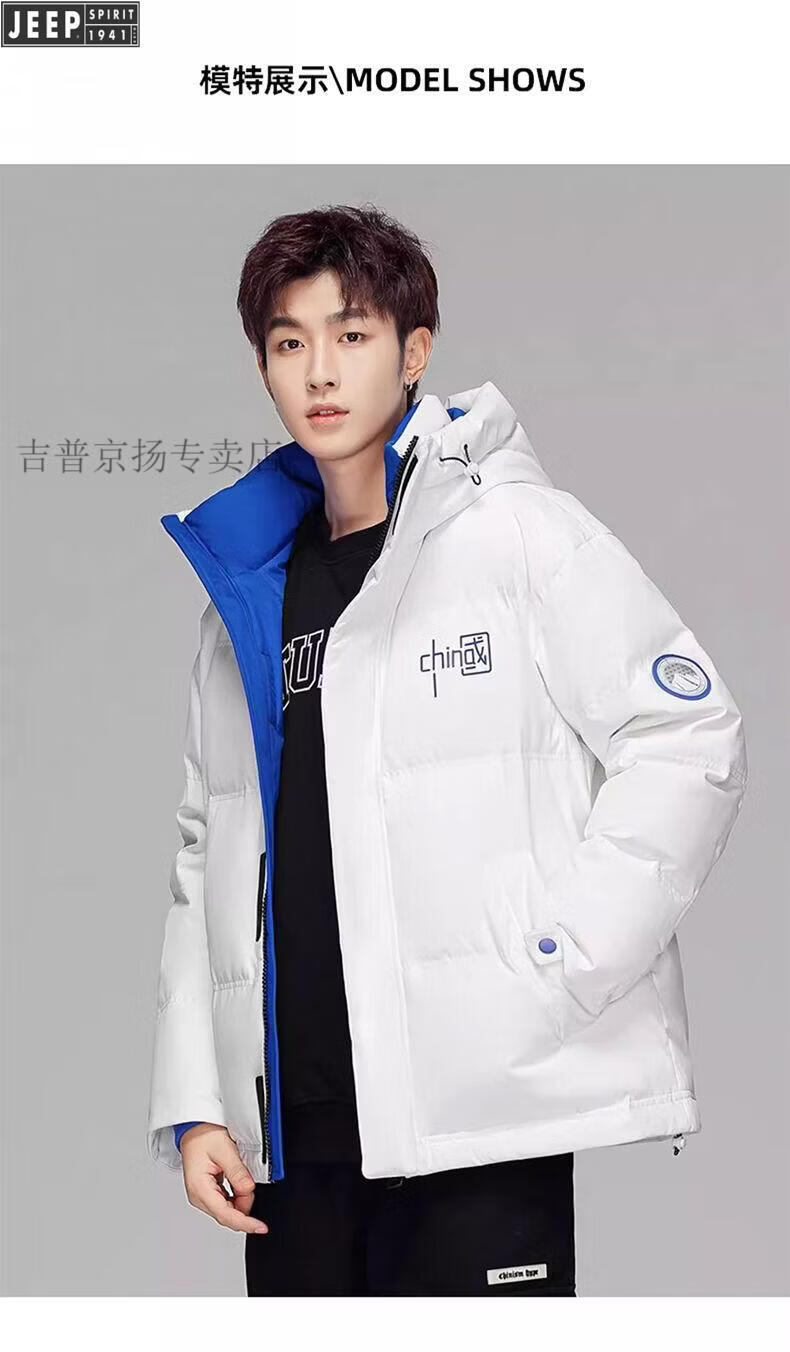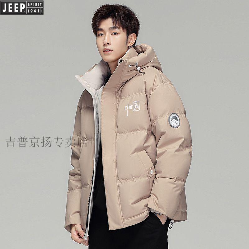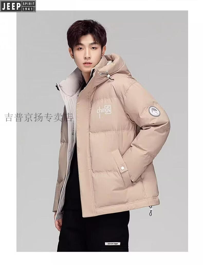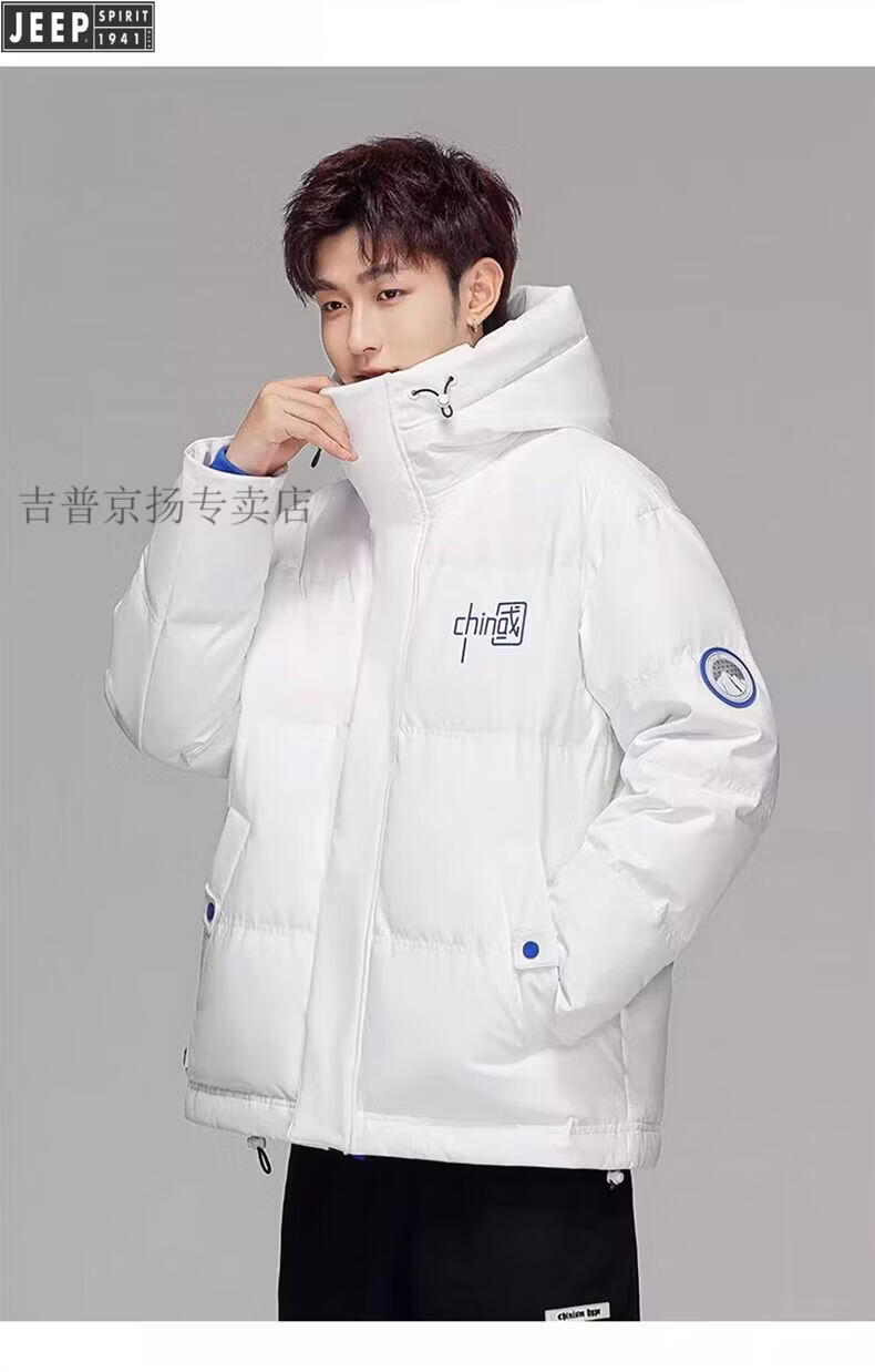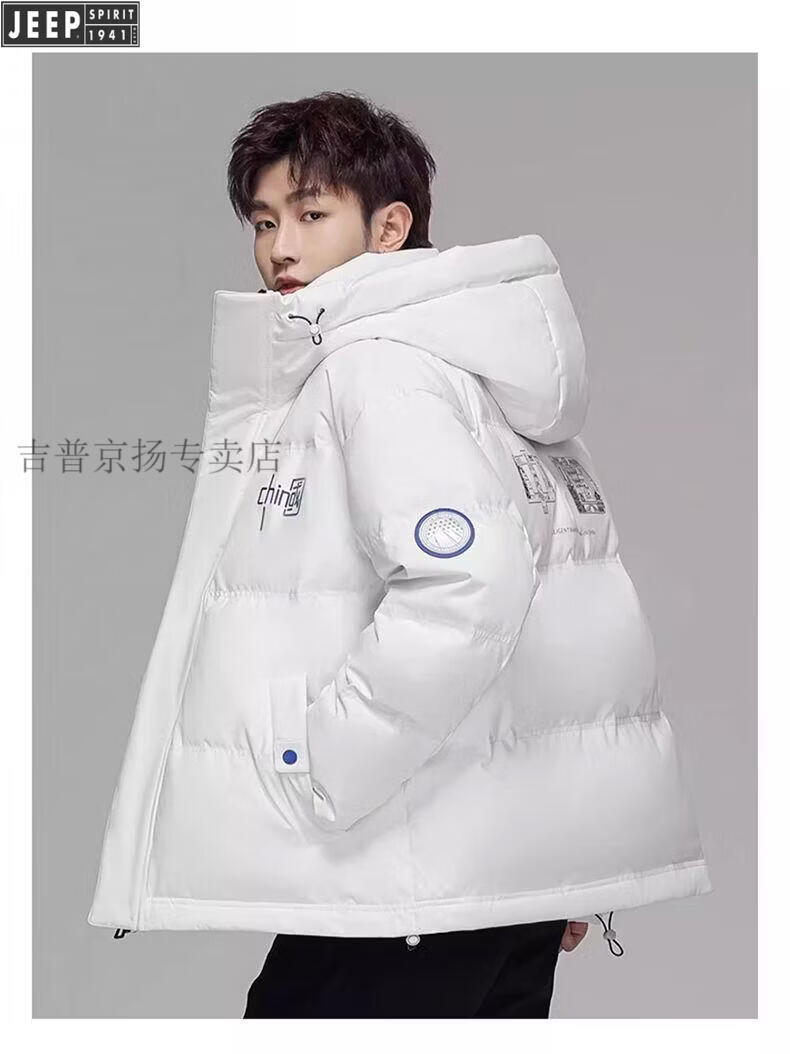 JEEP Мужской зимний утепленный короткий пуховик JEEP Jeep International, новинка 2025 года, молодежная теплая куртка белого цвета, L Рекомендуемый размер (121-135Jin Jin равен 0,5 кг)