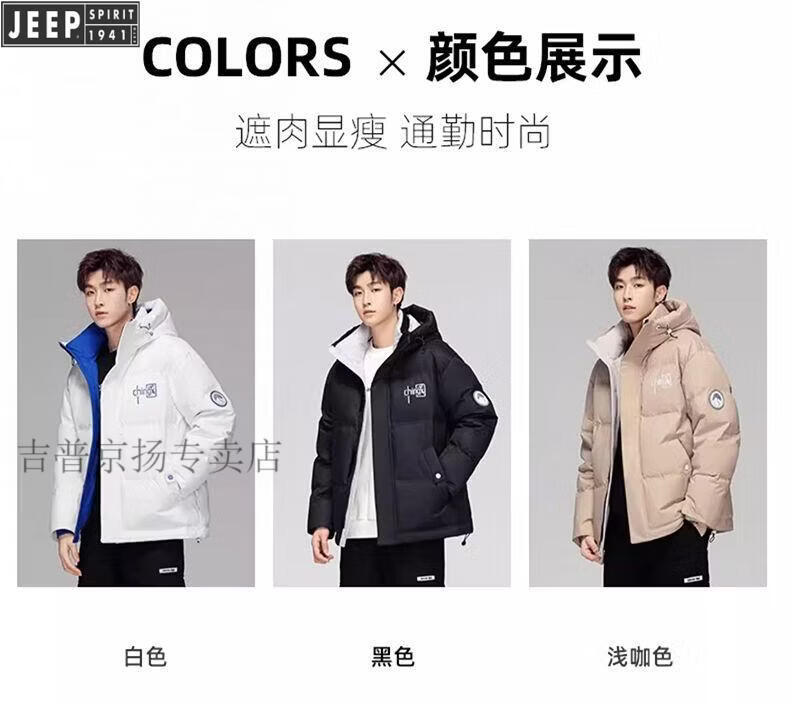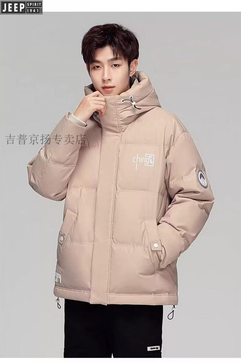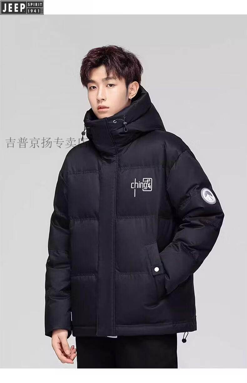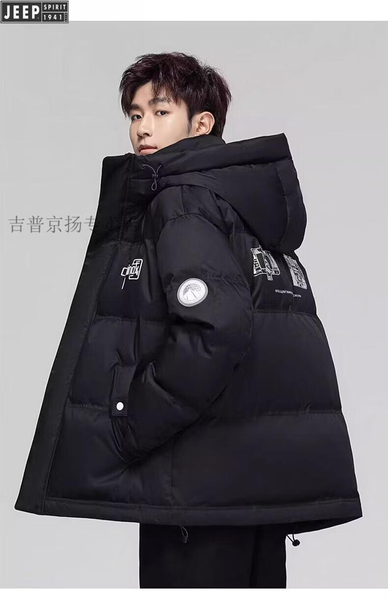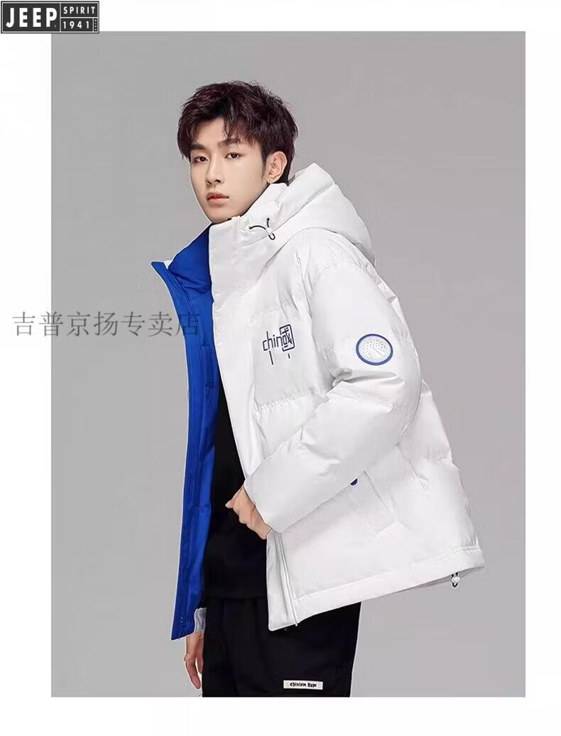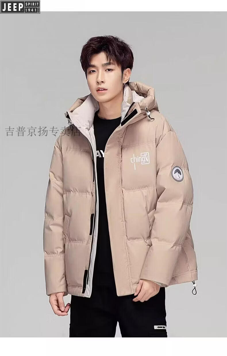 JEEP Мужской зимний утепленный короткий пуховик JEEP Jeep International, новинка 2025 года, молодежная теплая куртка белого цвета, L Рекомендуемый размер (121-135Jin Jin равен 0,5 кг)