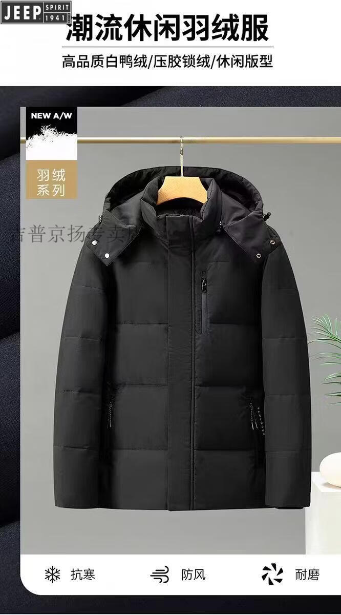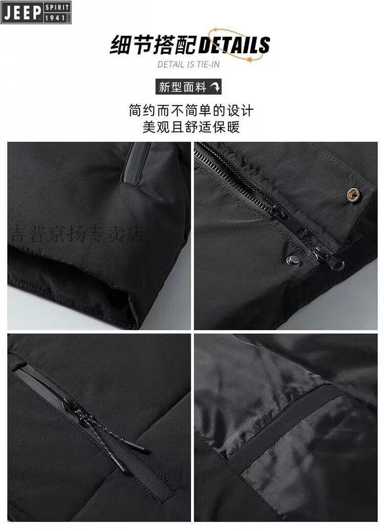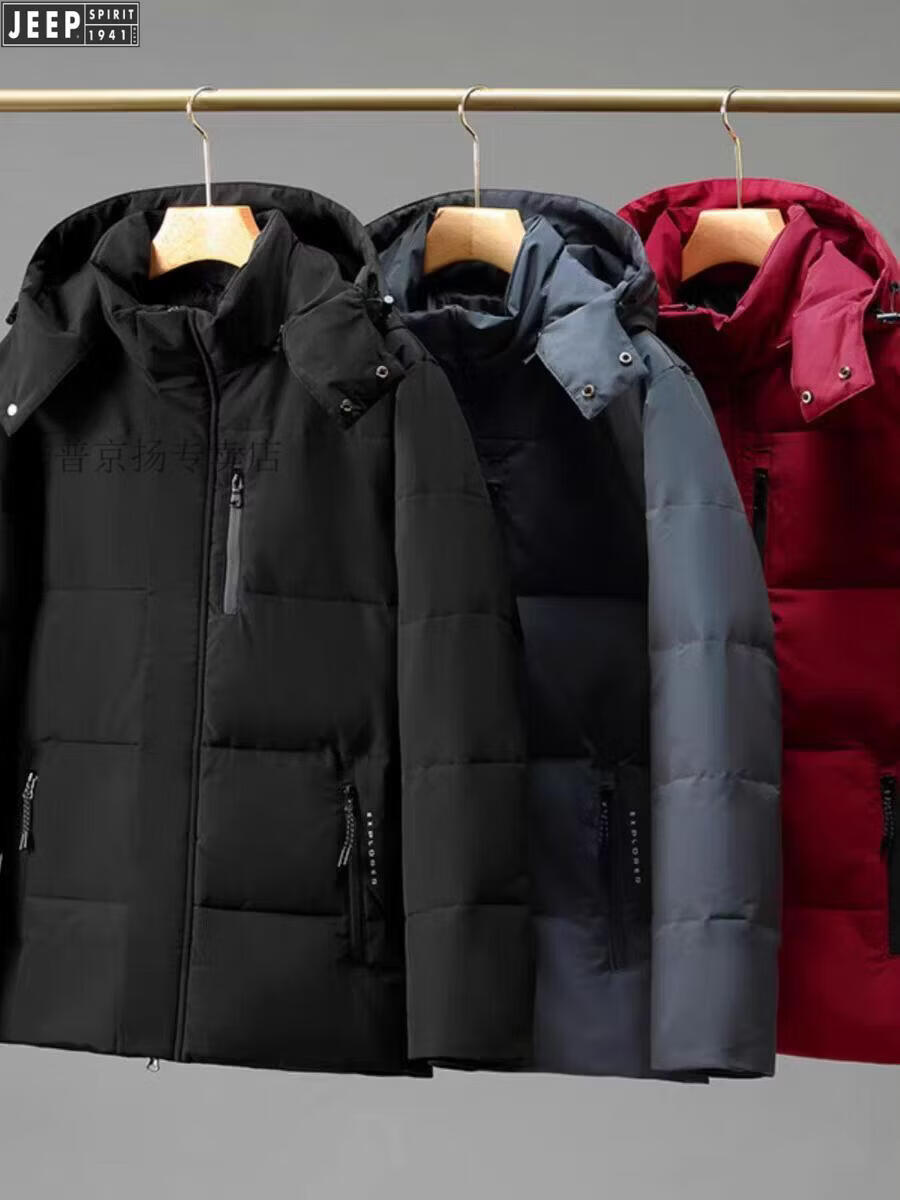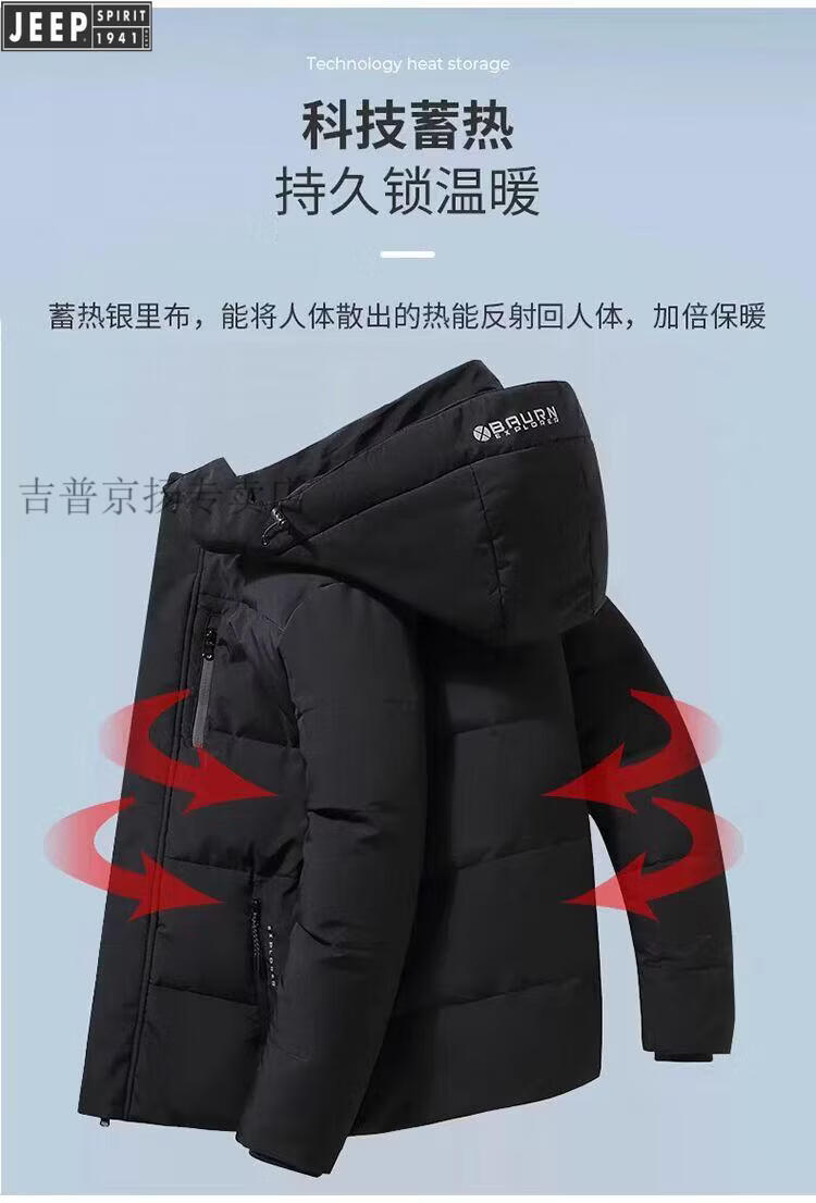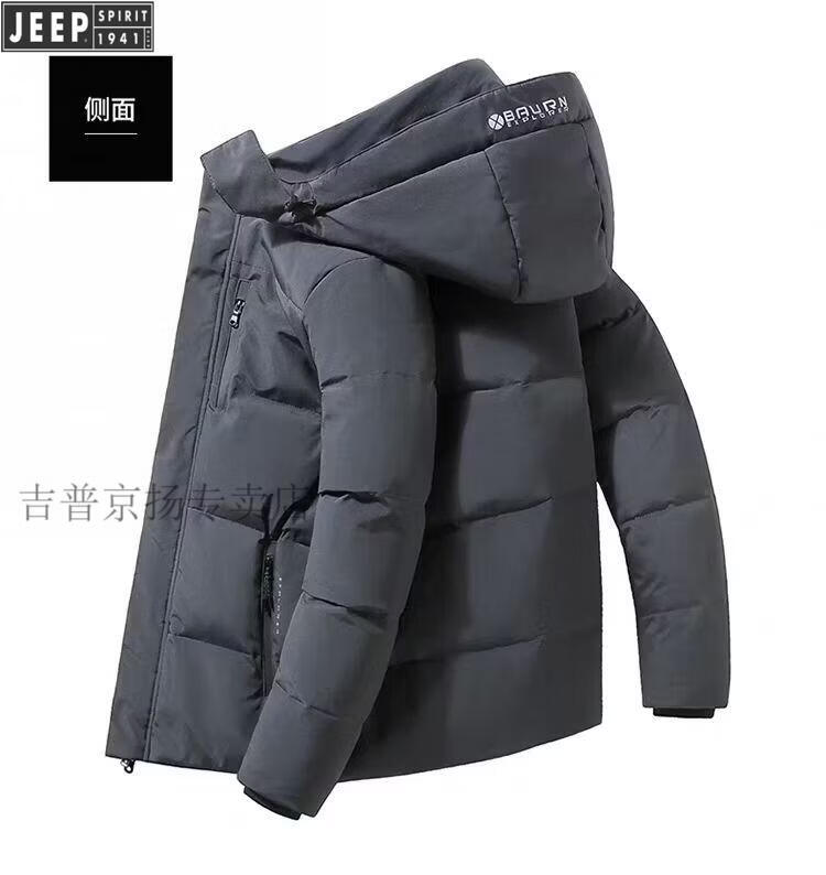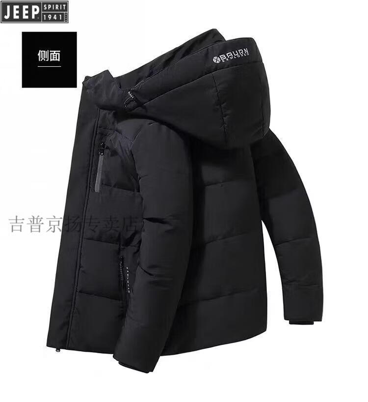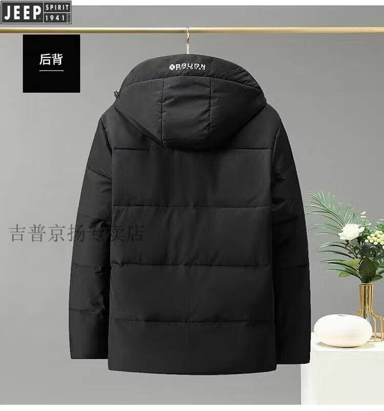 JEEP吉普国际品牌羽绒服男冬季中年加厚保暖休闲防风连帽短款防寒外套 黑色升级款 M