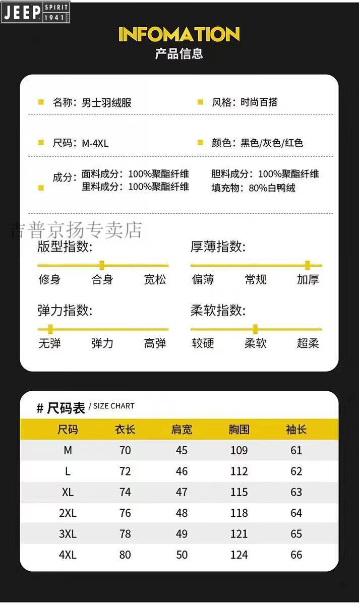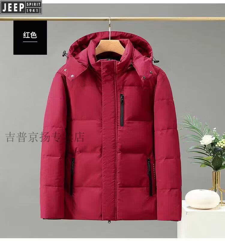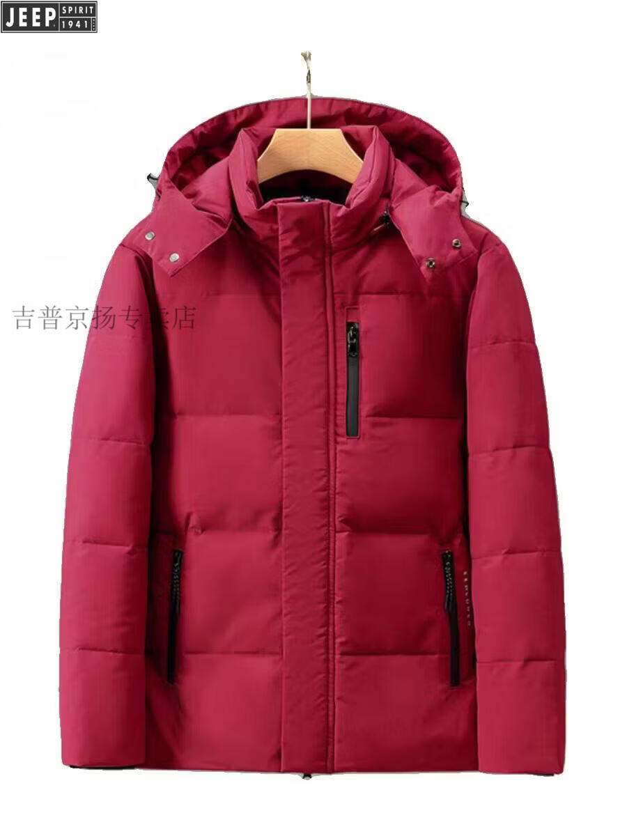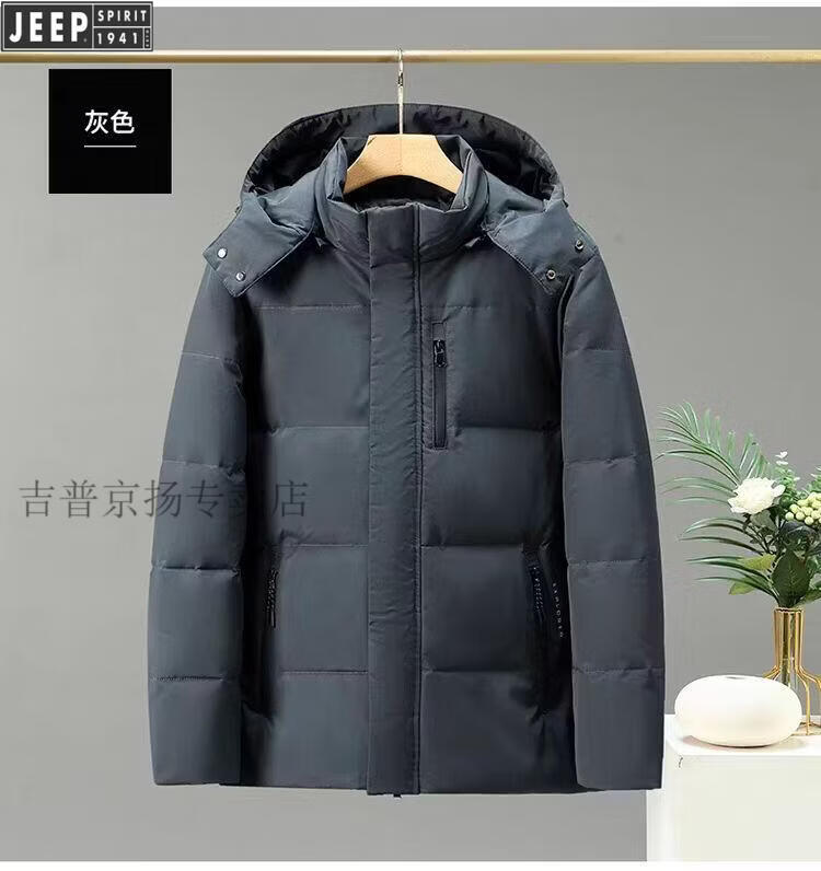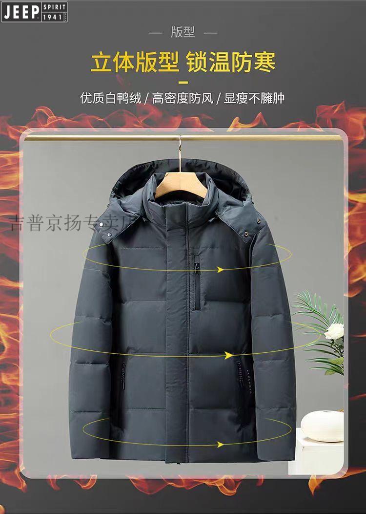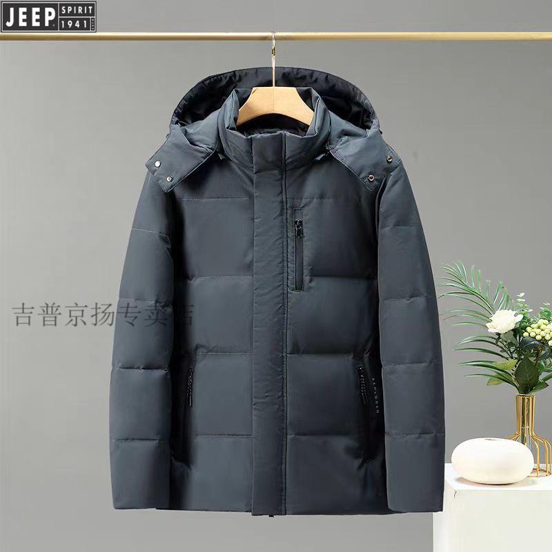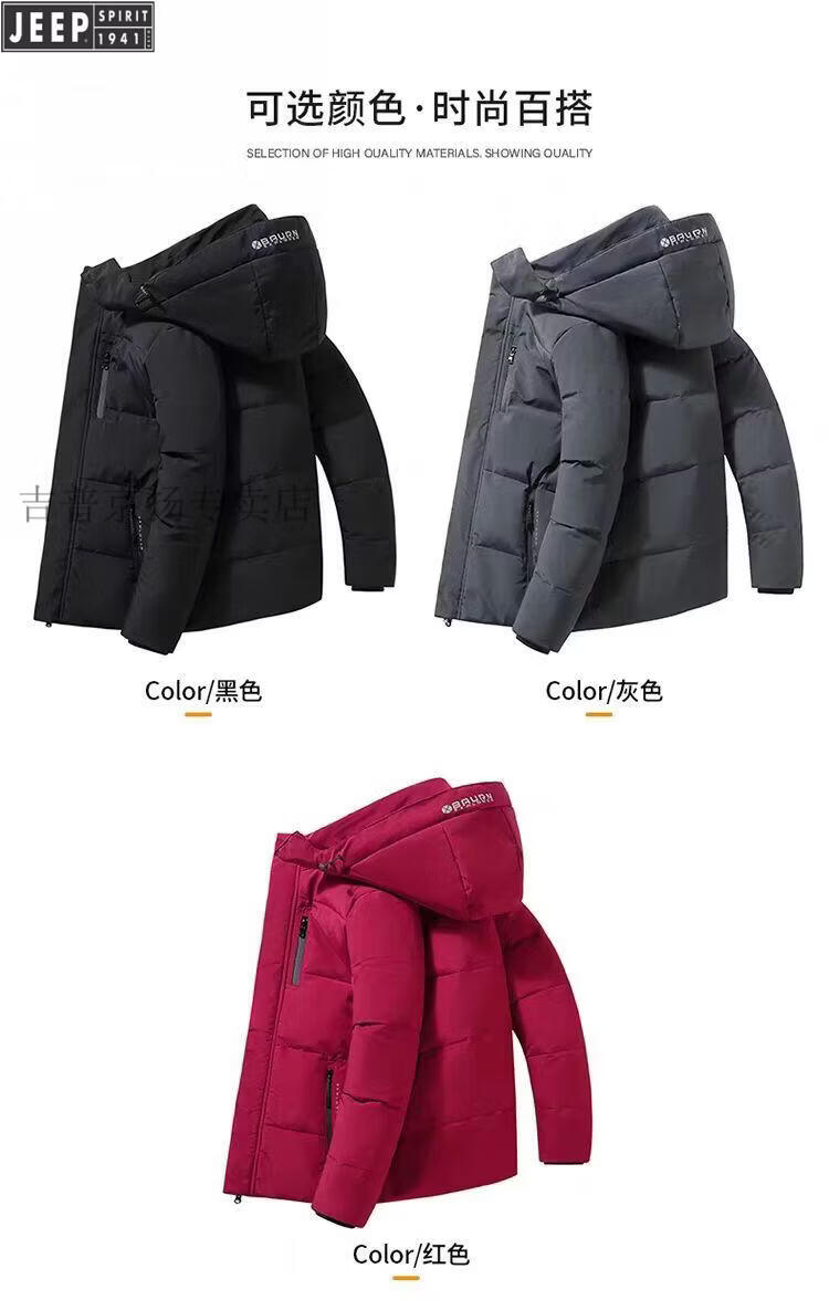 JEEP吉普国际品牌羽绒服男冬季中年加厚保暖休闲防风连帽短款防寒外套 黑色升级款 M