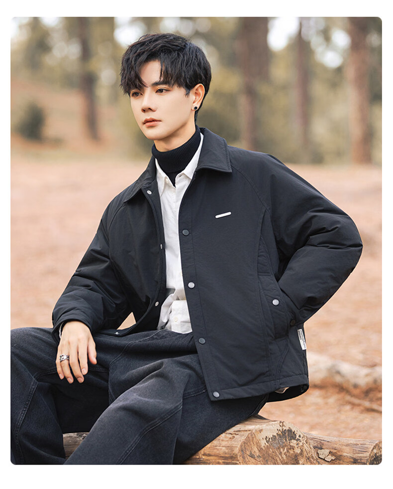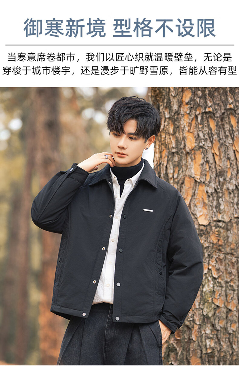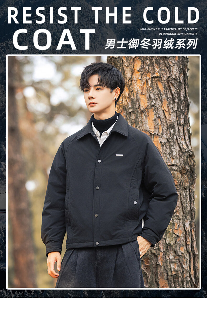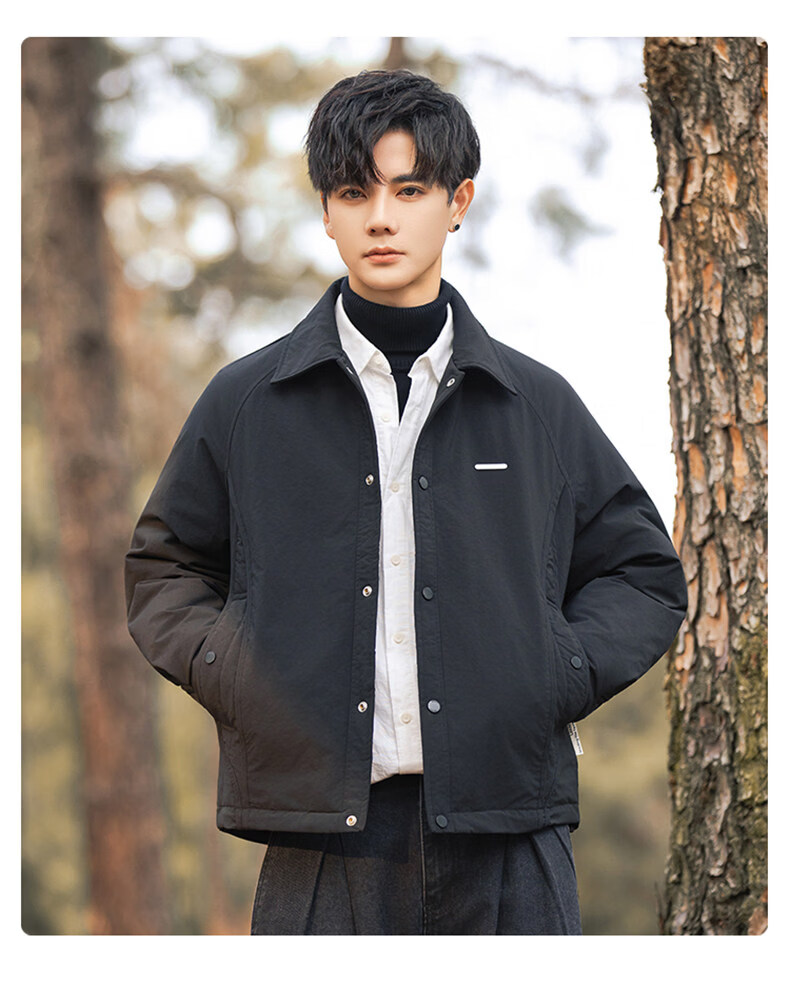 JEEP SPIRIT shirt-style lapel down jacket men's workwear short 2025 winter high-end lightweight youth jacket black (selected 90 white duck down) XL
