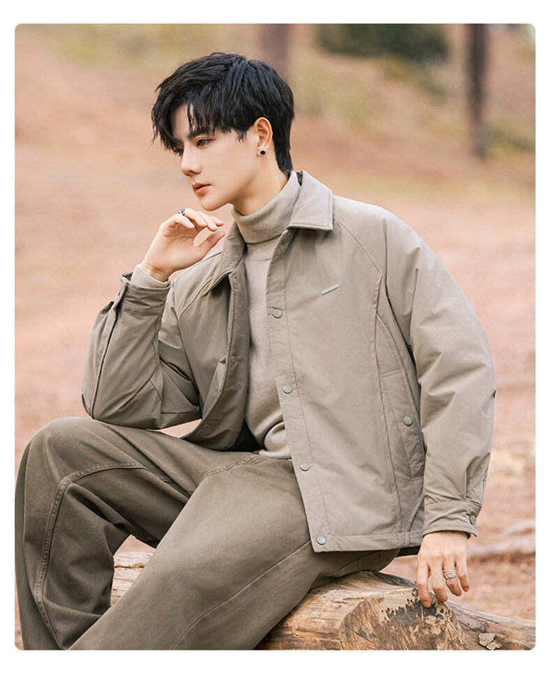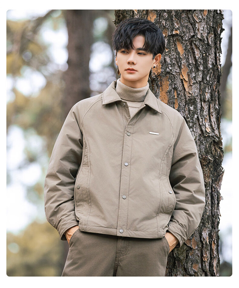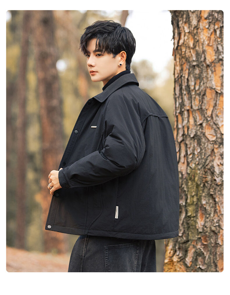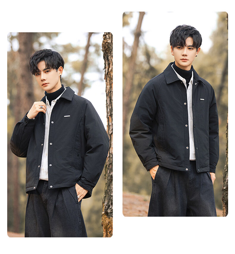 JEEP SPIRIT shirt-style lapel down jacket men's workwear short 2025 winter high-end lightweight youth jacket black (selected 90 white duck down) XL