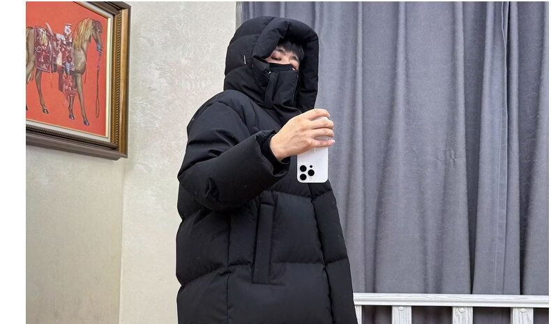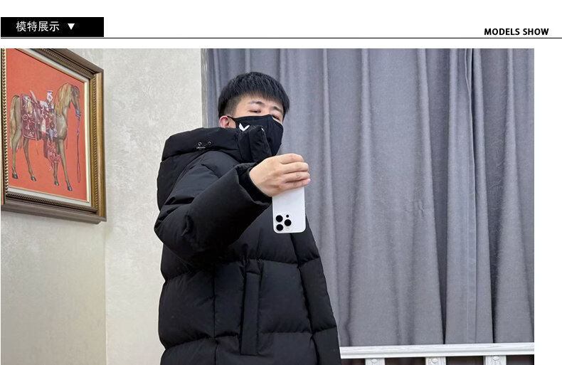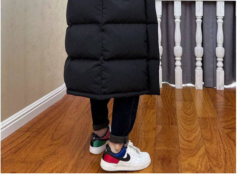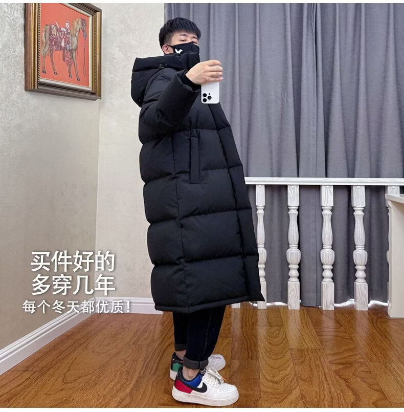 JEEP SPIRIT Jeep's new 95 down down jacket men's extended and thickened knee-length hooded women's winter clothing loose cold-resistant couple outer black XL