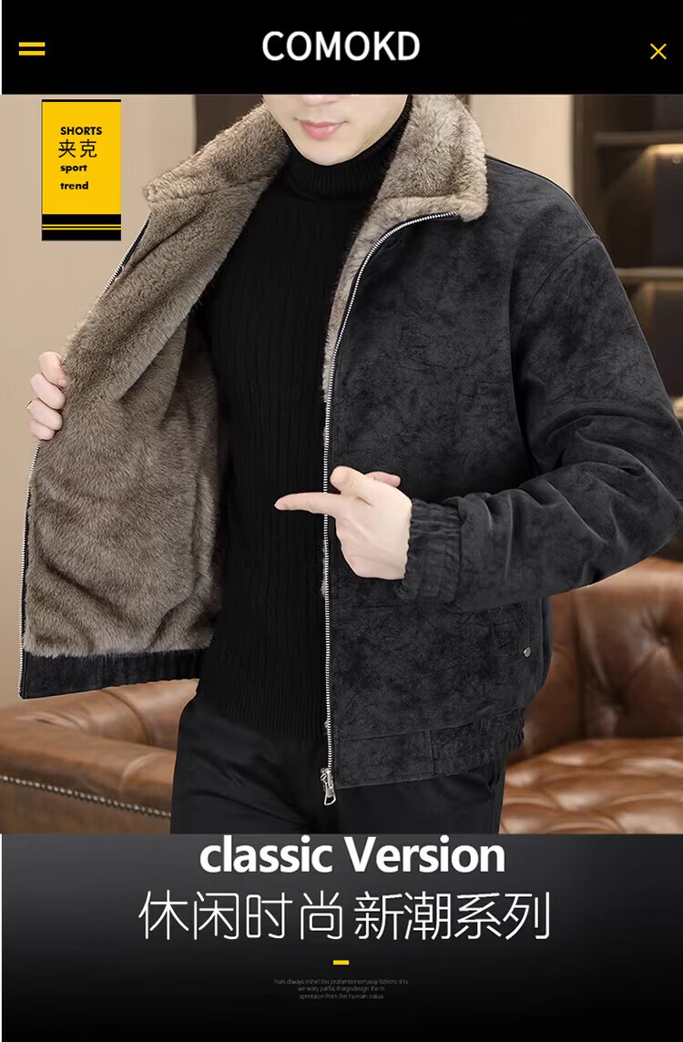 COMOKD 卡莫凯帝高端双面穿座山雕棉衣男士皮毛一体加厚保暖御寒外套高端皮衣棉服 黑色 L 90-115斤