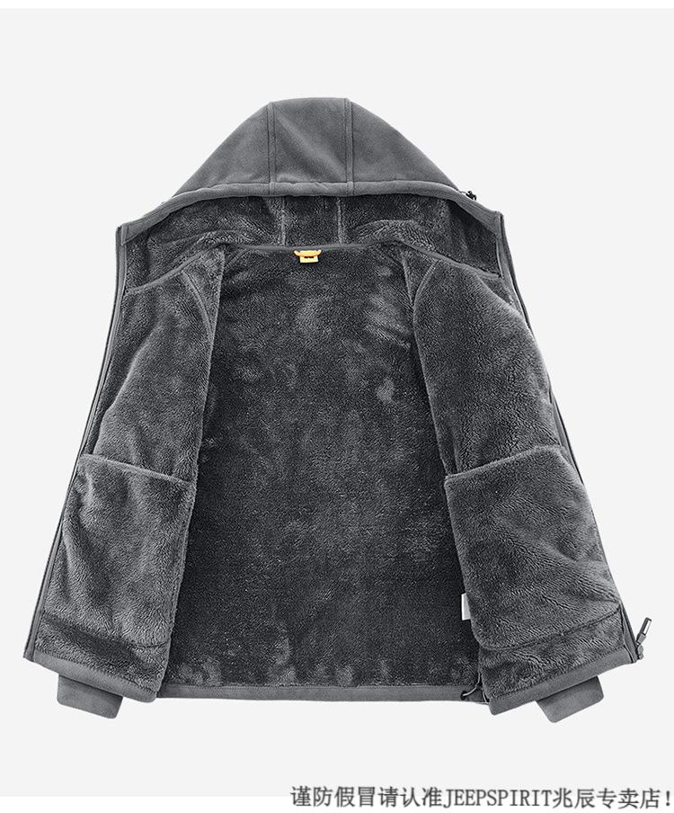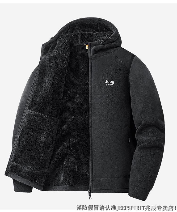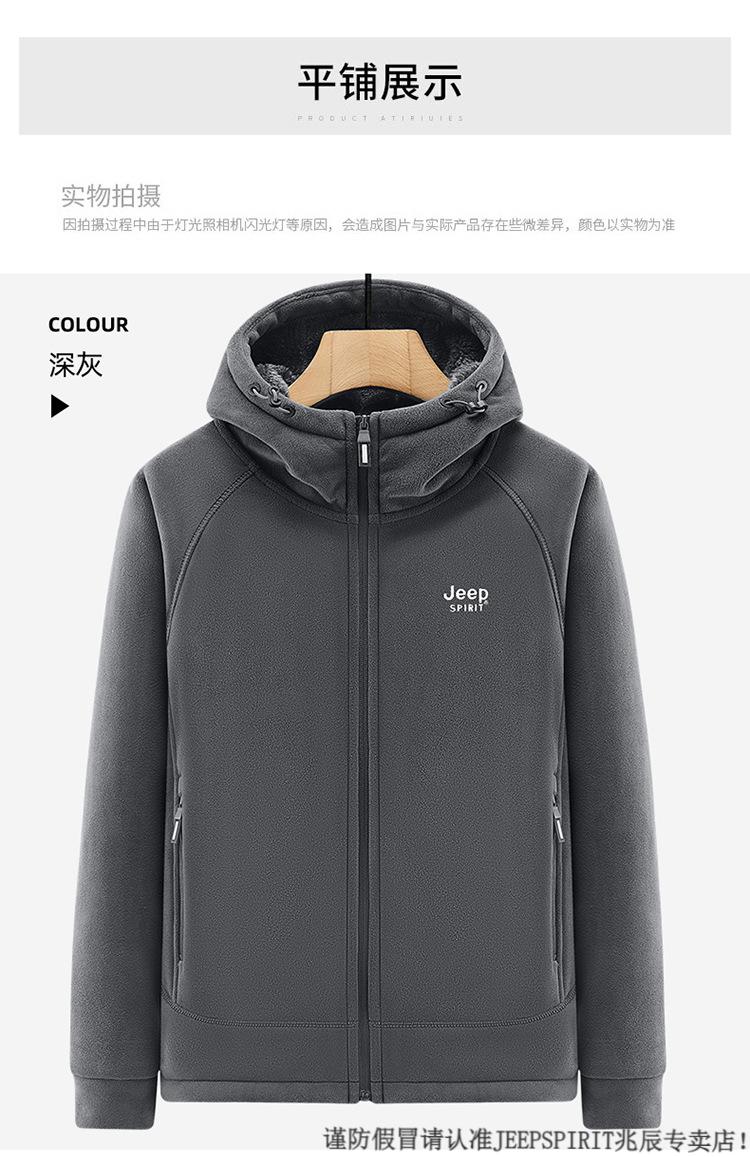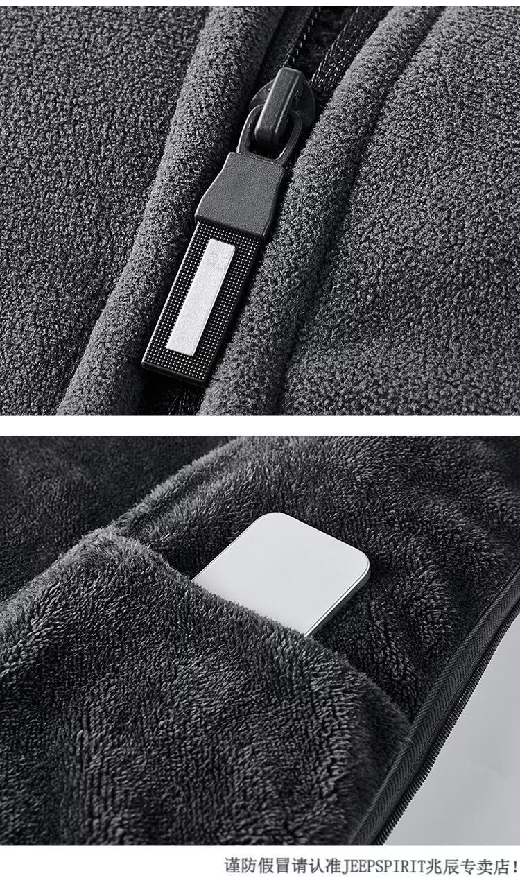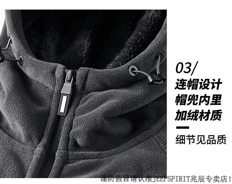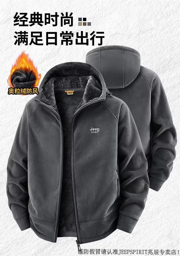 JEEP SPIRIT吉普2025新款秋冬奥利绒男士外套加绒加厚抓绒开衫卫衣中青年户外 深灰色 4XL