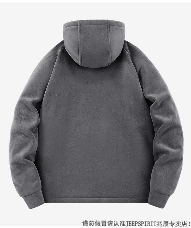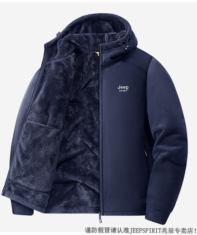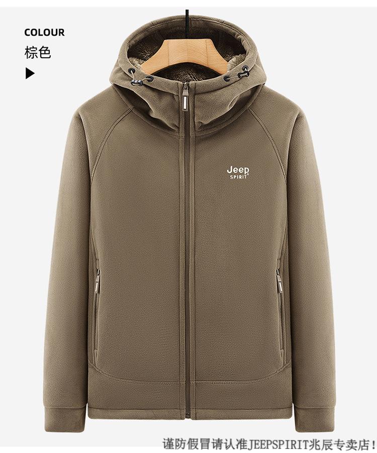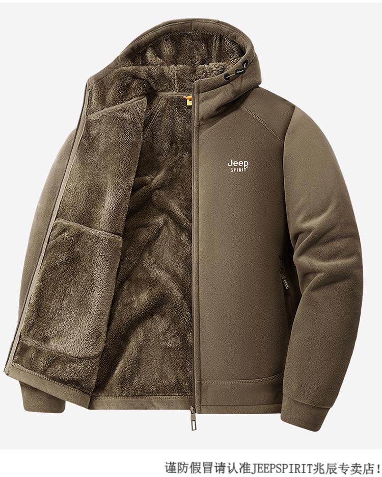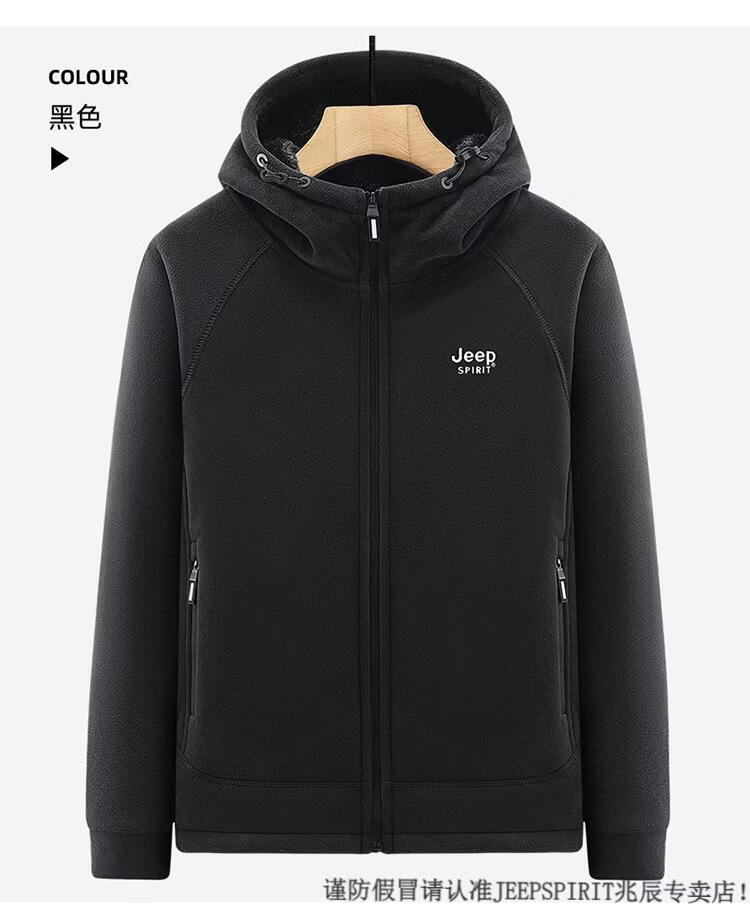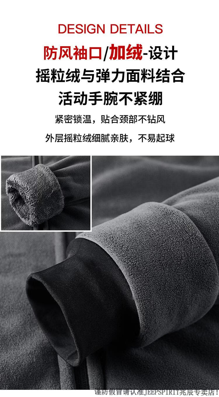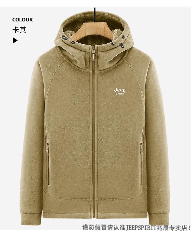 JEEP SPIRIT吉普2025新款秋冬奥利绒男士外套加绒加厚抓绒开衫卫衣中青年户外 深灰色 4XL