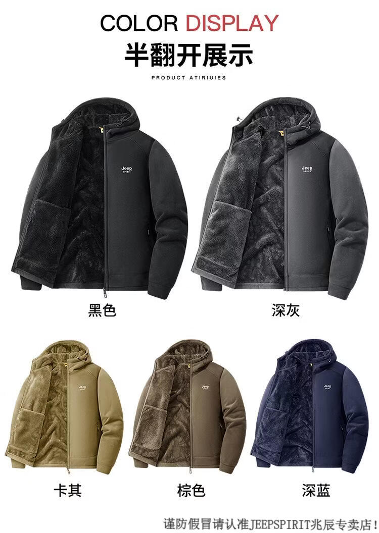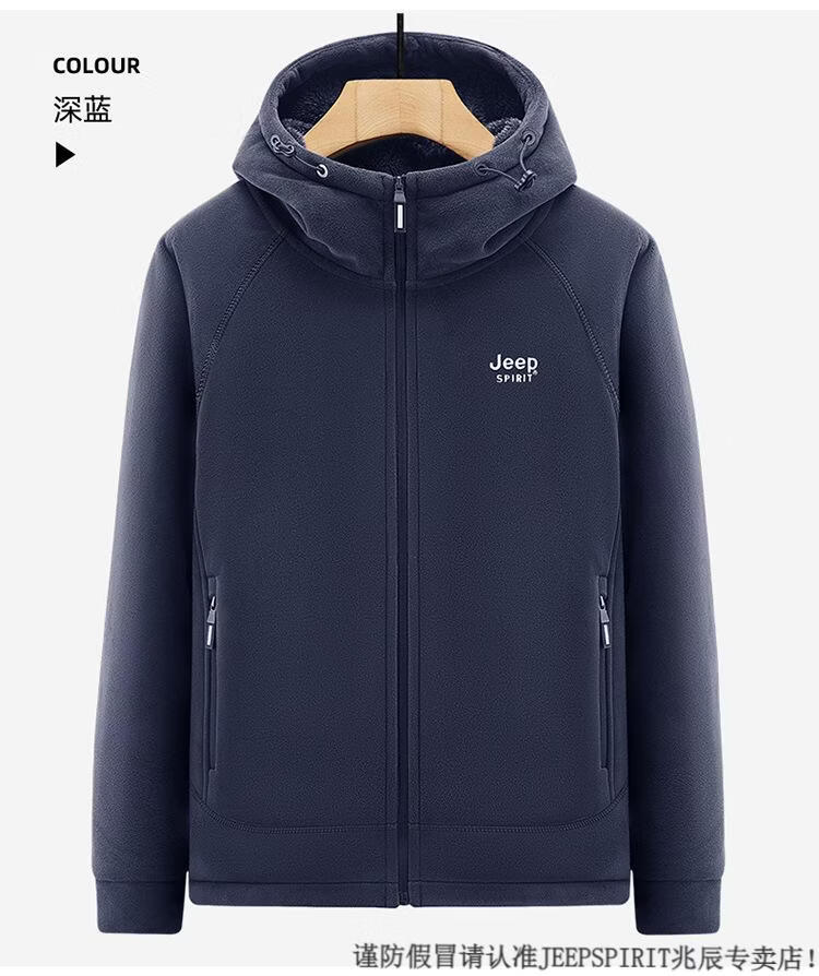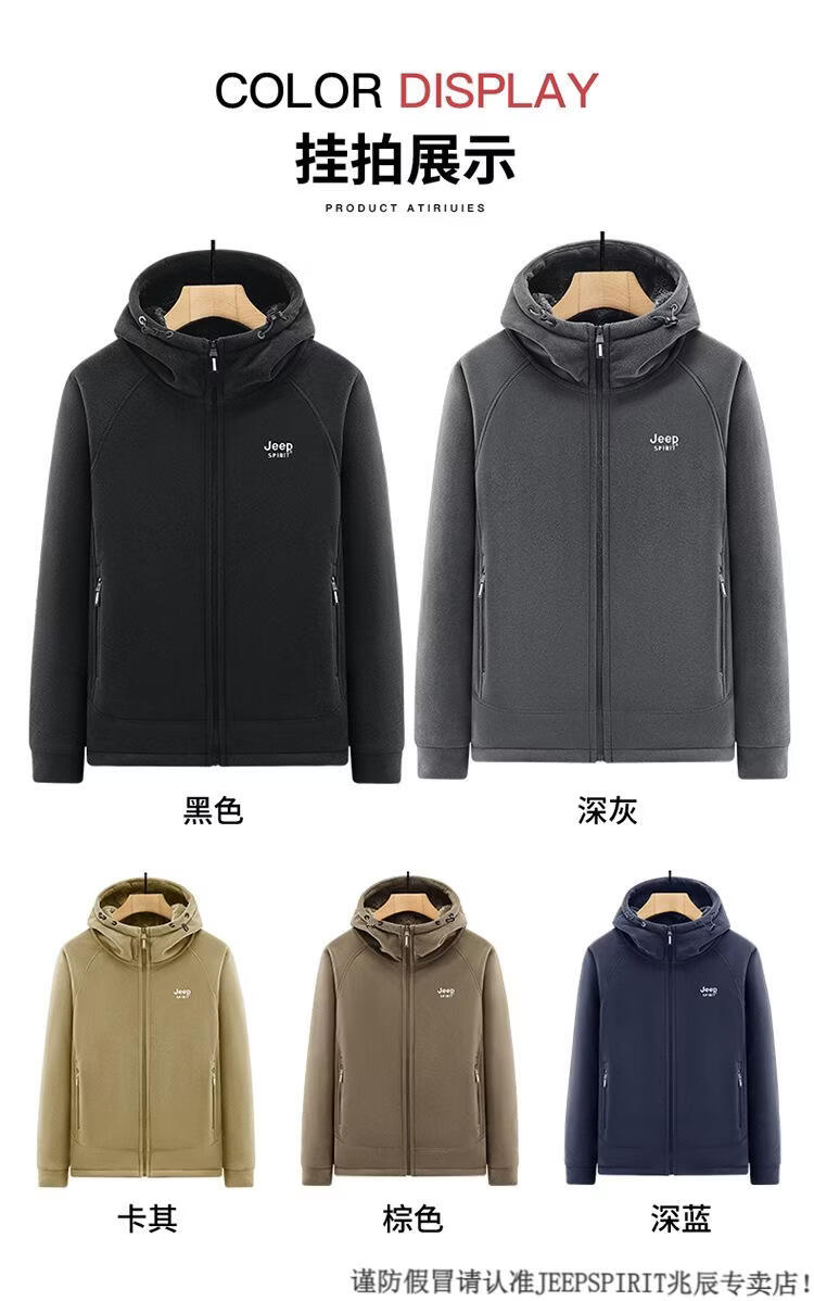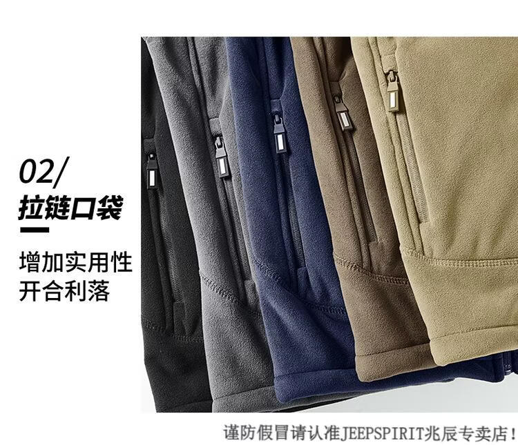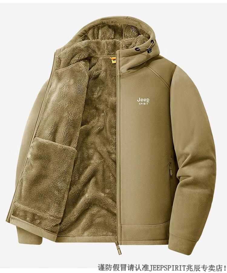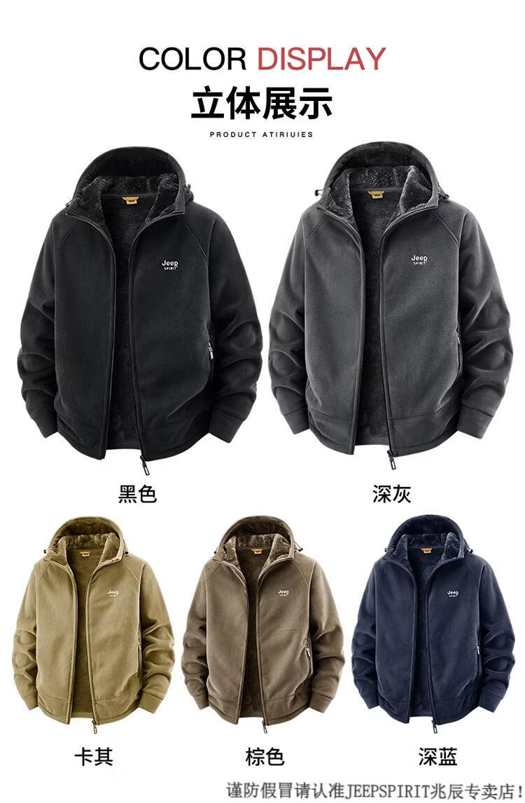 JEEP SPIRIT吉普2025新款秋冬奥利绒男士外套加绒加厚抓绒开衫卫衣中青年户外 深灰色 4XL
