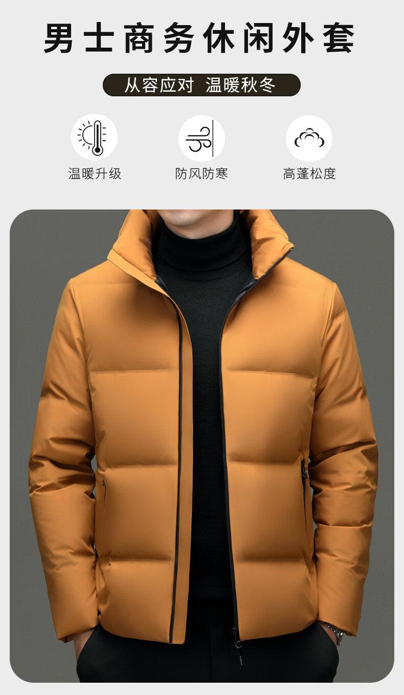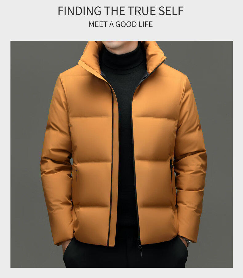 Высококлассный зимний пуховик Woodpecker (TUCANO), новая мужская утолщенная короткая теплая зимняя куртка на утином пуху среднего возраста с воротником-стойкой YR8851 - оранжевый XL 180