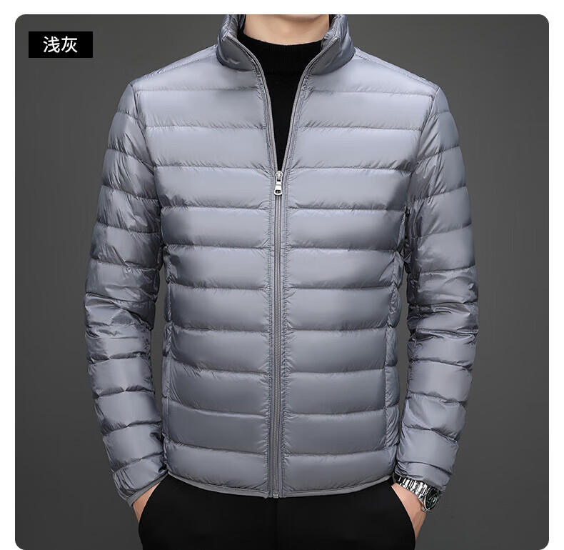 真维斯(Jeanswest)羽绒服男2025春秋新款高端立领商务休闲男士保暖外套上衣 YR911灰色 4XL