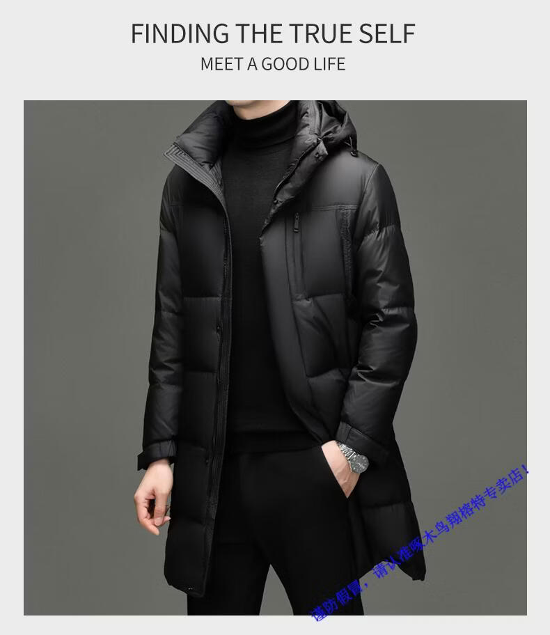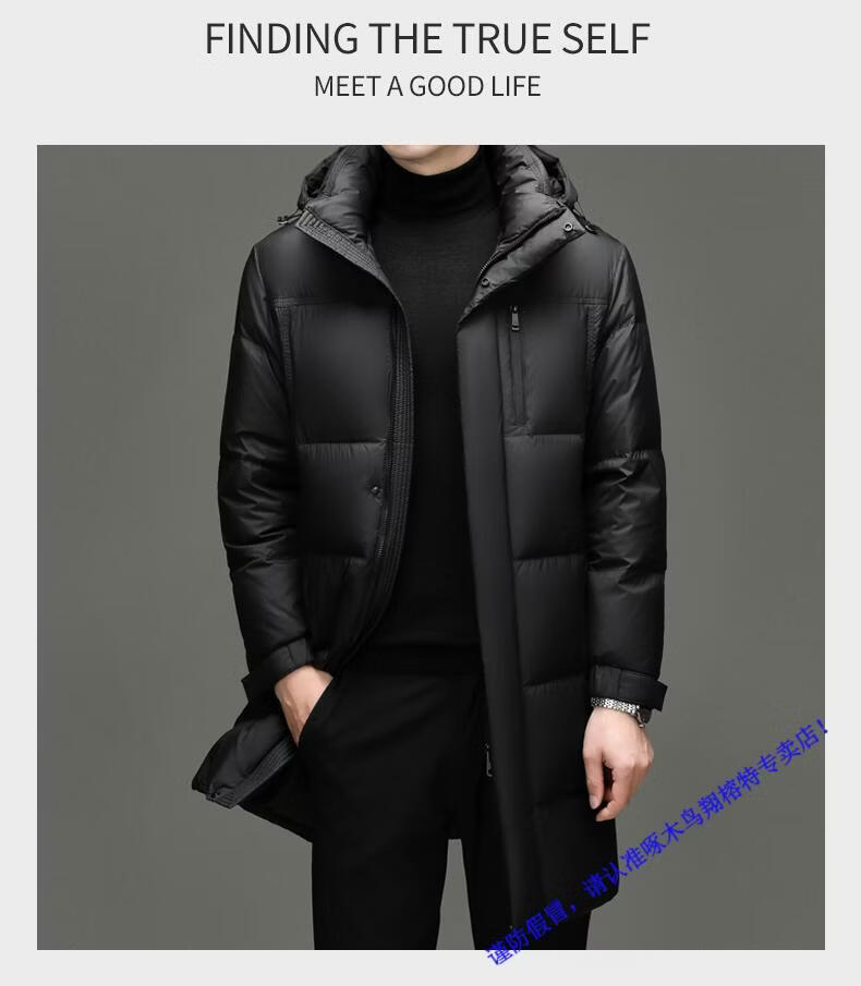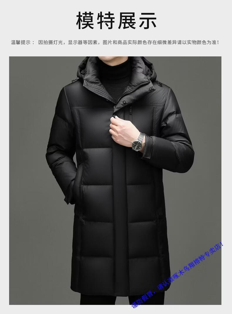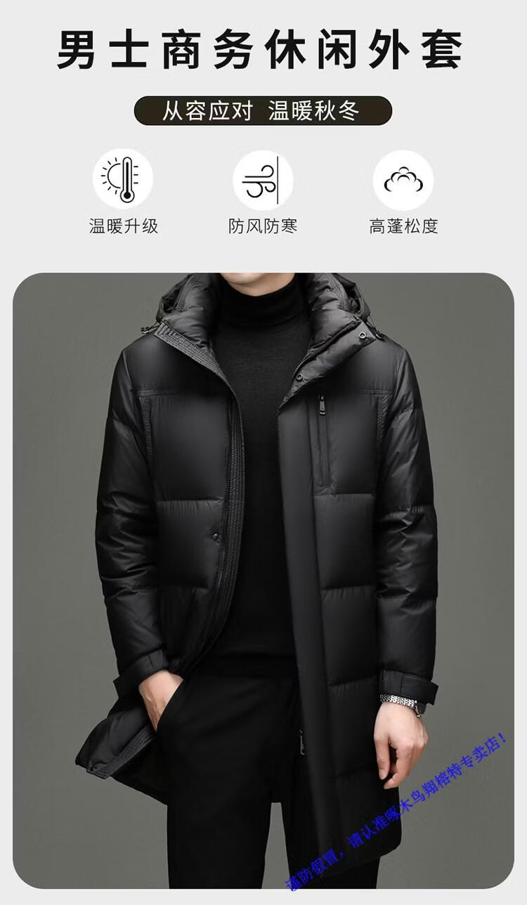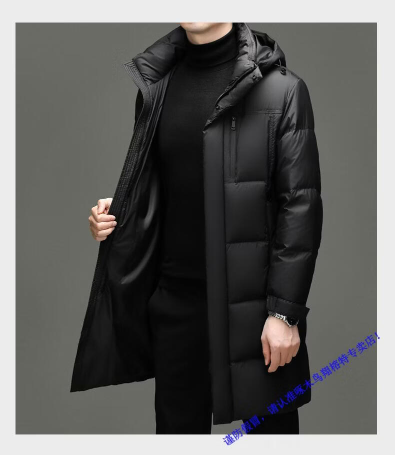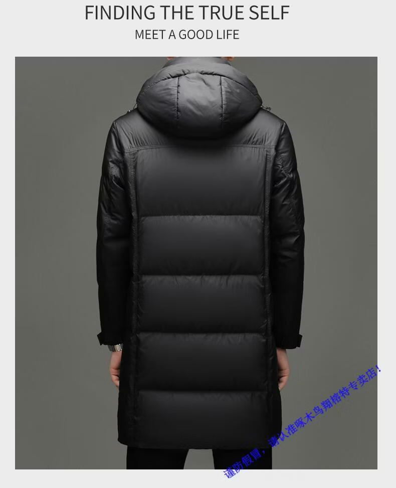 啄木鸟中长款羽绒服男士冬季东北零下40度极寒加厚保暖90白鸭绒外套男 98835黑色 L 175