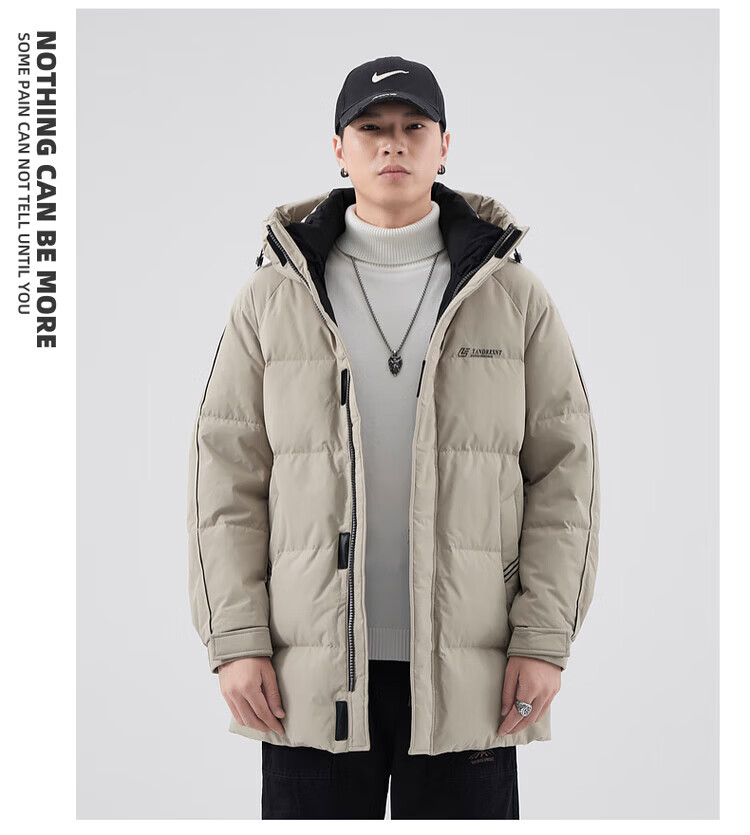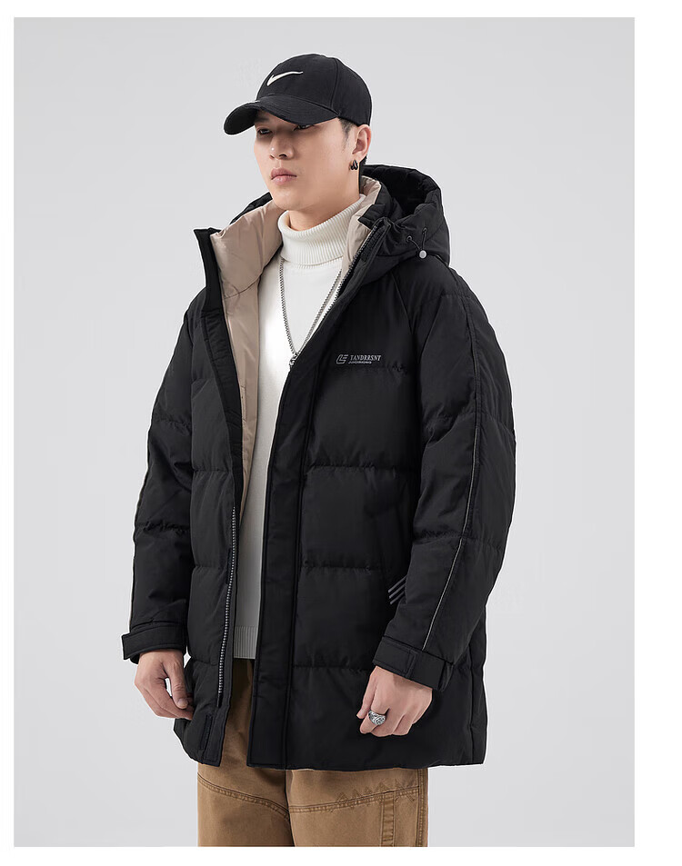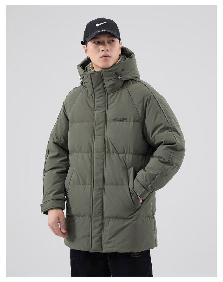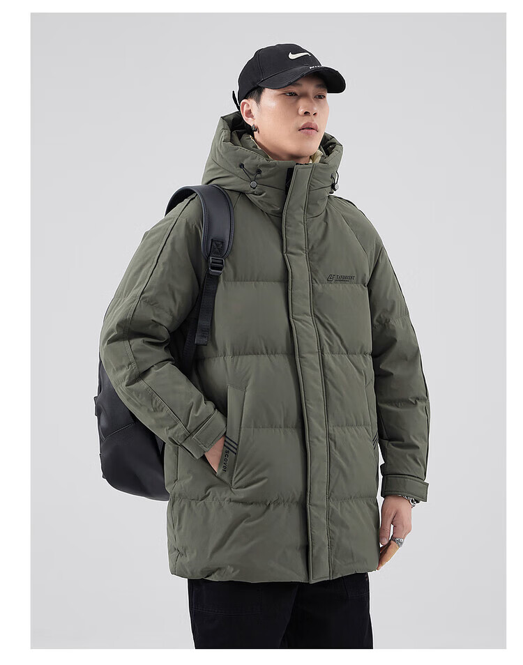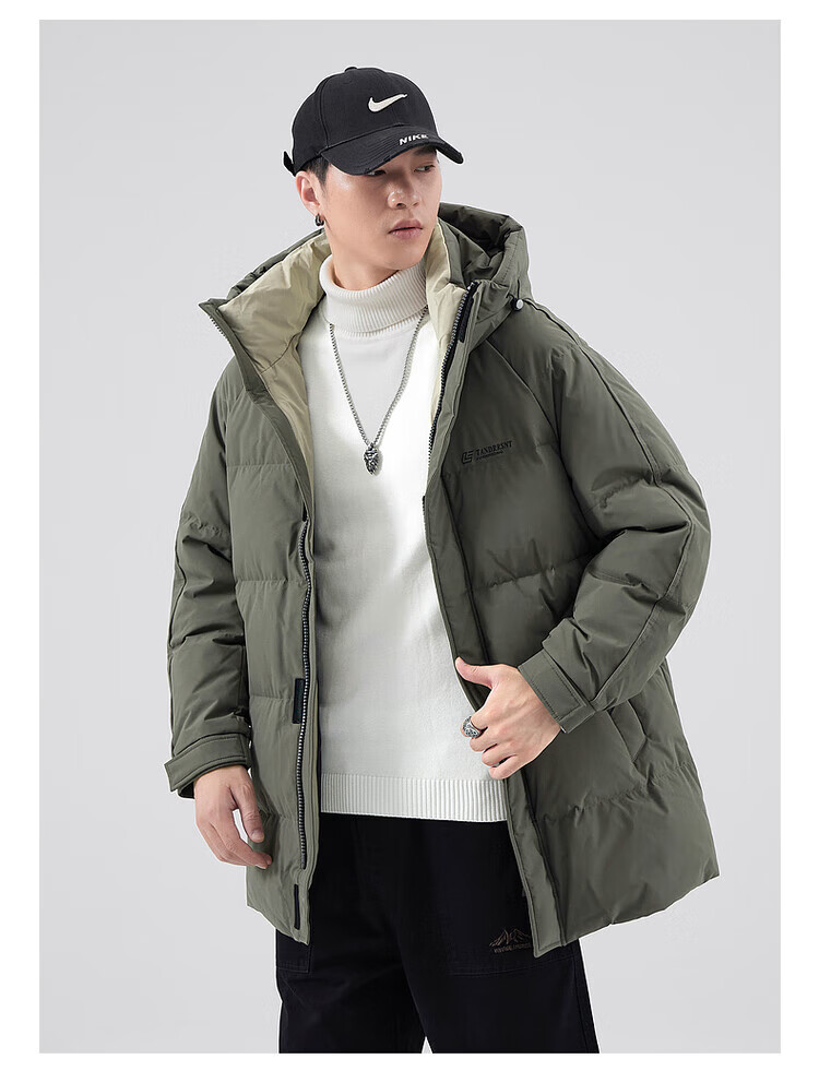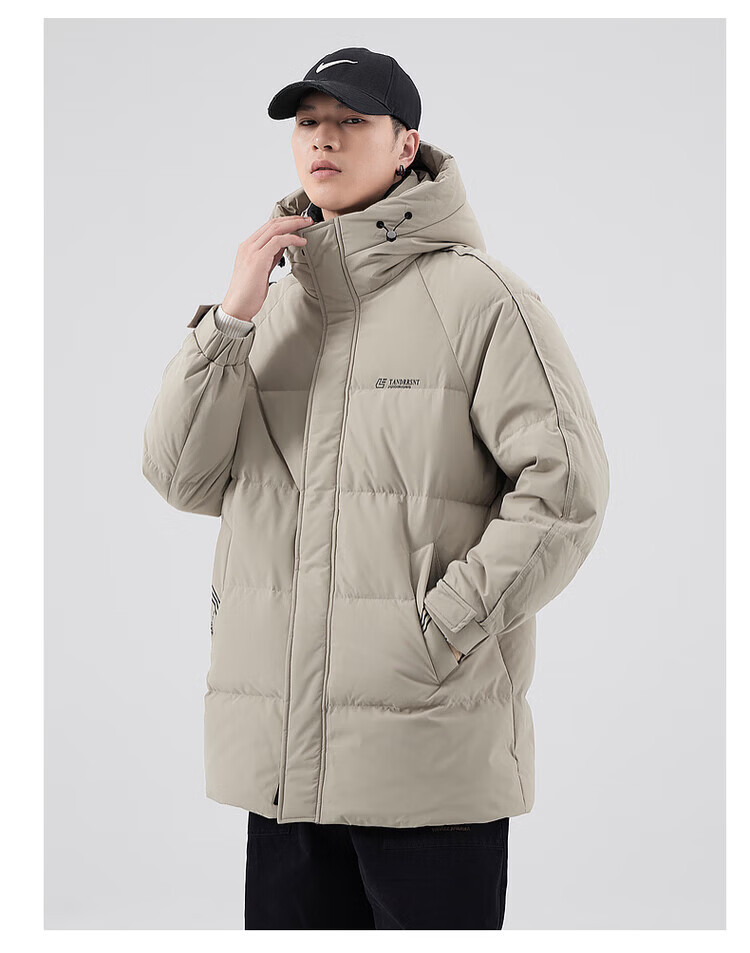 Yalu Мужская пуховая куртка цвета хаки Мужская зимняя утепленная холодостойкая куртка на гусином пуху средней длины Свободная повседневная куртка-пуховик на гусином пуху 95% Мужской белый гусиный пух - Черный M