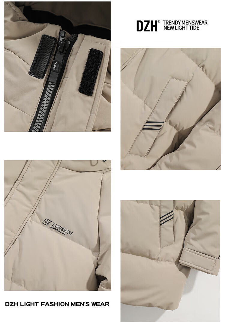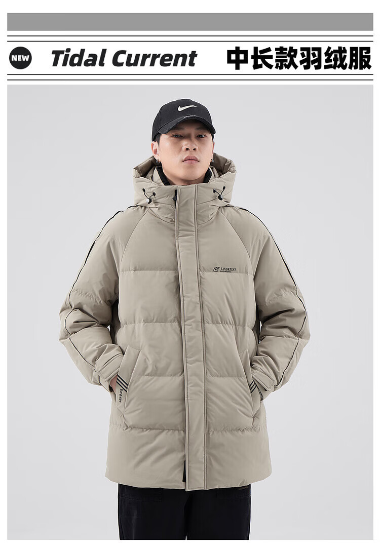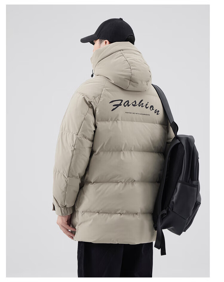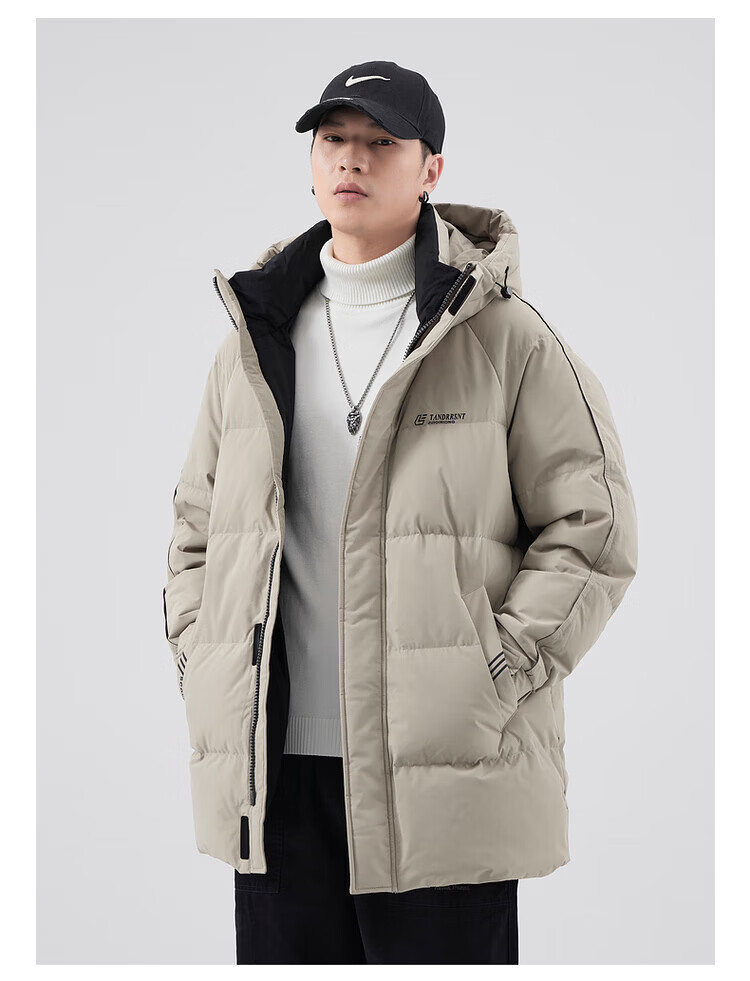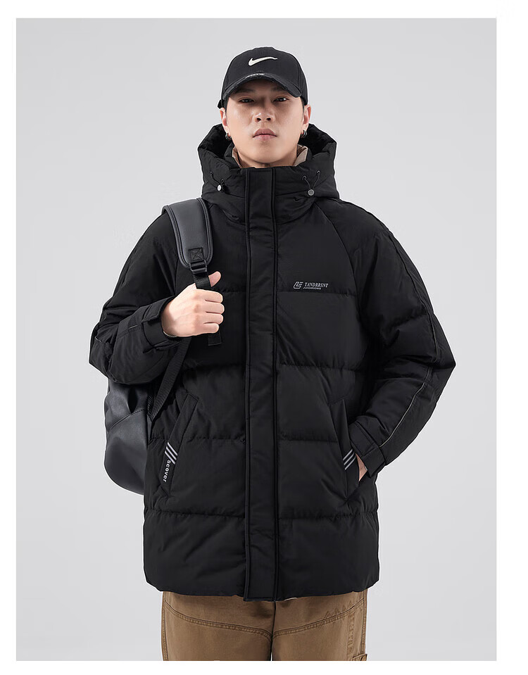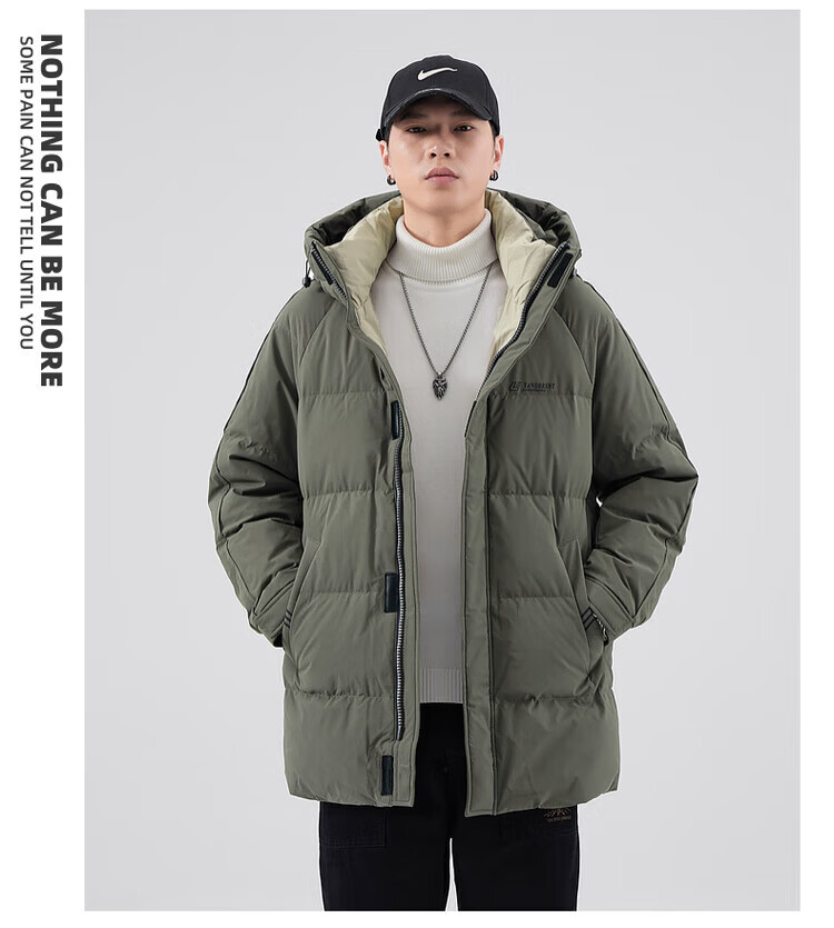 Yalu Мужская пуховая куртка цвета хаки Мужская зимняя утепленная холодостойкая куртка на гусином пуху средней длины Свободная повседневная куртка-пуховик на гусином пуху 95% Мужской белый гусиный пух - Черный M