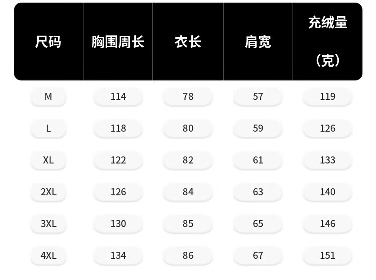 China (cm) 165 / 88-90 170 / 96-98 175 / 108-110 180 / 118-122 185 / 126-130