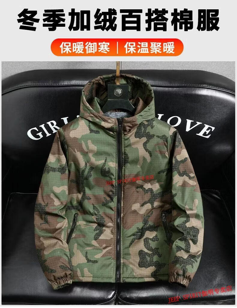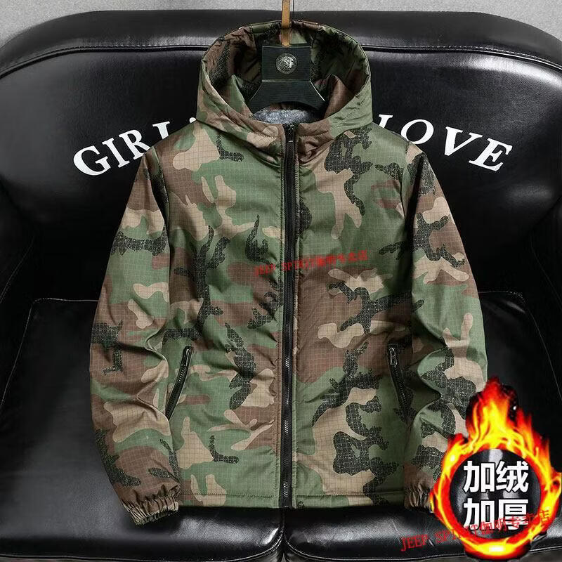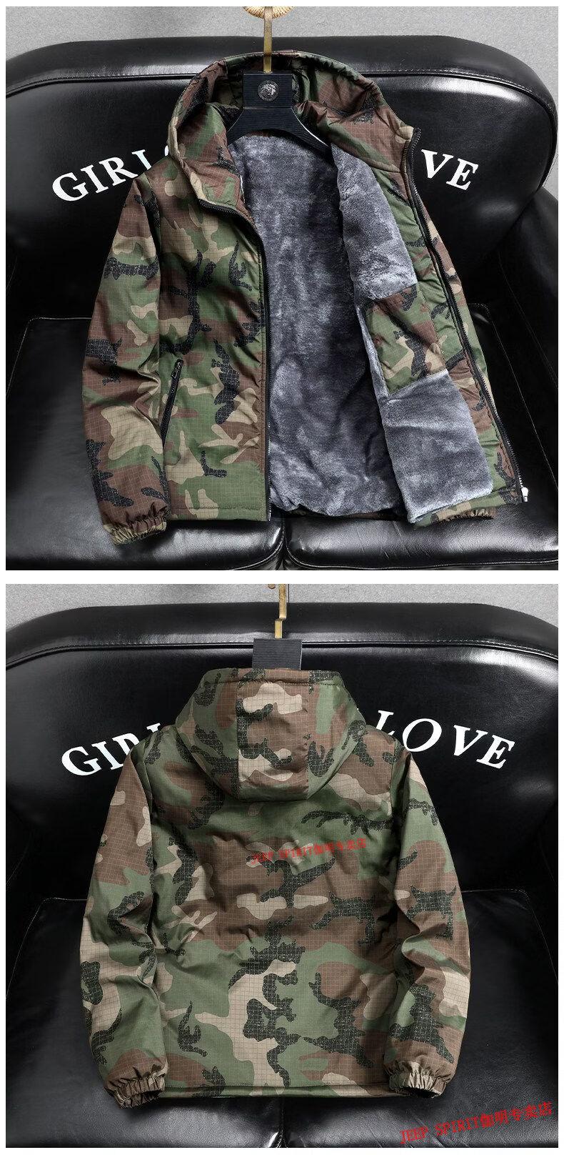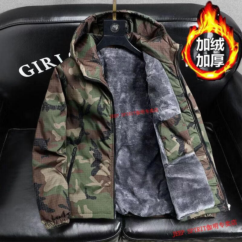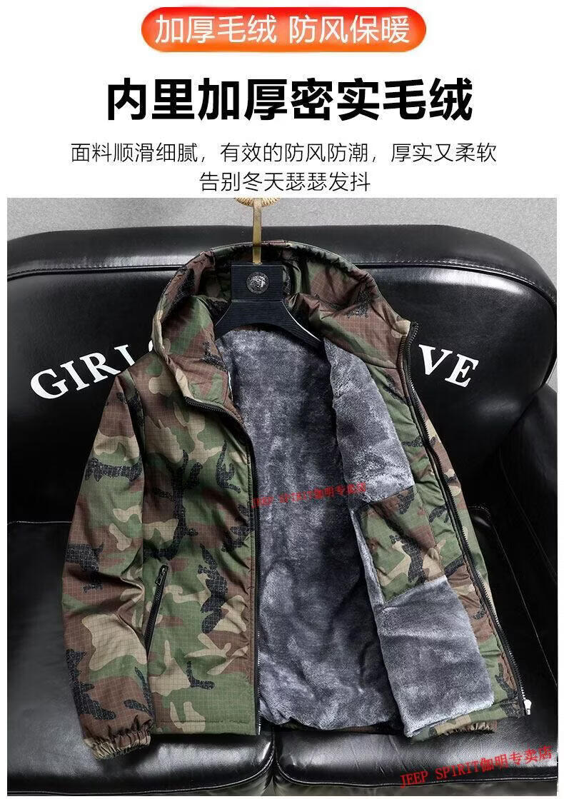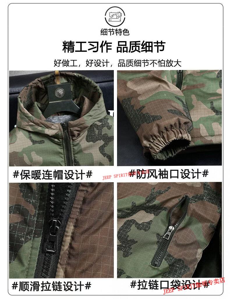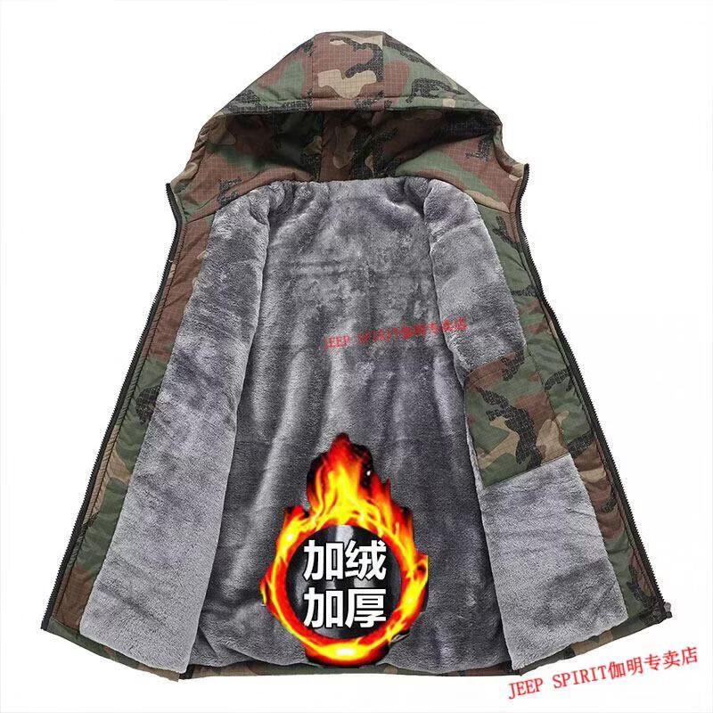 JEEP SPIRIT Jeep chaquetas gruesas de terciopelo de primavera, otoño e invierno para hombres y mujeres, ropa de trabajo de camuflaje, chaquetas de algodón modernas resistentes a las manchas, abrigos de algodón, protección contra el frío, verde militar, terciopelo, engrosado S 60-75 Jin Jin equivale a 0,5 kg