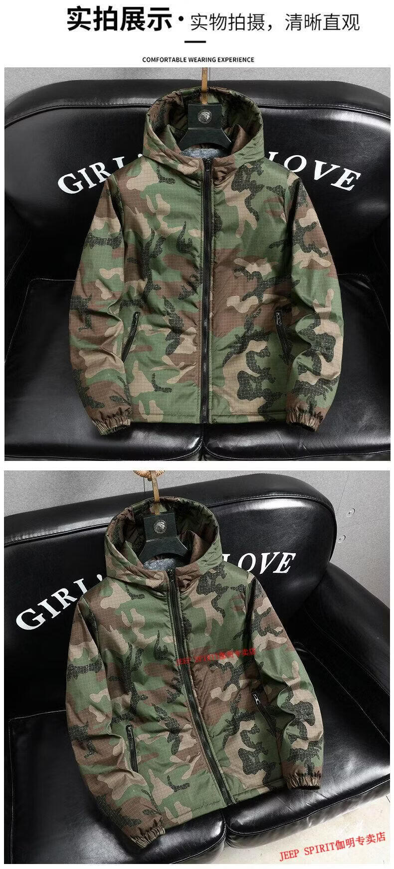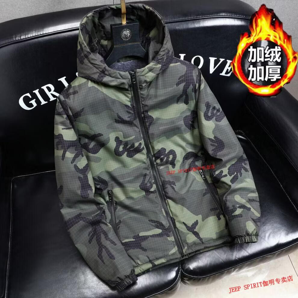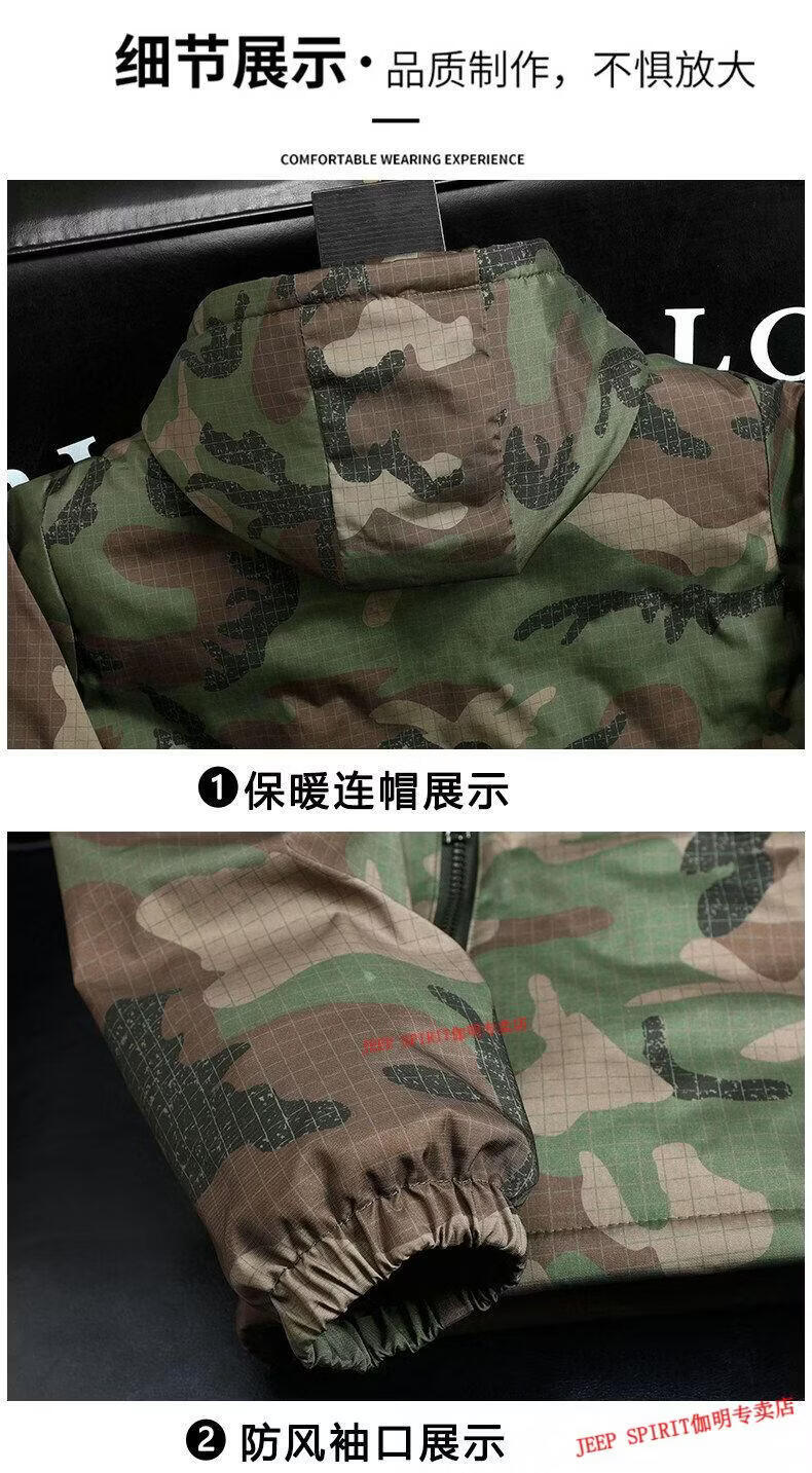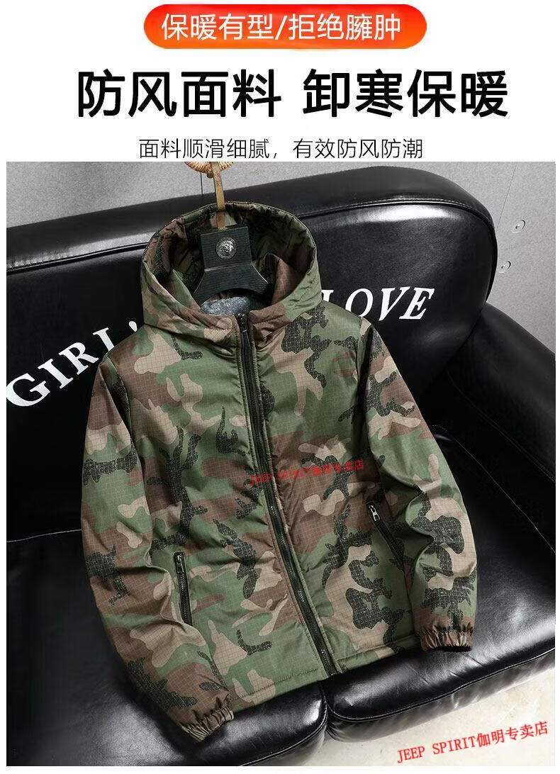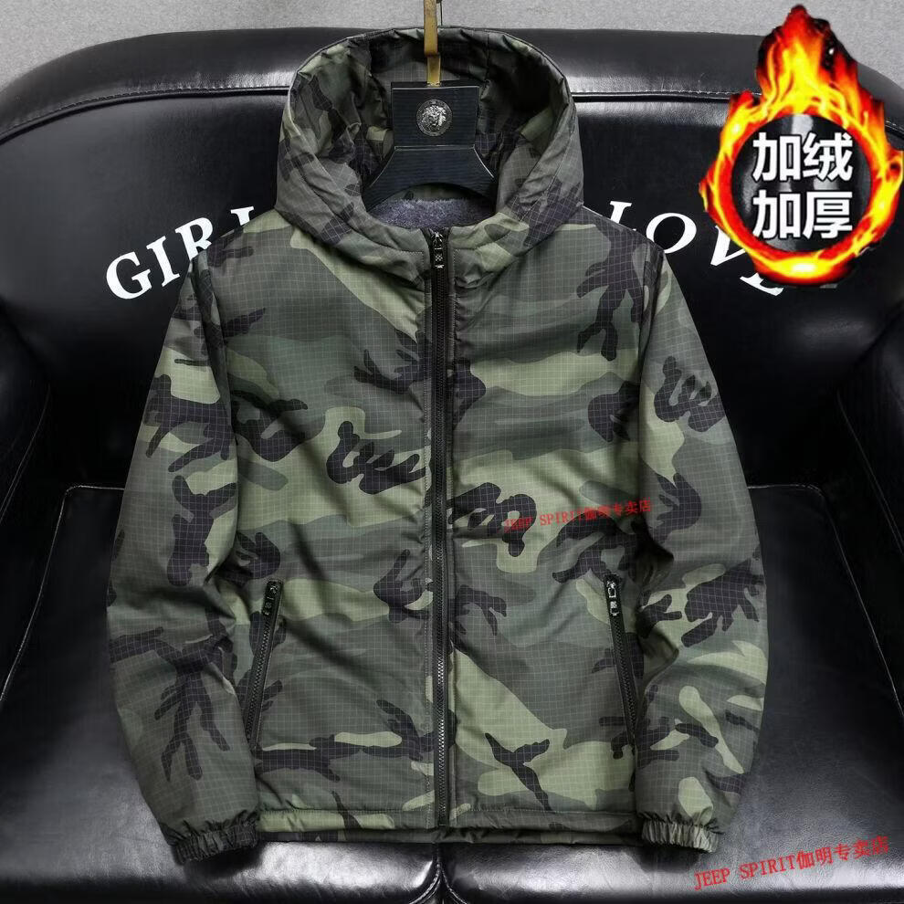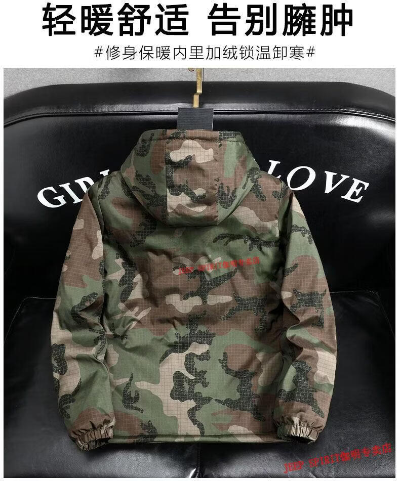 JEEP SPIRIT Jeep chaquetas gruesas de terciopelo de primavera, otoño e invierno para hombres y mujeres, ropa de trabajo de camuflaje, chaquetas de algodón modernas resistentes a las manchas, abrigos de algodón, protección contra el frío, verde militar, terciopelo, engrosado S 60-75 Jin Jin equivale a 0,5 kg