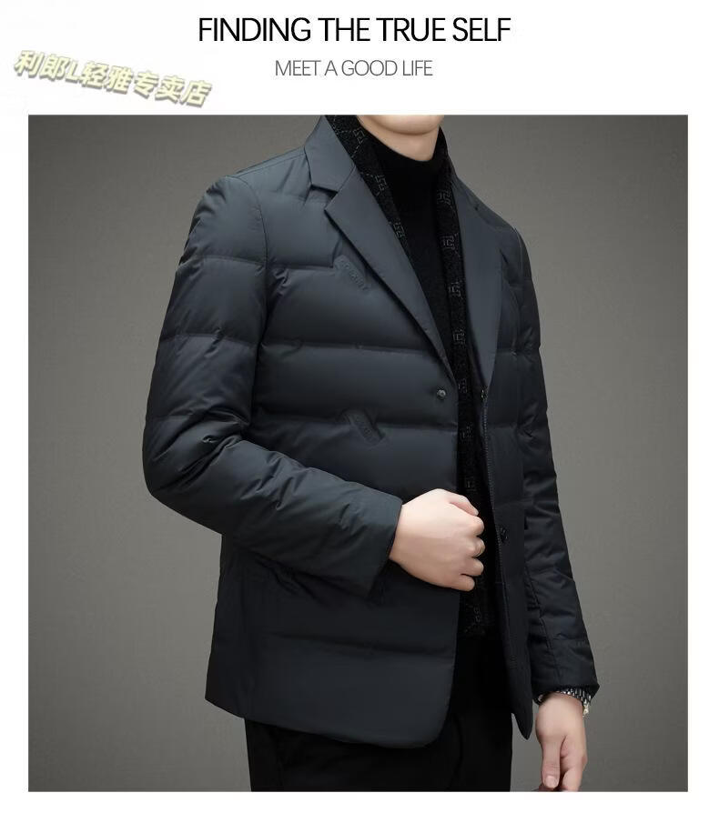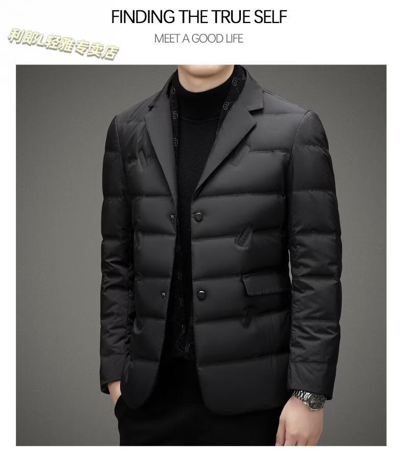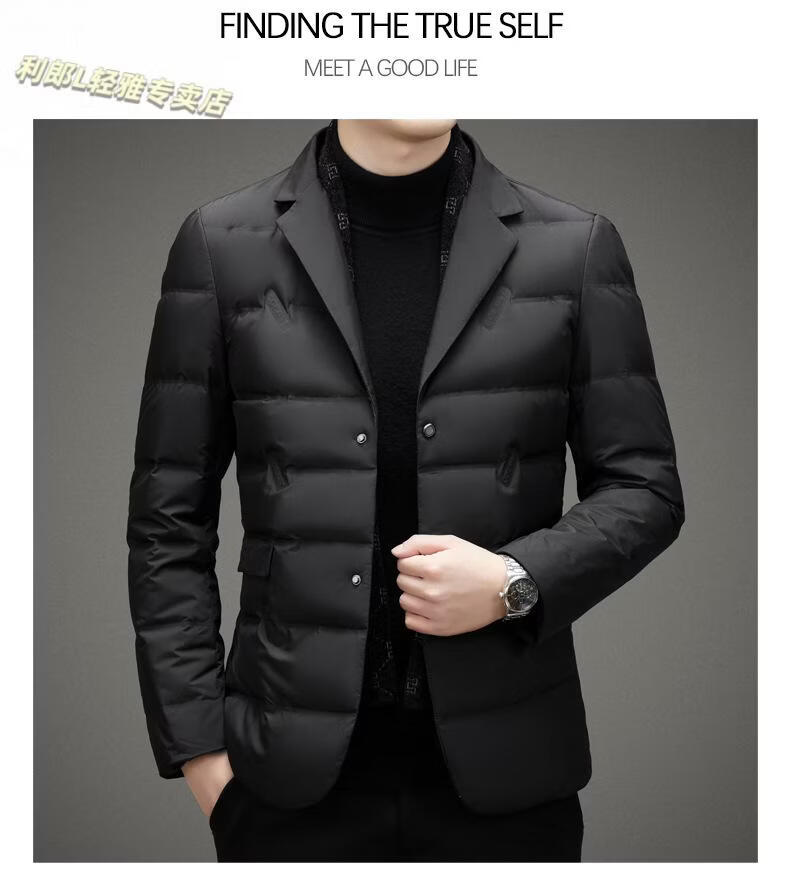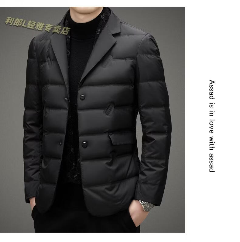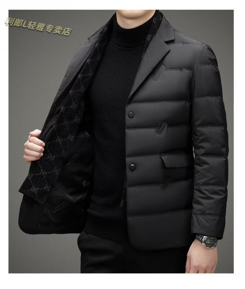 利郎(LILANZ)2026冬季男士西服羽绒服外套商务中年围巾领防寒羽绒服西装外套男 黑色 L 175