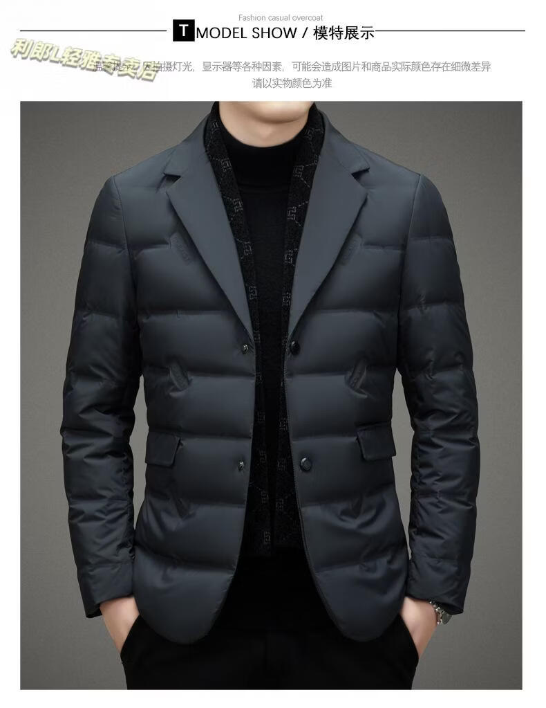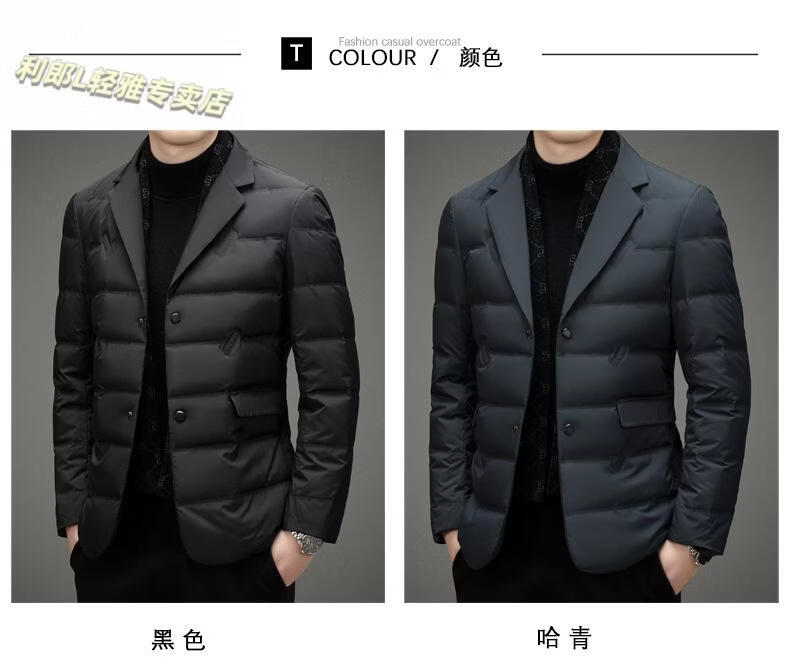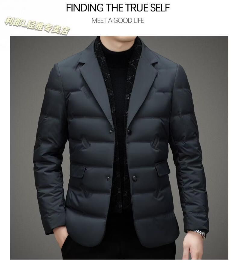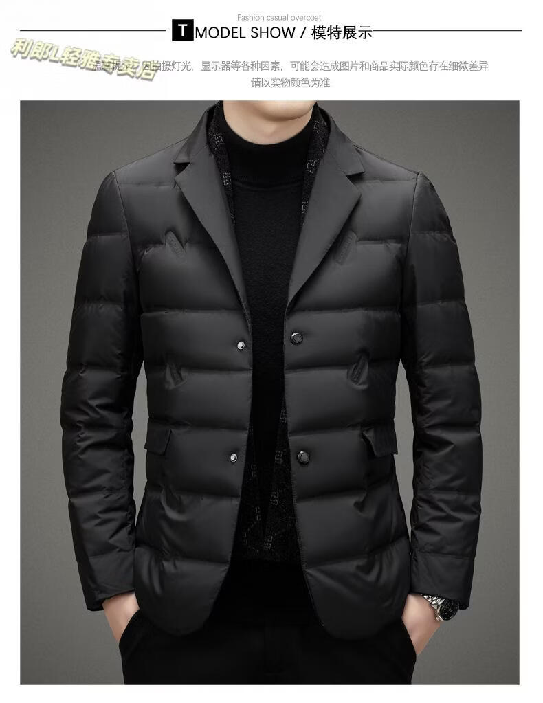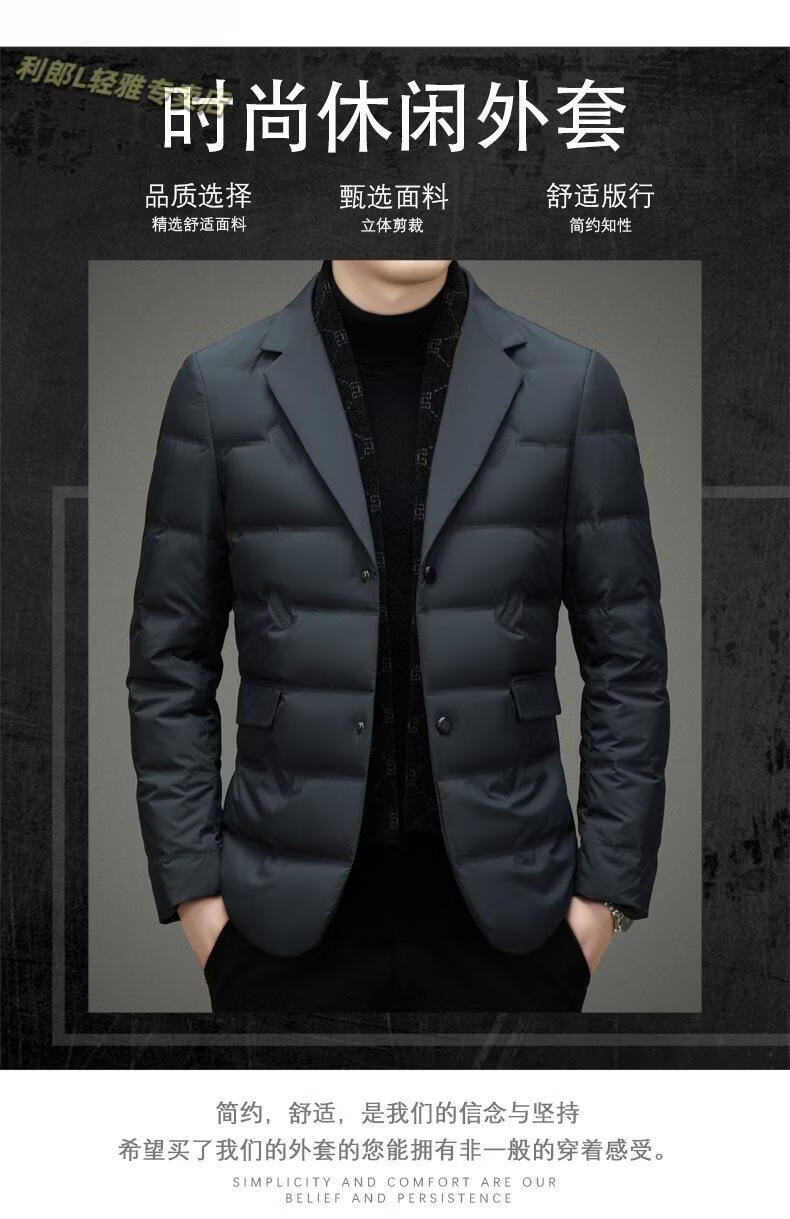利郎(LILANZ)2026冬季男士西服羽绒服外套商务中年围巾领防寒羽绒服西装外套男 黑色 L 175