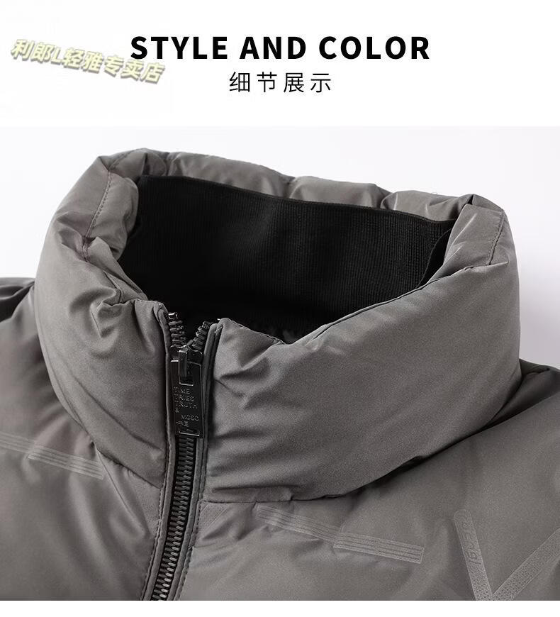 利郎(LILANZ)2026冬季新款男士中青年立领拉链白鸭绒时尚潮流保暖潮羽绒服外套 灰色 L