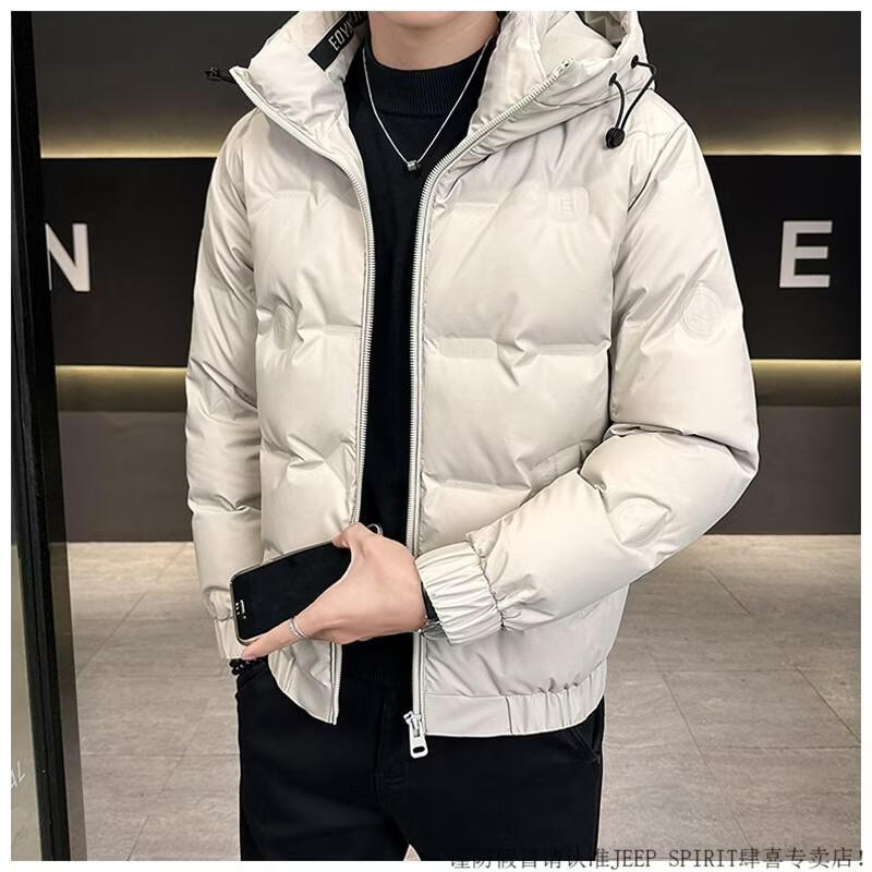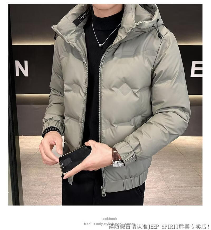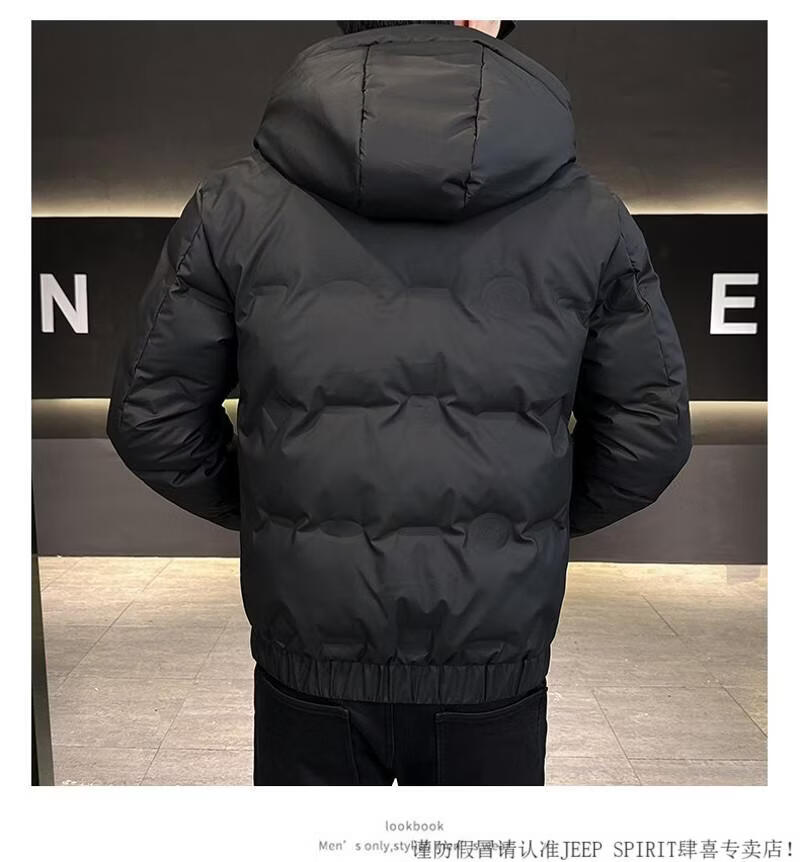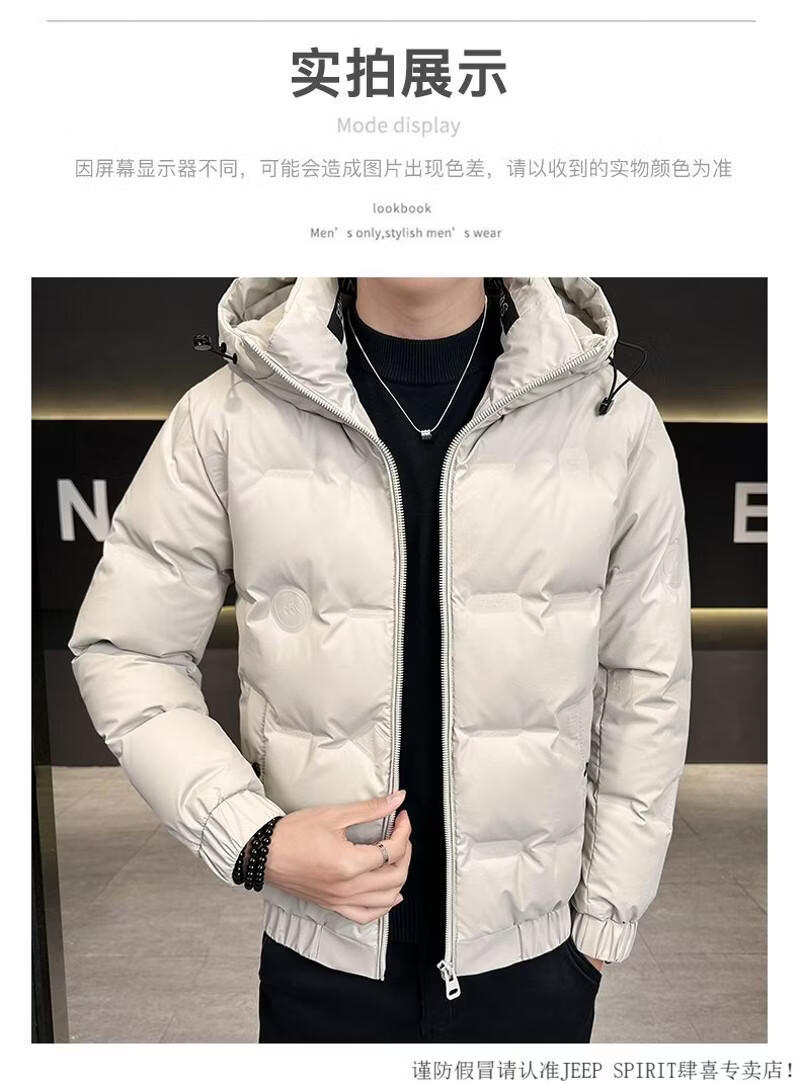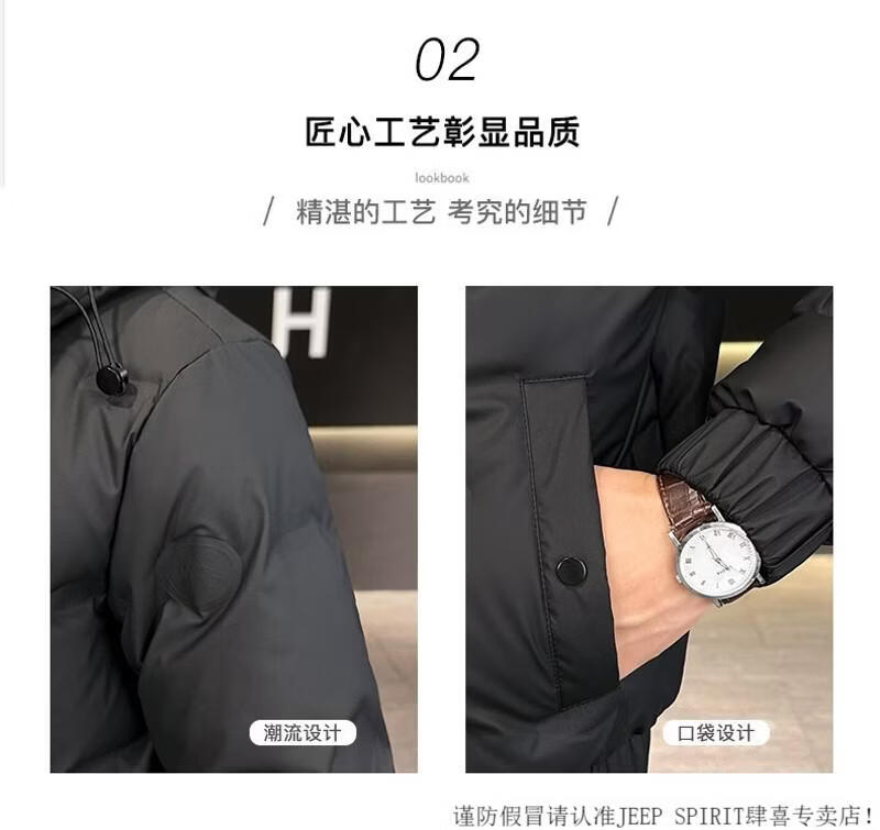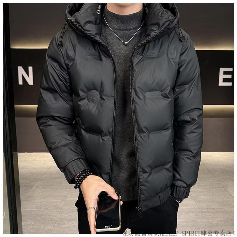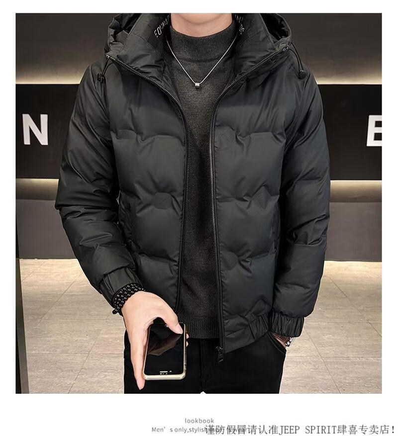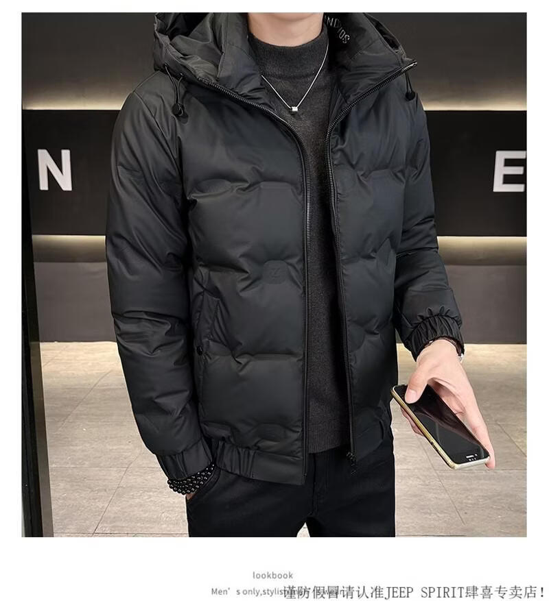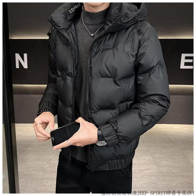 JEEP SPIRIT男士短款冬季连帽羽绒服2025新款加厚保暖修身免洗冬装外套潮 1053-1款黑色 M 90-105斤