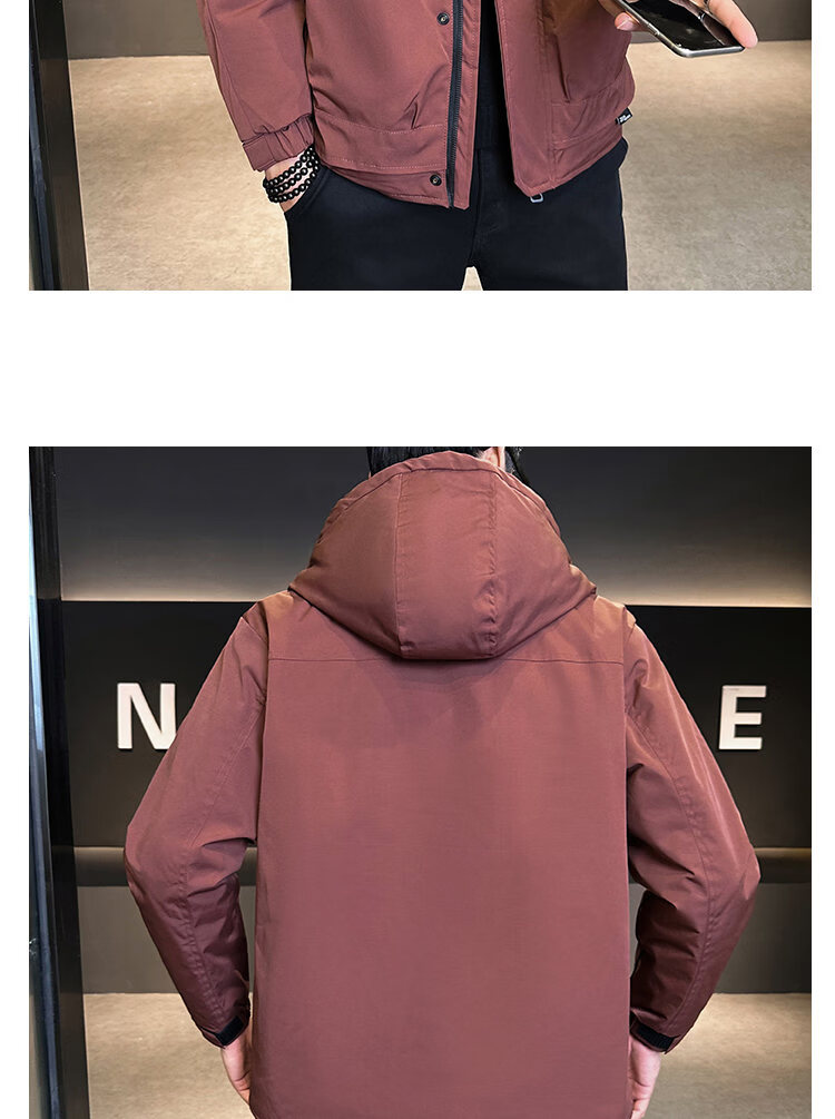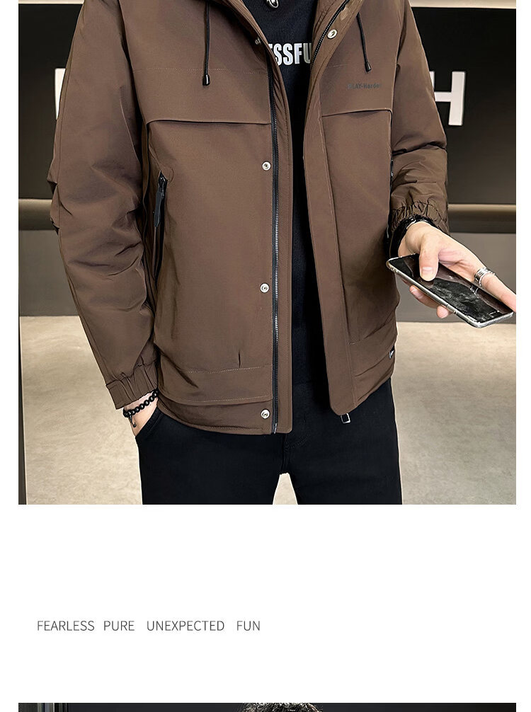 啄木鸟(TUCANO)二棉男装秋冬季2026新款连帽外套男士冲锋衣款夹克夹棉加厚上衣服 黑色 L