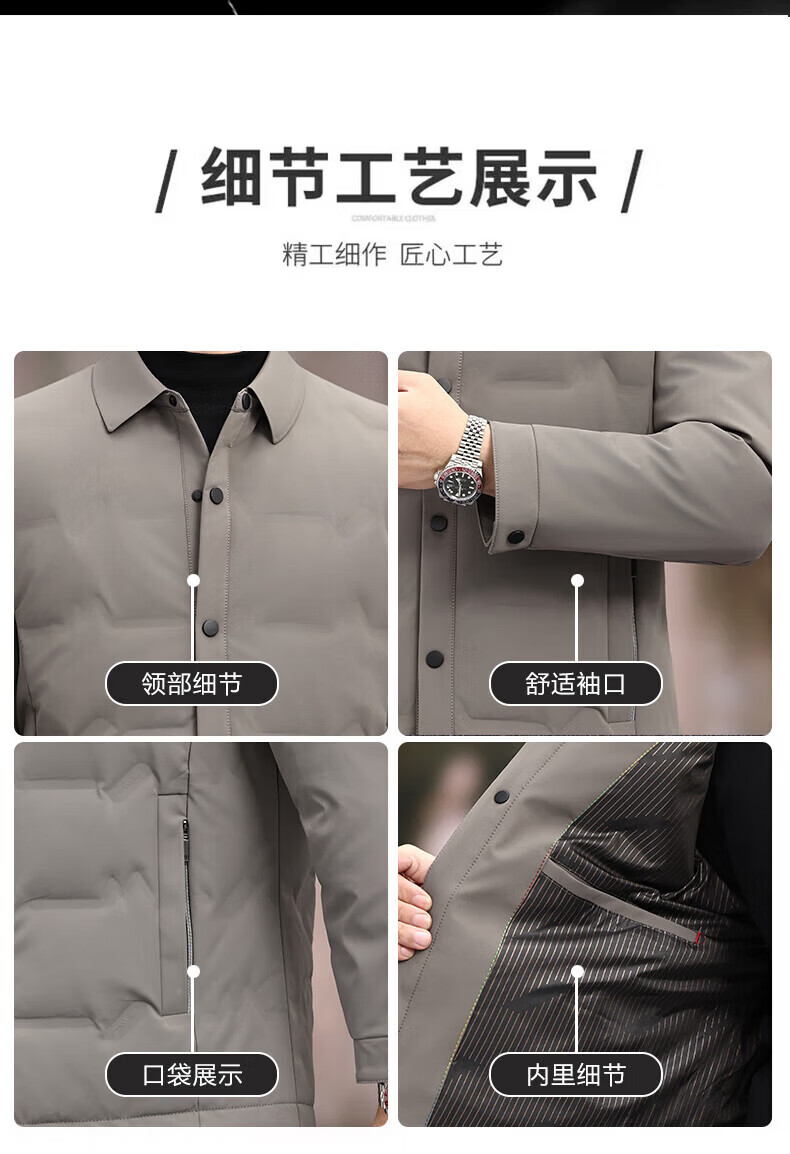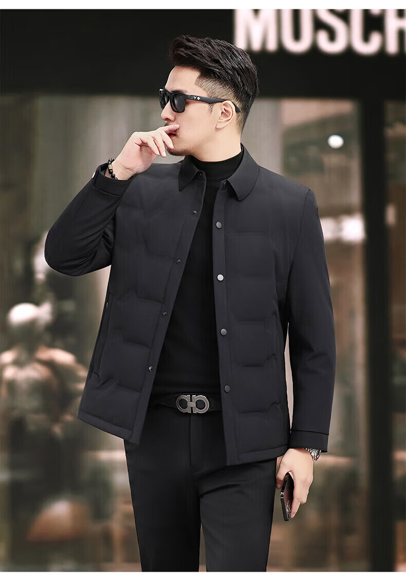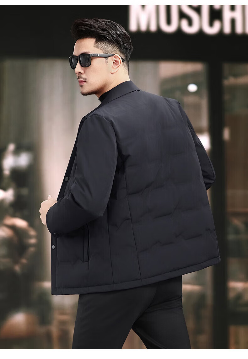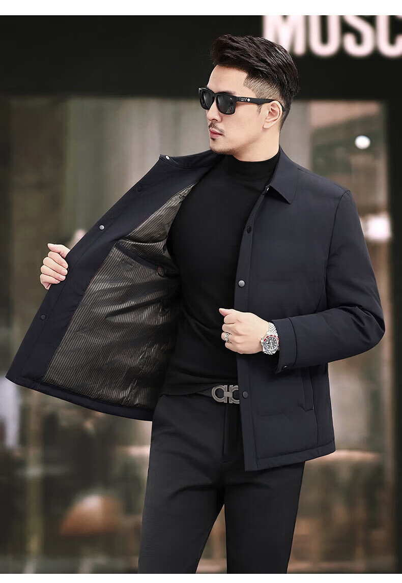 LILANZ Пуховик мужской, осень 2025, новинка 2025 года, повседневная мужская легкая мужская куртка для молодежи и среднего возраста с лацканами, белая мужская куртка на утином пуху, черная, 2XL 185