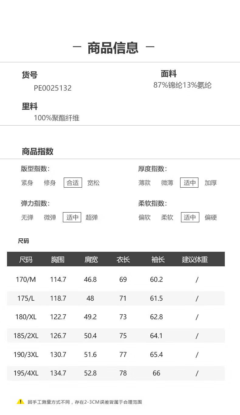 China (cm) 165 / 88-90 170 / 96-98 175 / 108-110 180 / 118-122 185 / 126-130