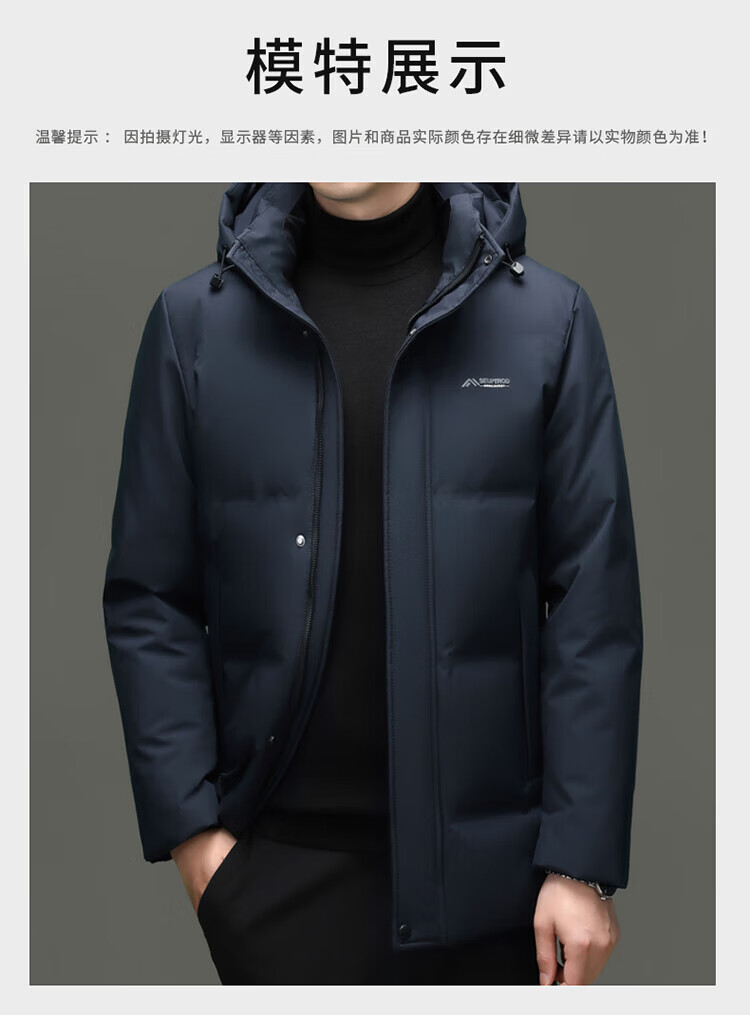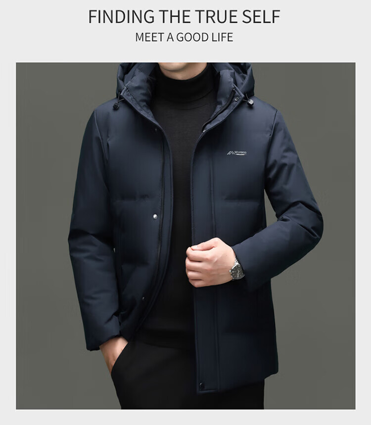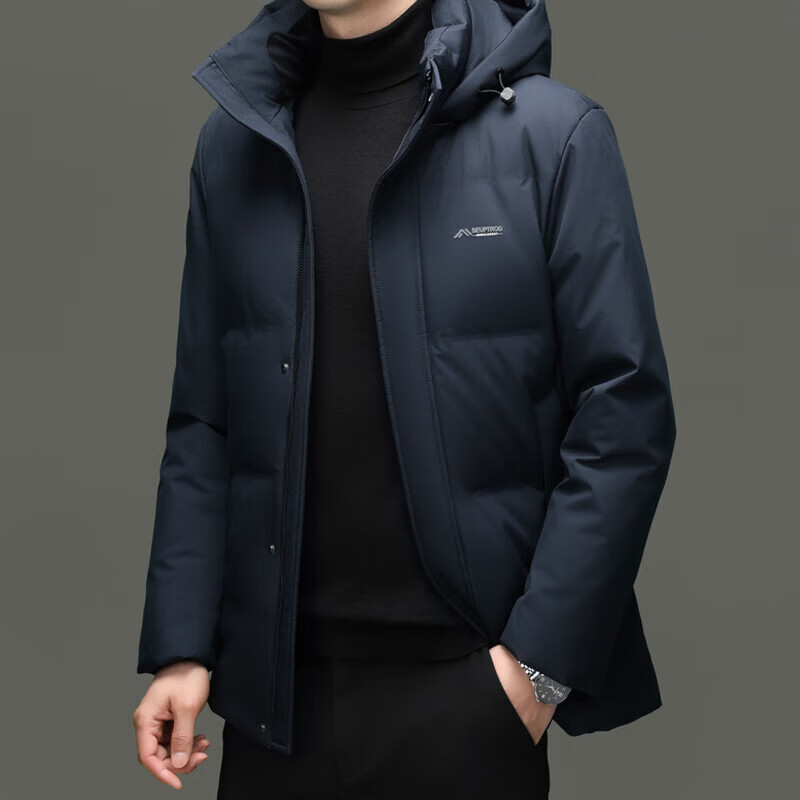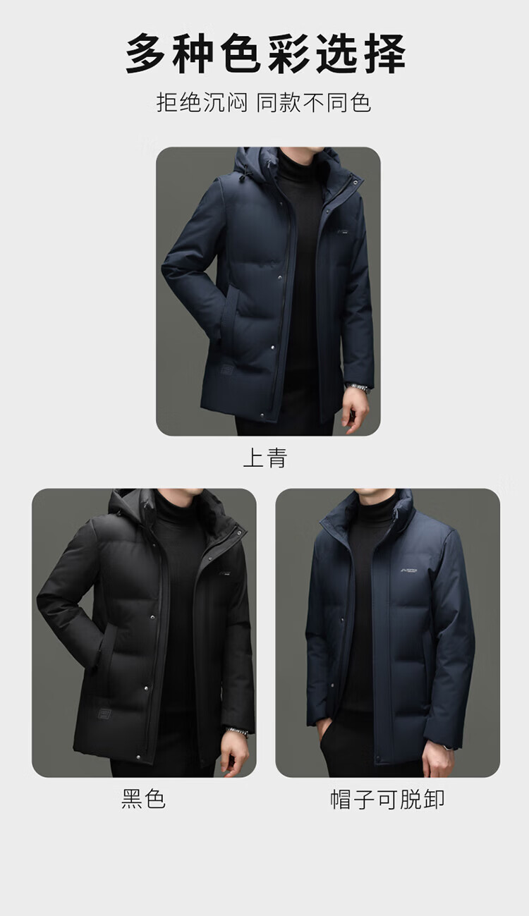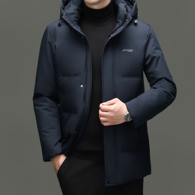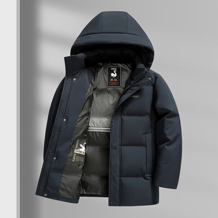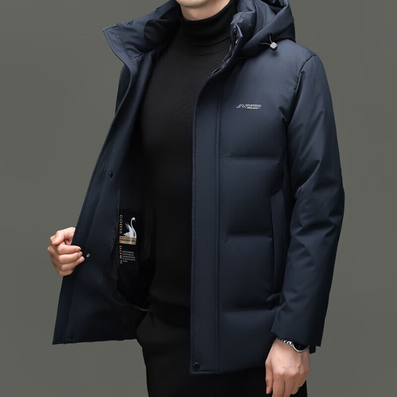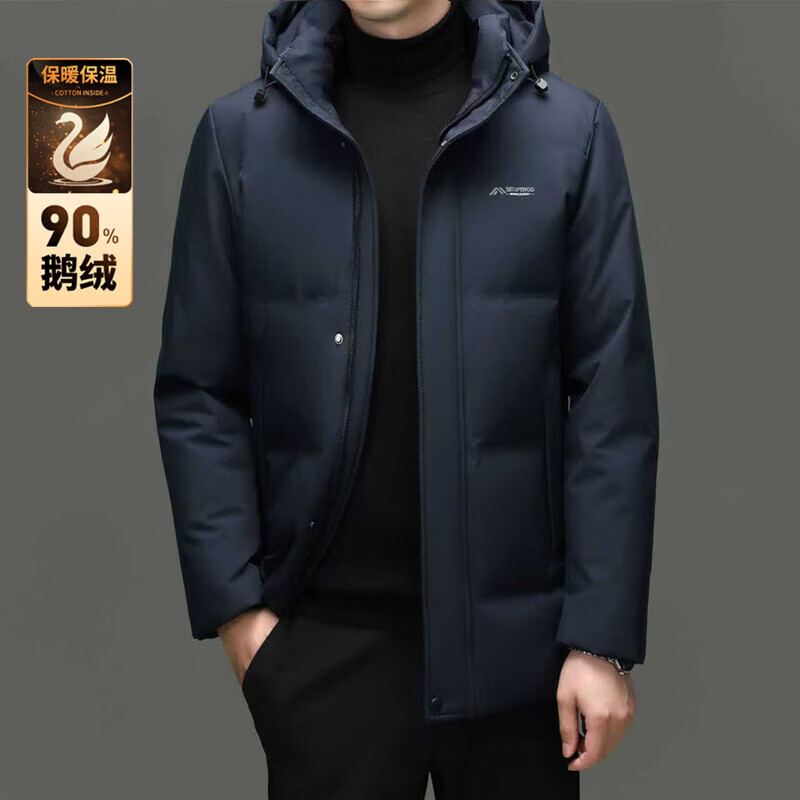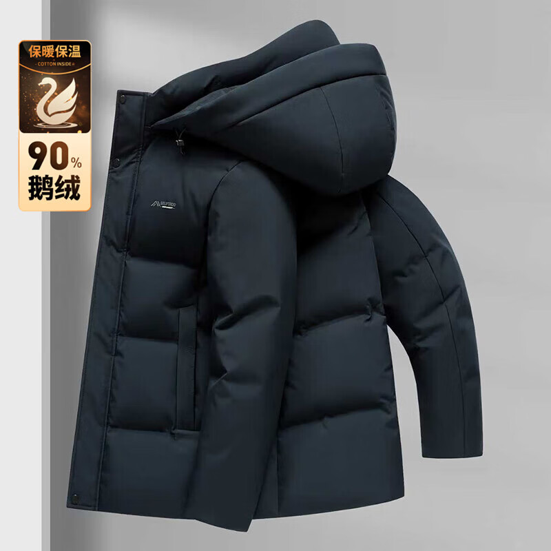 利郎(LILANZ)鸭绒羽绒服男士中长款冬季新款中年爸爸加厚保暖冬装外套男装 藏青色 L 175/96A