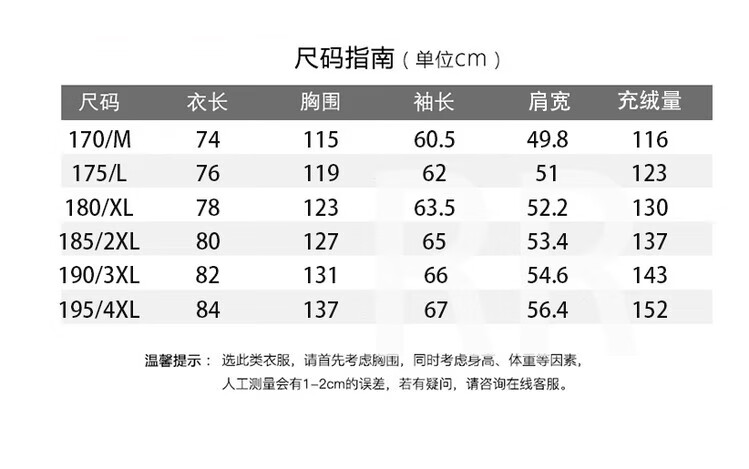 China (cm) 165 / 88-90 170 / 96-98 175 / 108-110 180 / 118-122 185 / 126-130