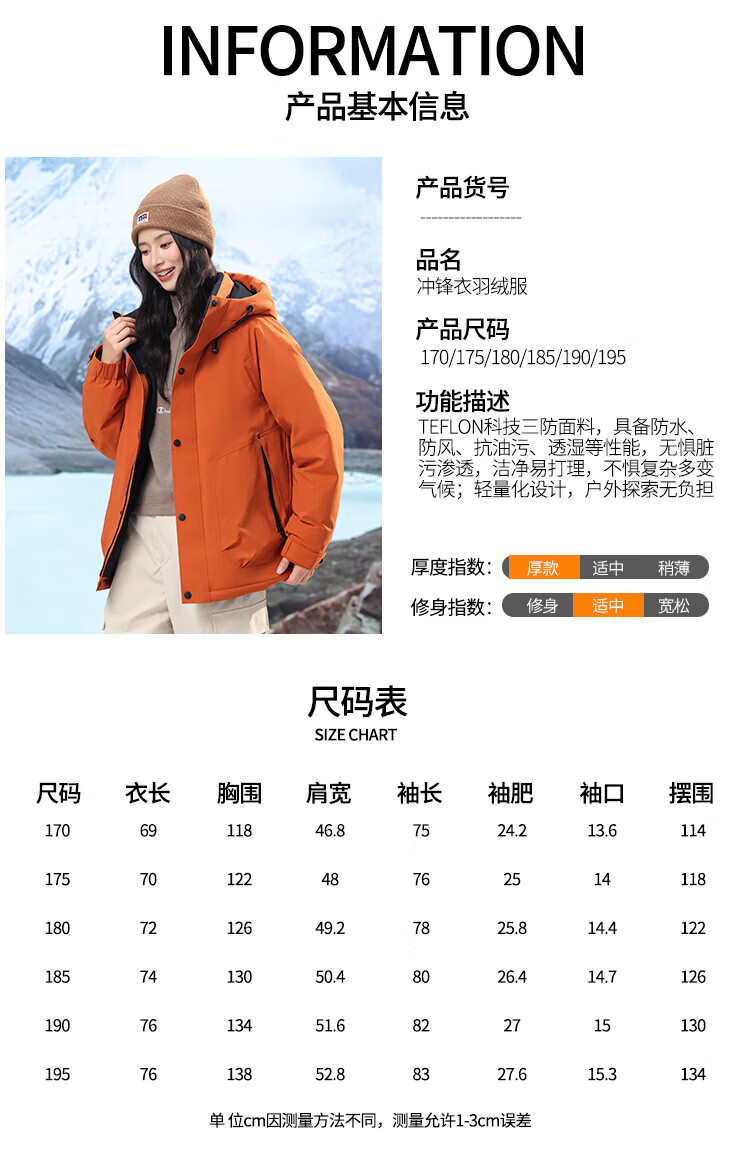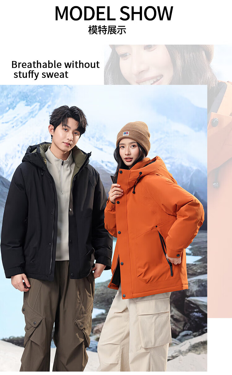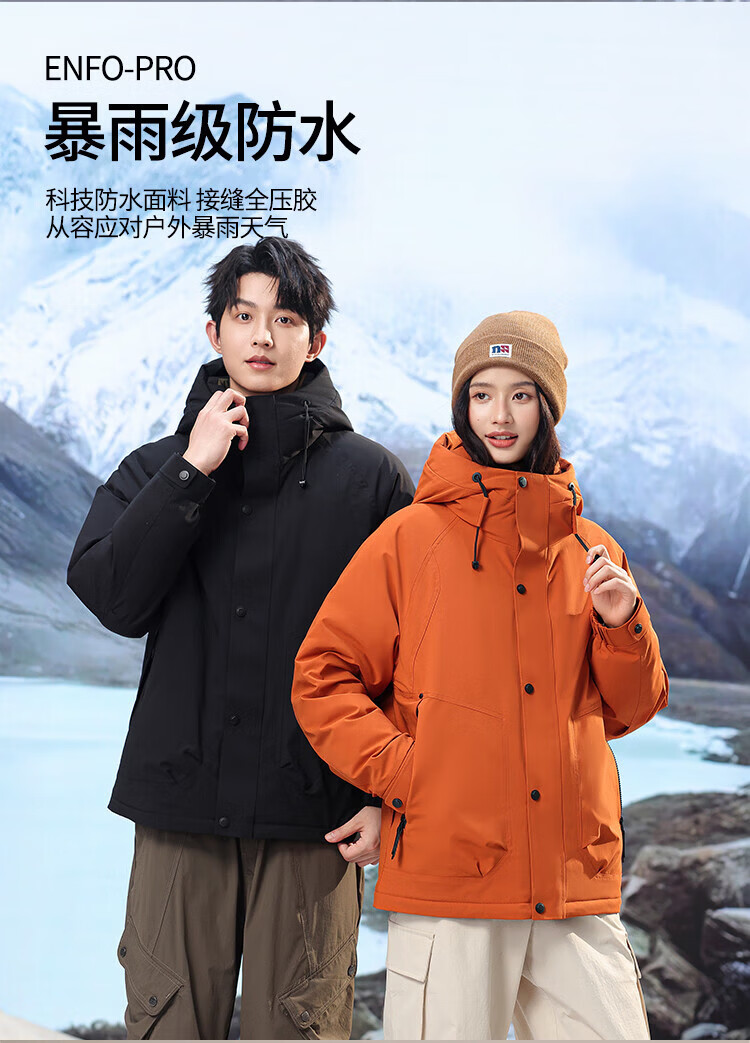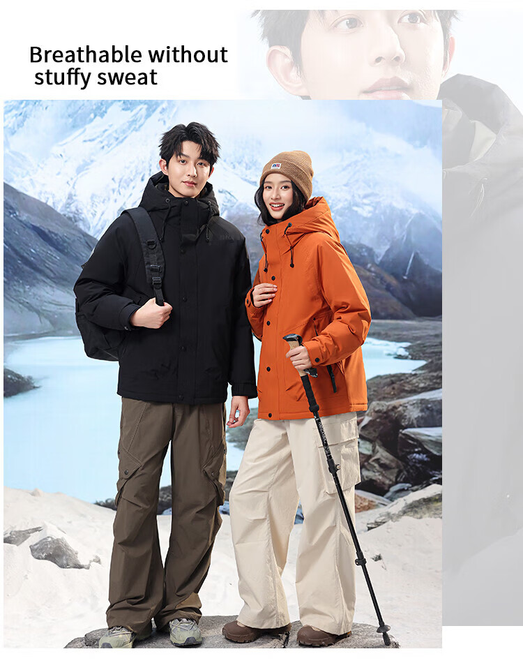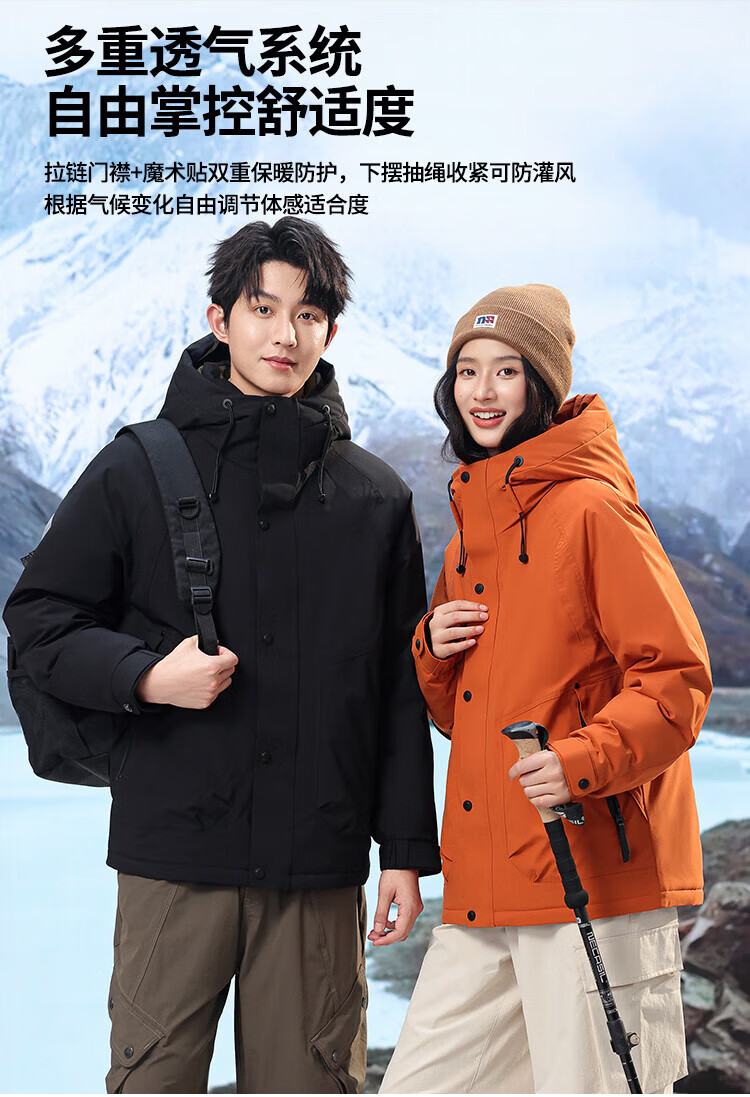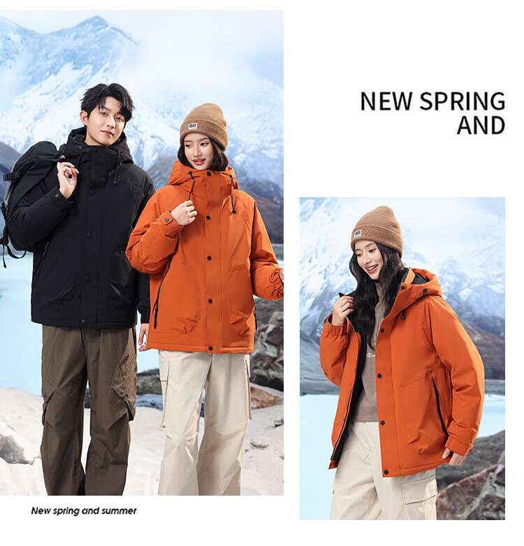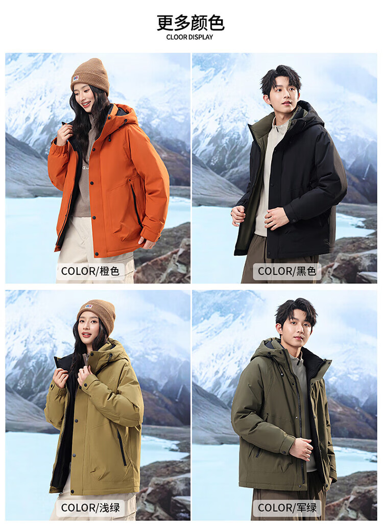 LILANZ down jacket for men and women, thickened and warm jacket, winter new couple style, outdoor extreme cold three-proof jacket, orange M 170