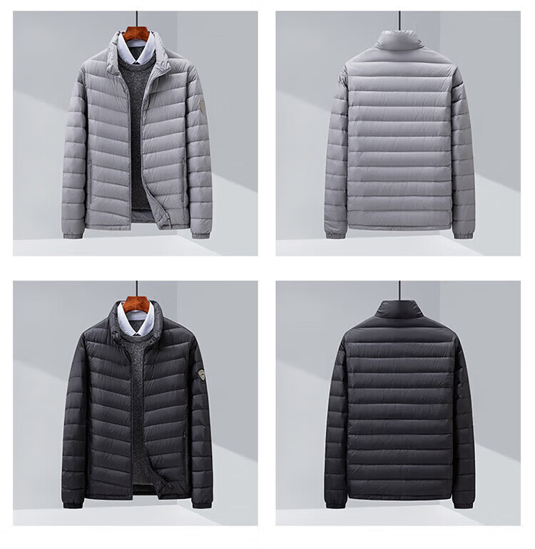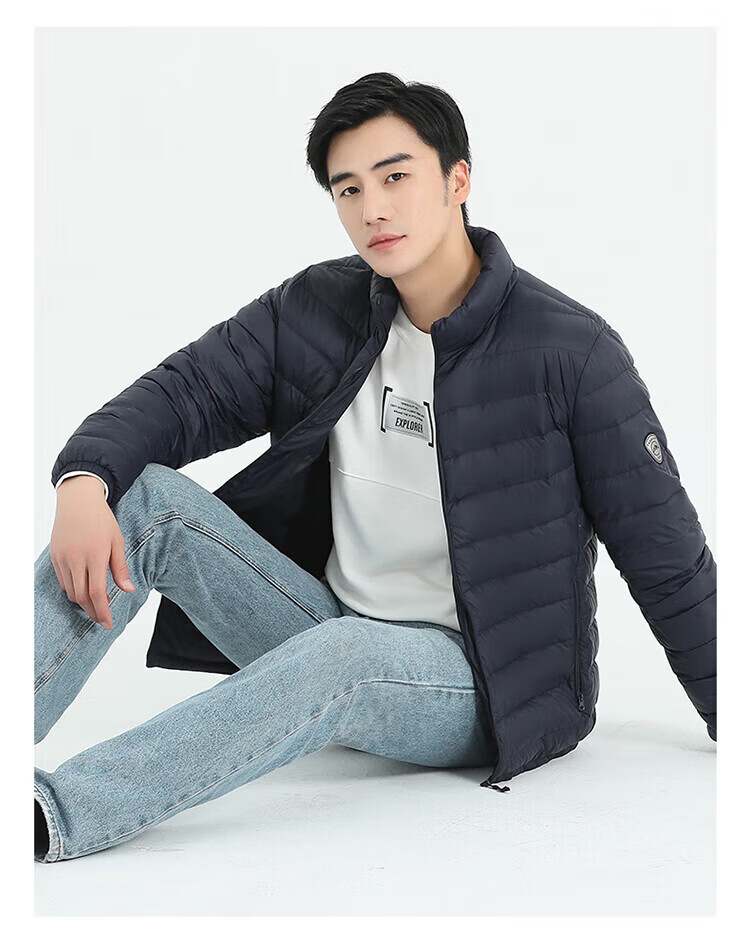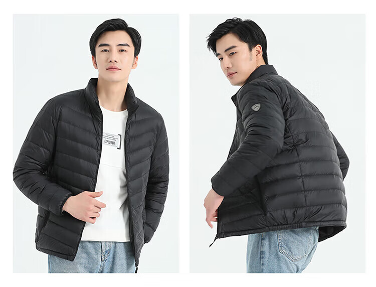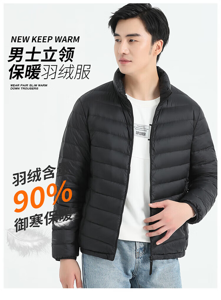 利郎(LILANZ)男士轻薄羽绒服2025年冬季新款立领修身短款鸭绒保暖外套 黑色 M 170