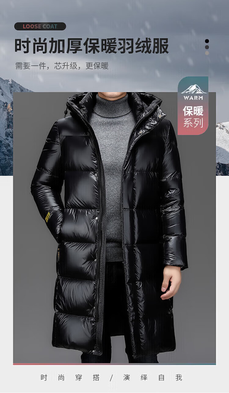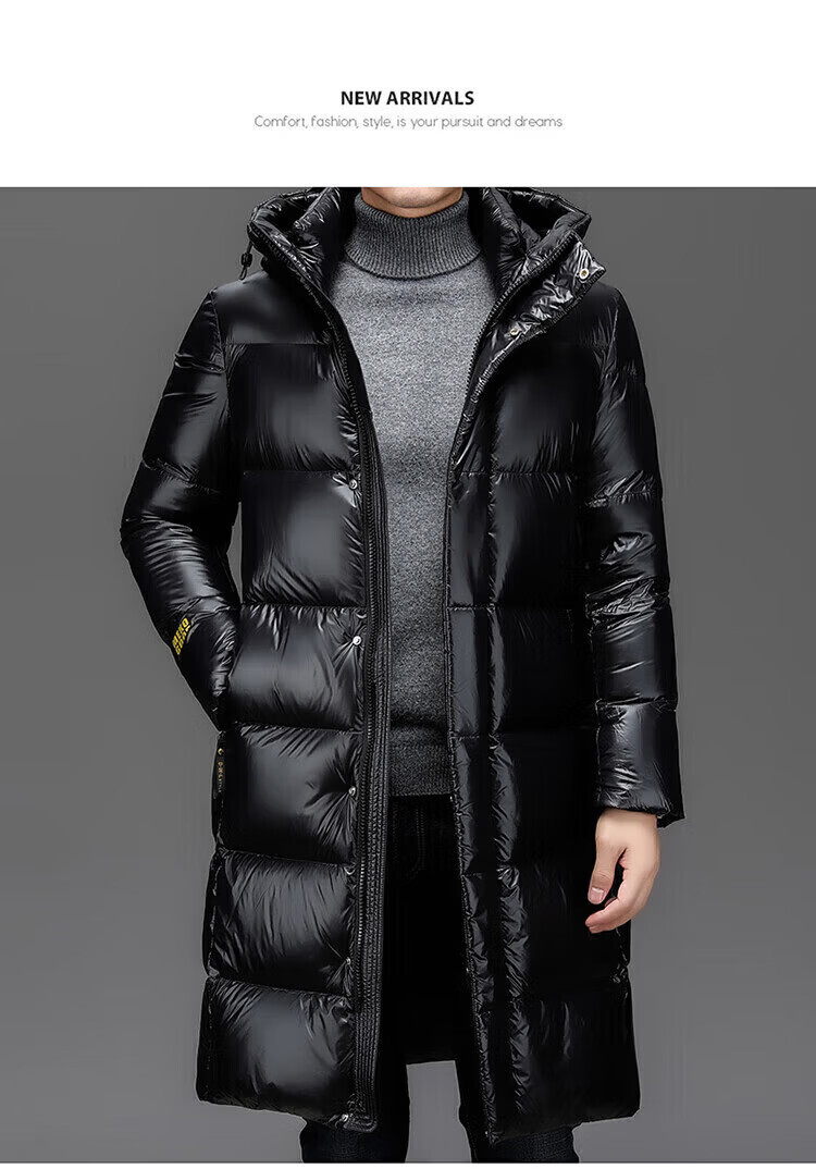 LILANZ mid-length men's down jacket winter new warm hooded casual extreme cold thickened jacket for young and middle-aged men black 18-6706 S 165