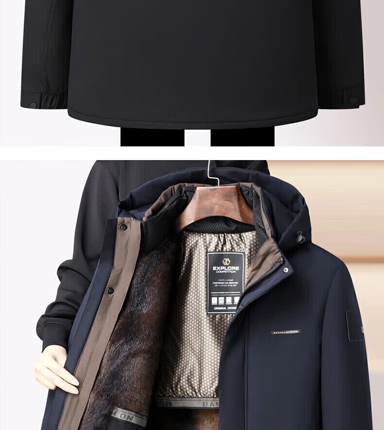 利郎(LILANZ)爸爸脱卸羽绒服男装2025冬季新款加绒90鸭绒中老年冬装外套中 黑色 L 建议90-110斤