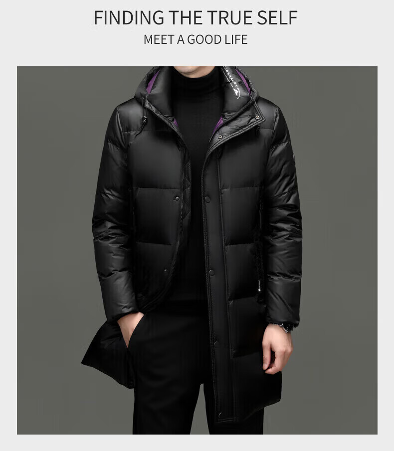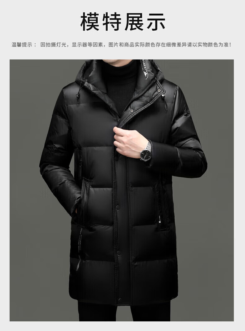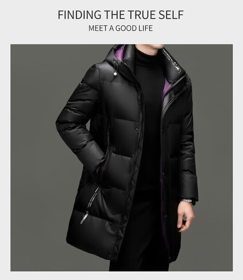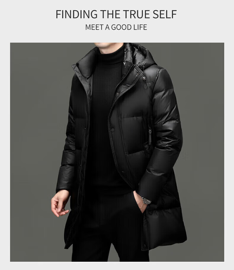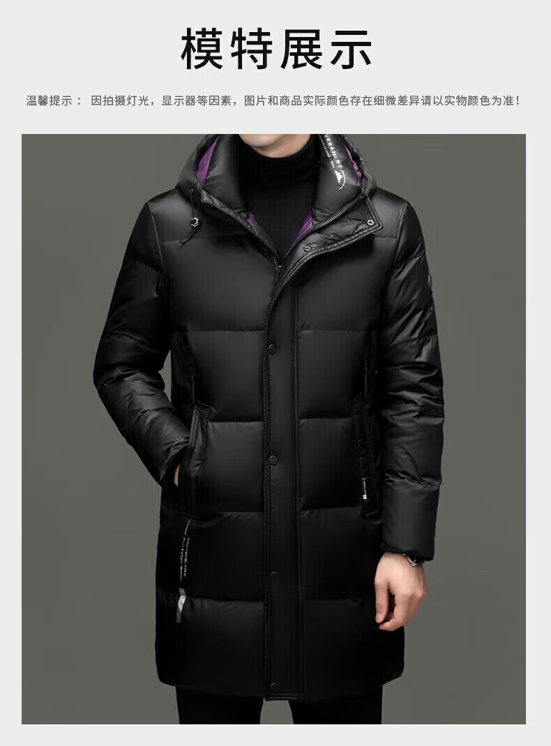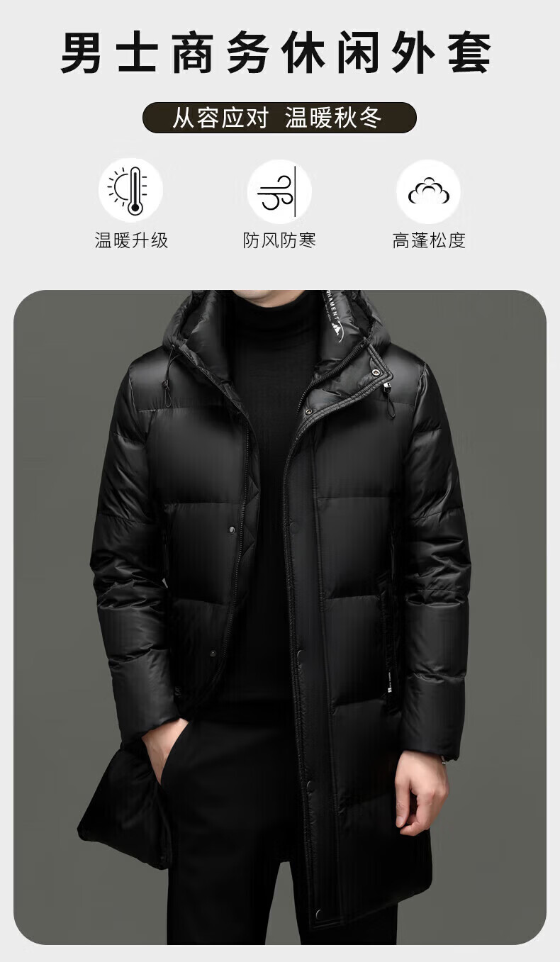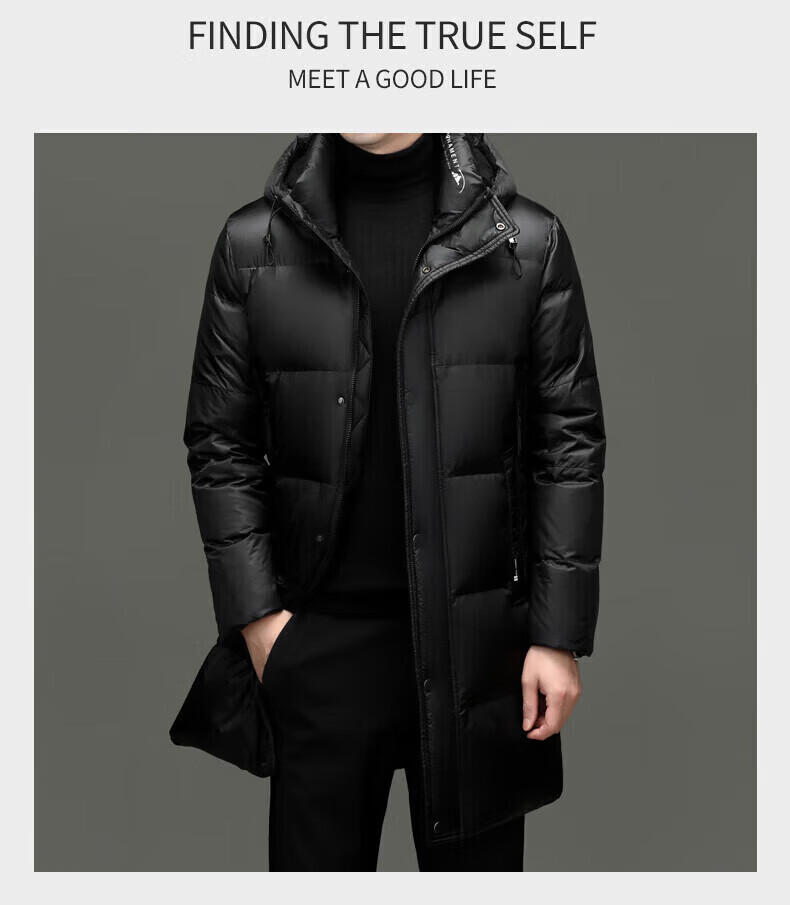 LILANZ куртка на высоком пуху мужская утолщенная куртка средней длины с капюшоном модная новая 90% утиный пух черный 3XL 190 вес 170-185 Jin Jin равен 0,5 кг