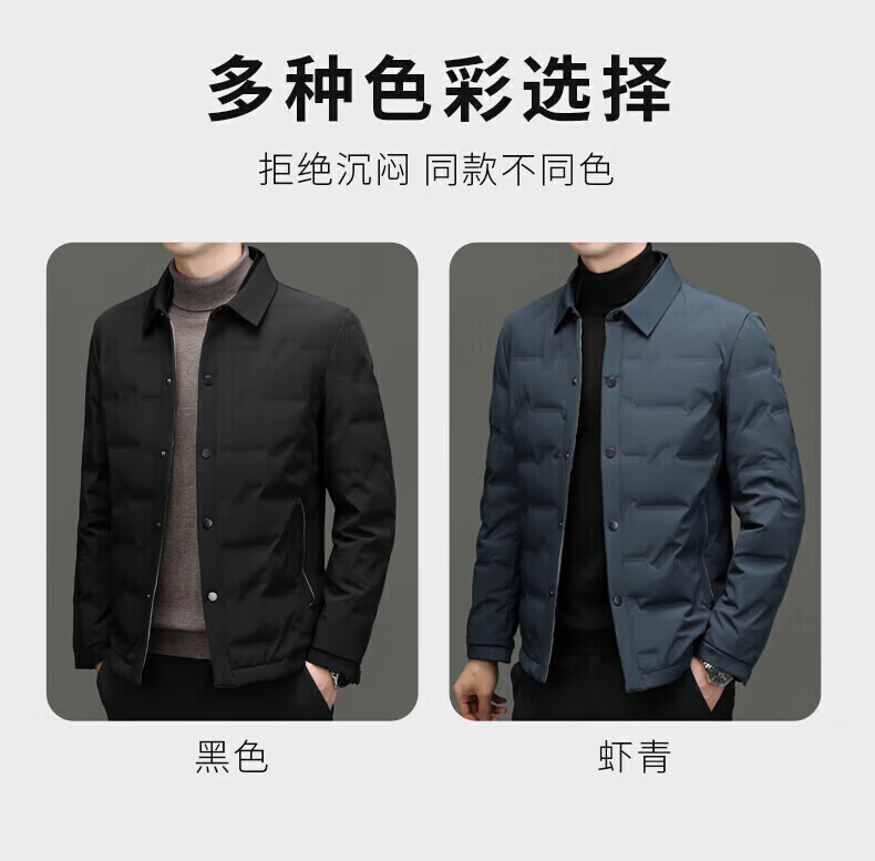 LILANZ Men's Lightweight Down Jacket Men's Autumn and Winter Warm Jacket Dad Lapel Casual Short Fashion Top Black 3966 M 170