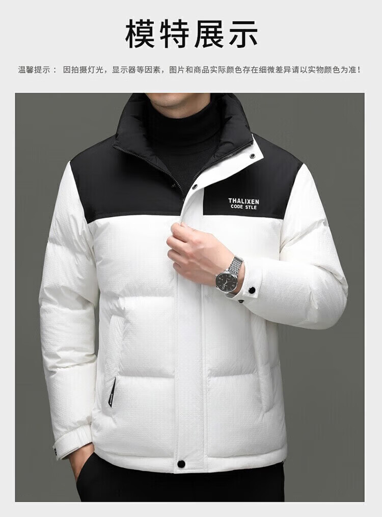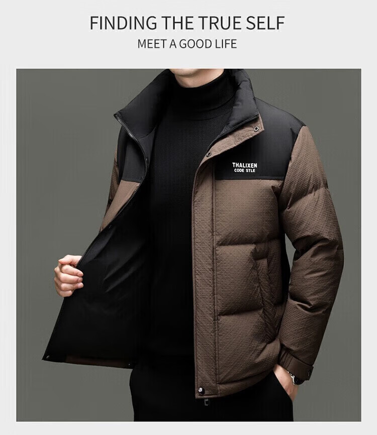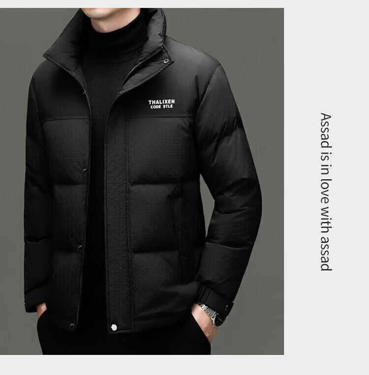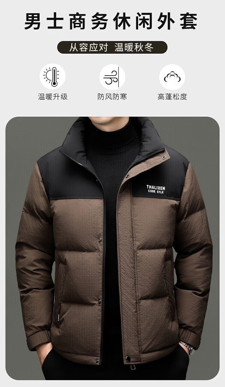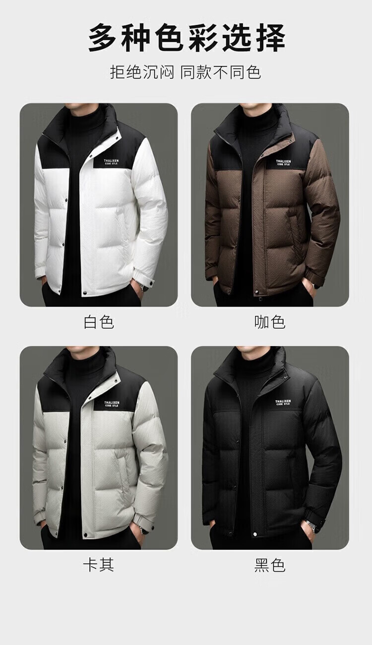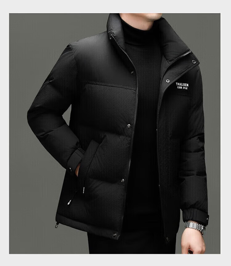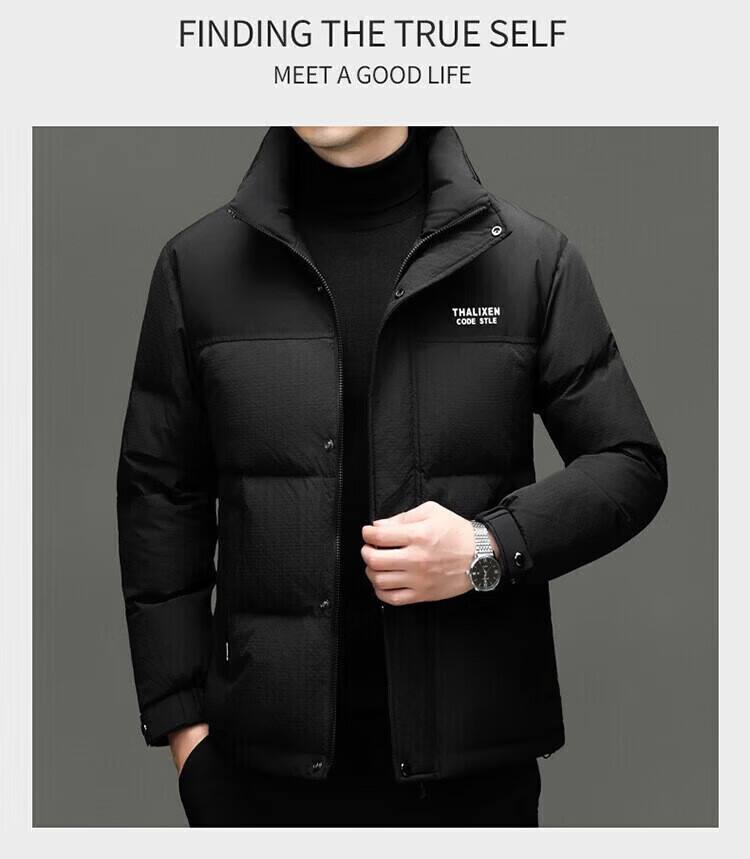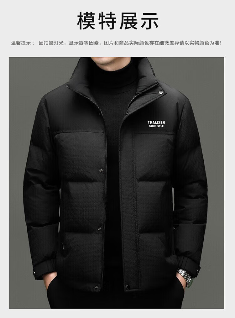 利郎(LILANZ)男士新款立领纯色休闲羽绒服中青年加厚保暖90羽绒服上衣外套 黑色 82593袖子可脱卸 (充绒量97.8克) 14XL (170)