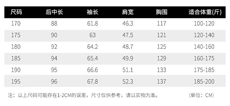 China (cm) 160-165/84-86 165-170 / 88-90 167-172 / 92-96 168-173 / 98-102 170-176 / 106-110