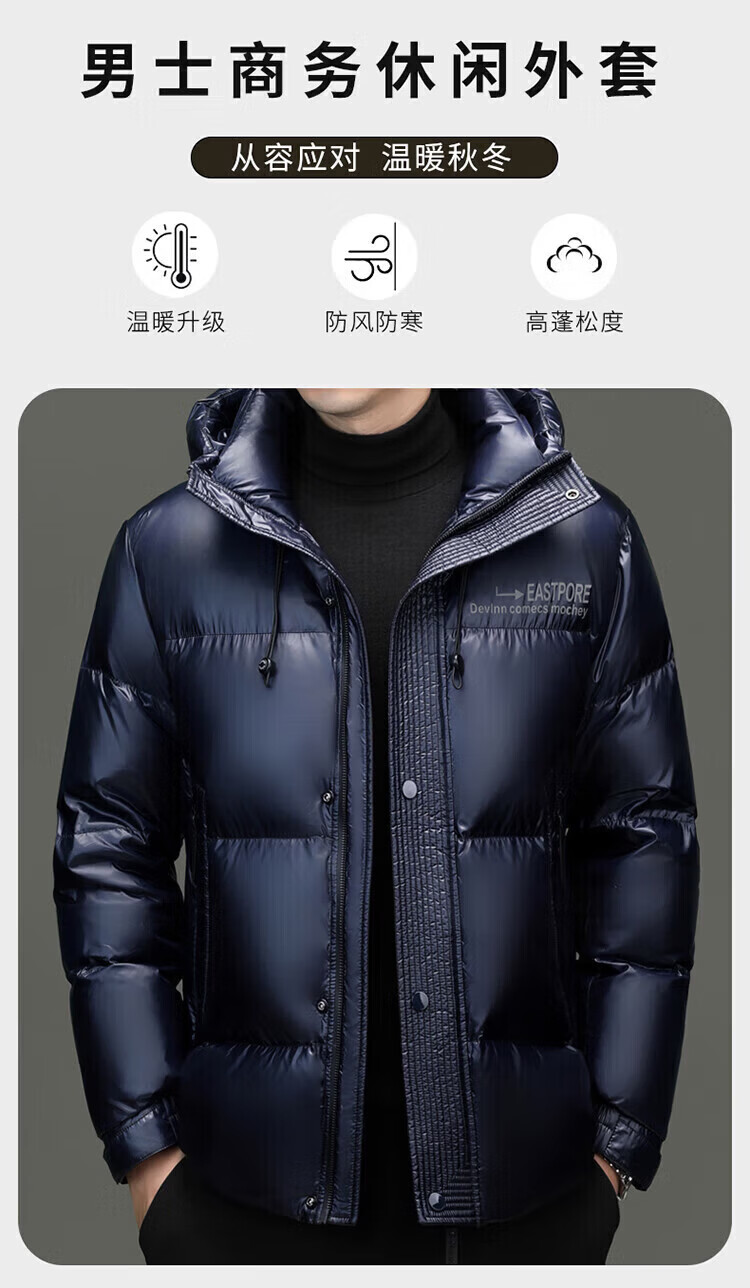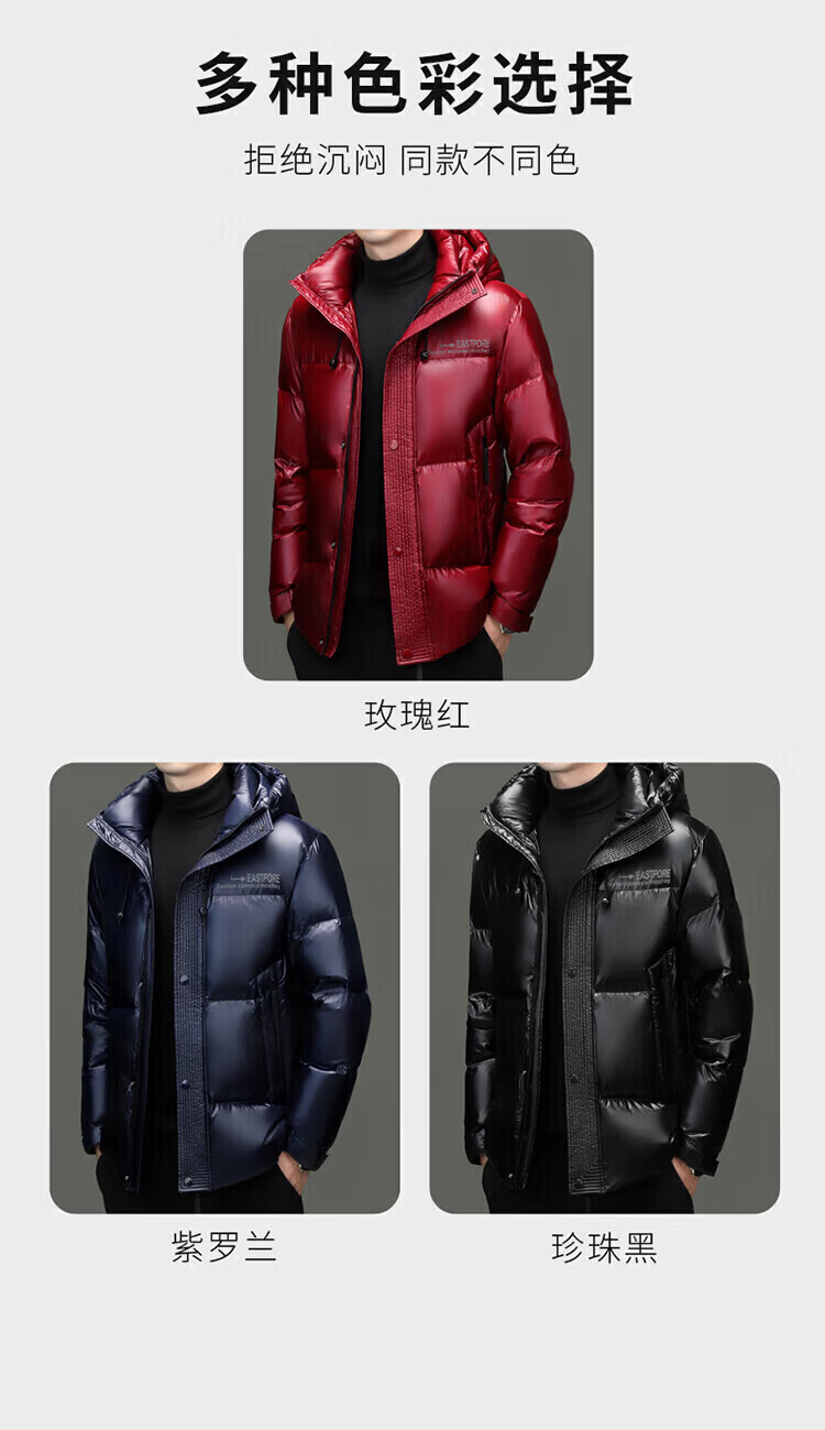 利郎(LILANZ)2025冬季高端白鹅绒羽绒服男士短款连帽时尚休闲男外套 紫罗兰 M 170/84A 建议110-125斤穿