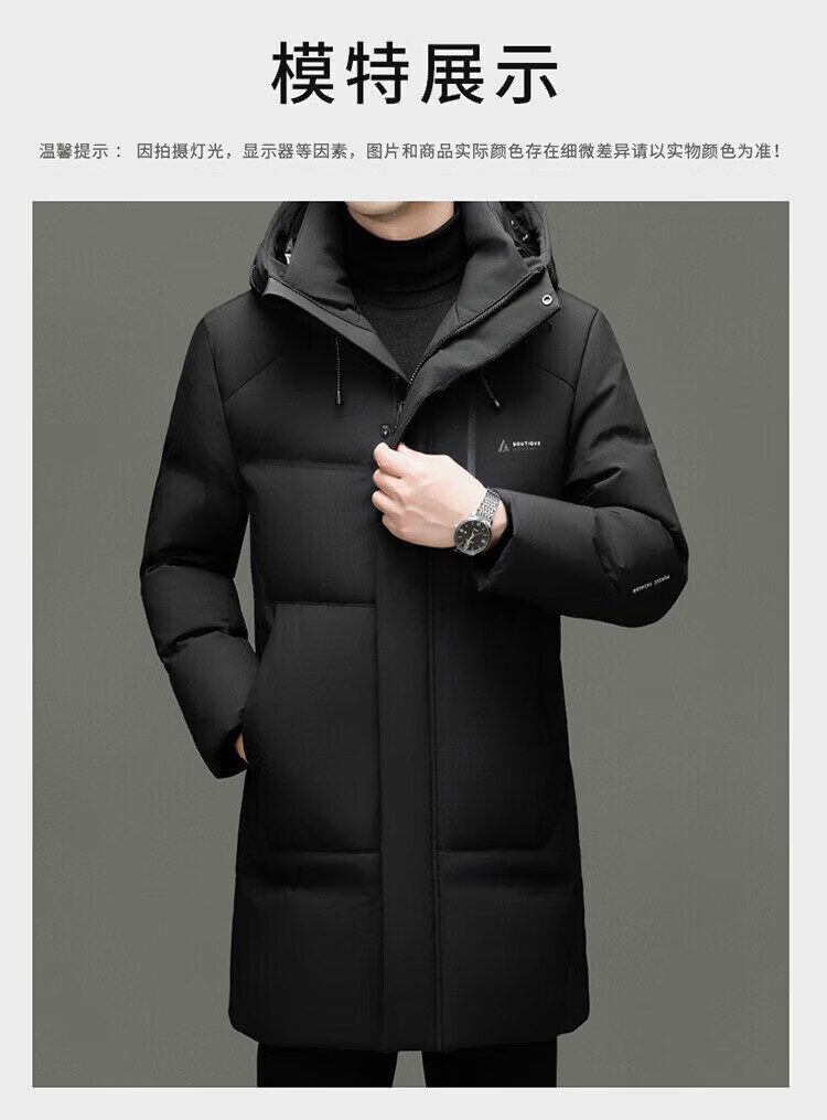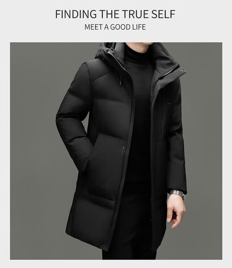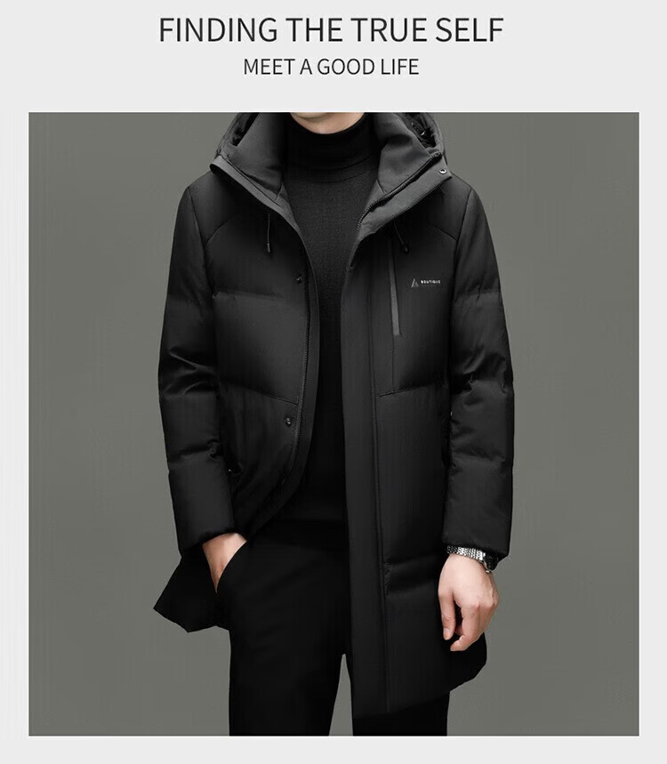 LILANZ Мужской осенне-зимний толстый пуховик 90, молодежный длинный повседневный модный теплый пиджак с капюшоном, черный 5523 со съемной подкладкой 14XL (190)