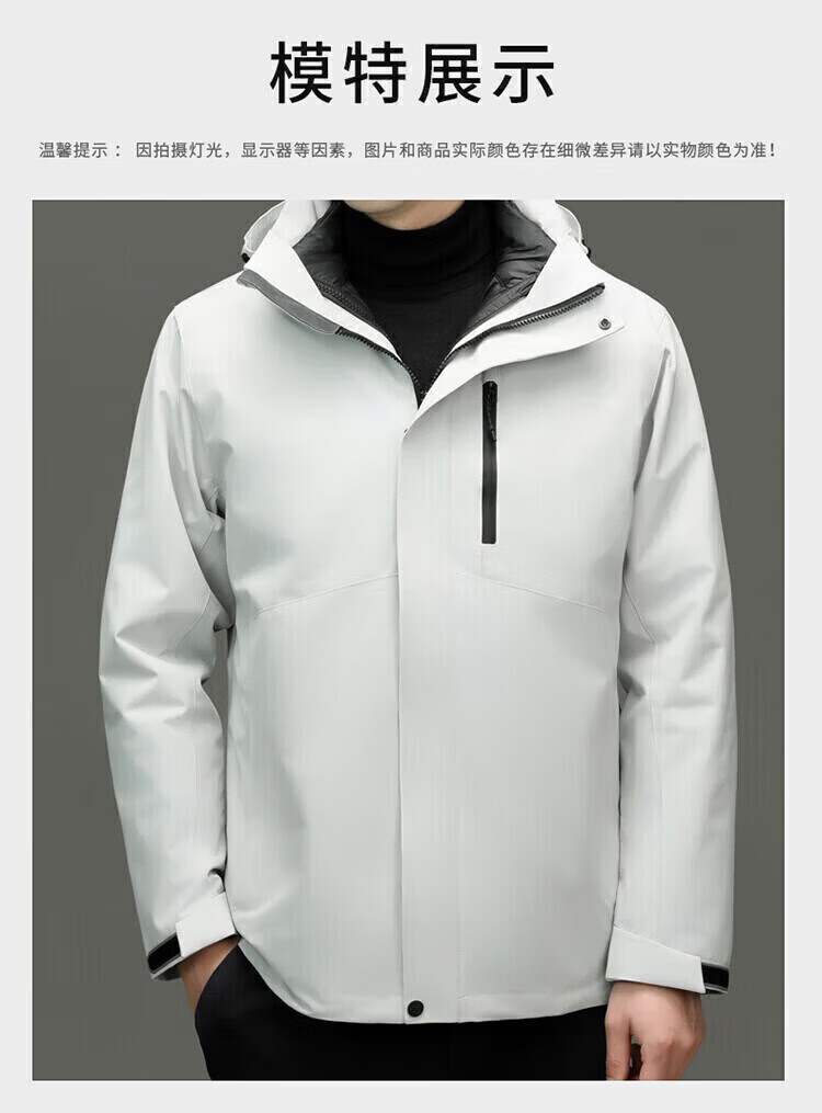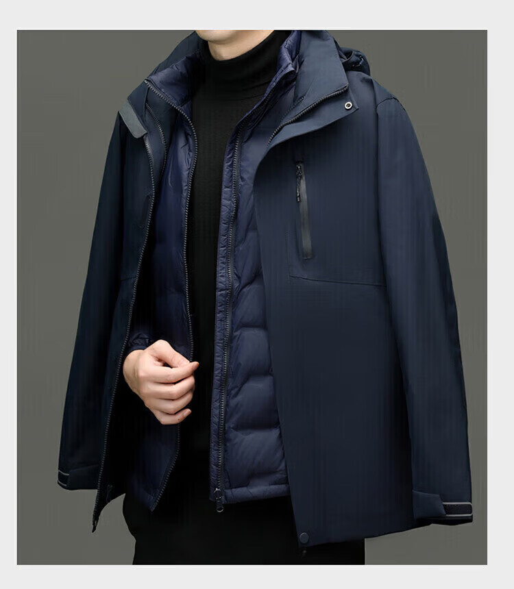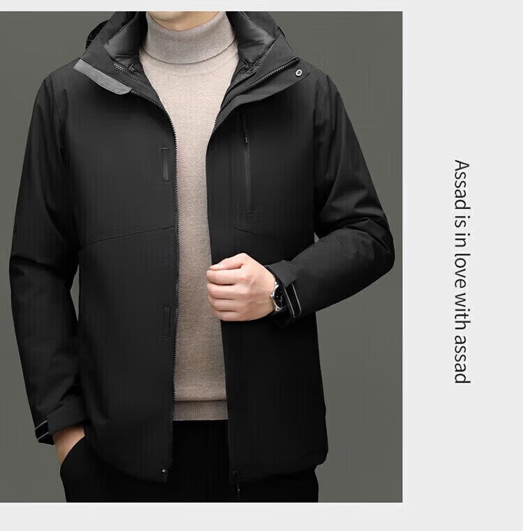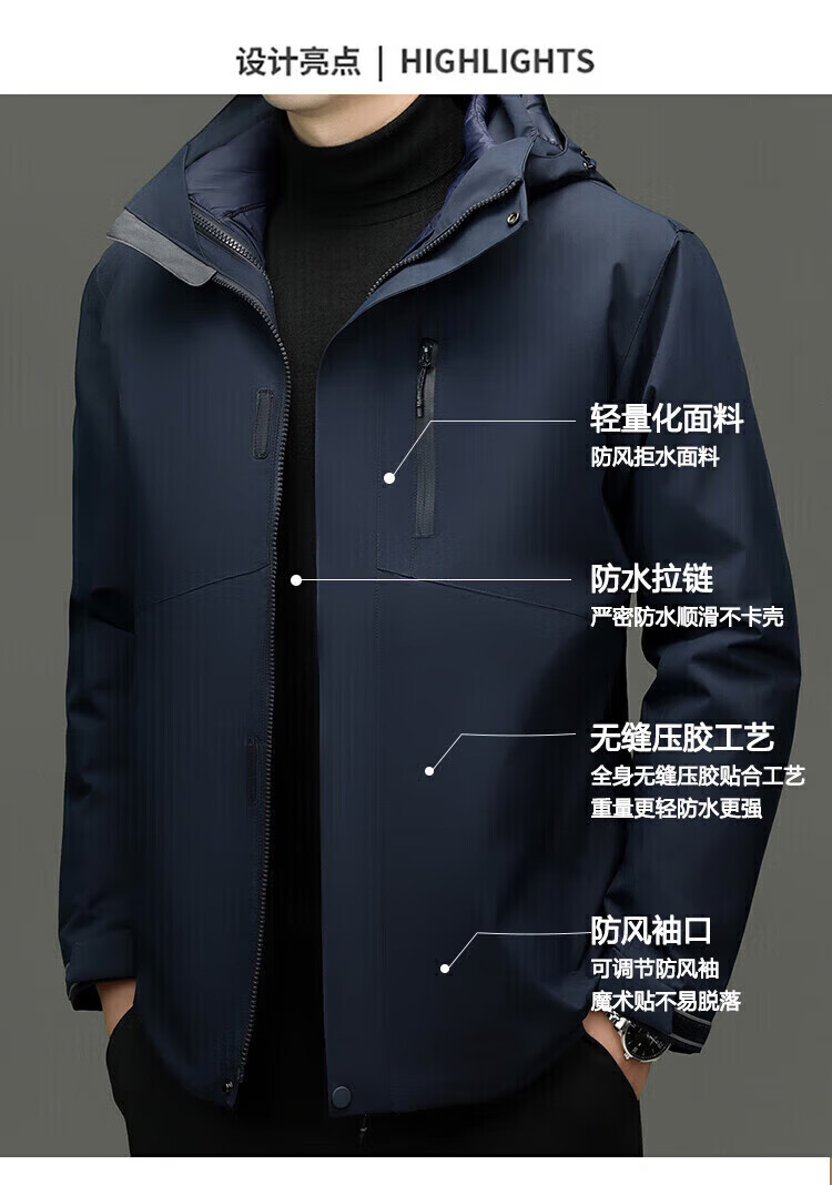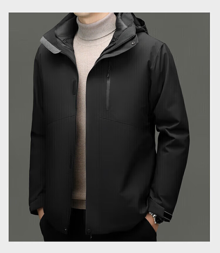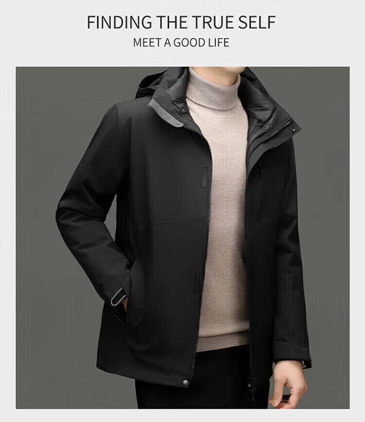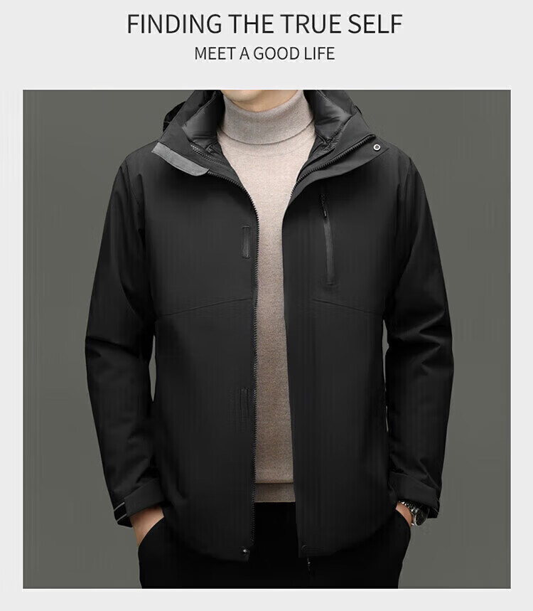 利郎(LILANZ)2025冬季新款三合一羽绒服男短款可拆卸内胆冲锋衣保暖外套潮 黑色 M