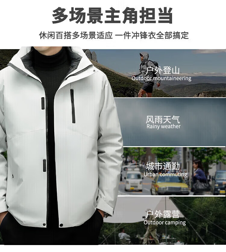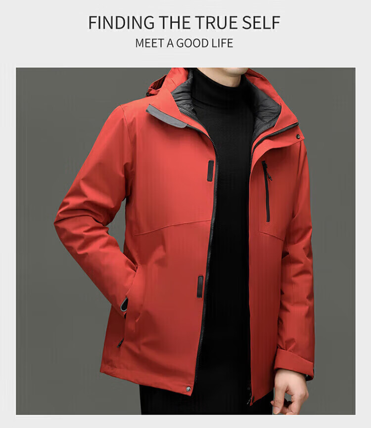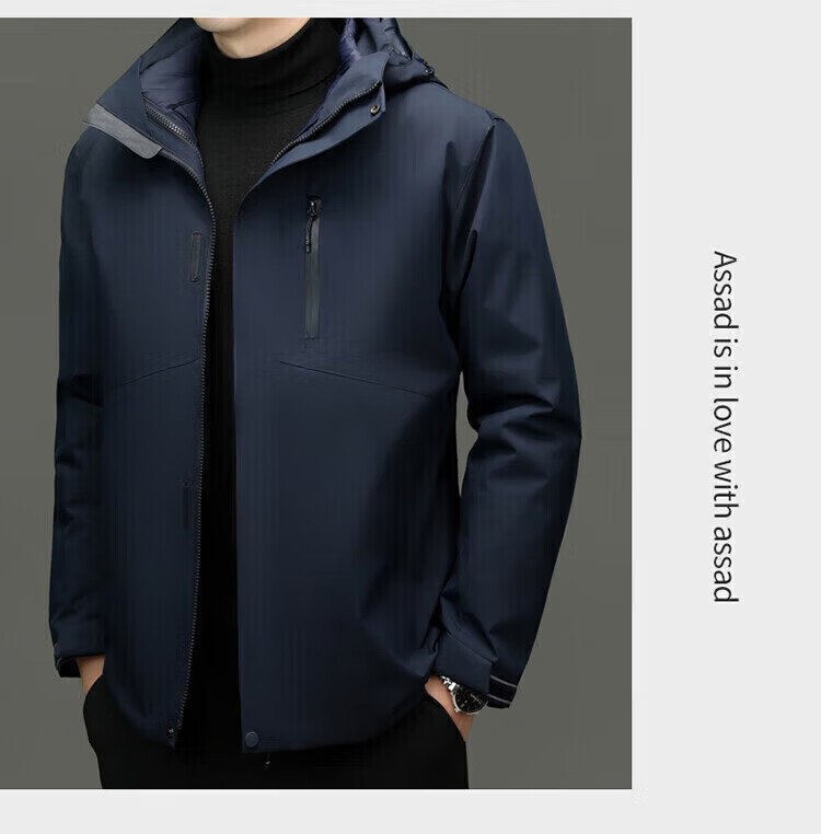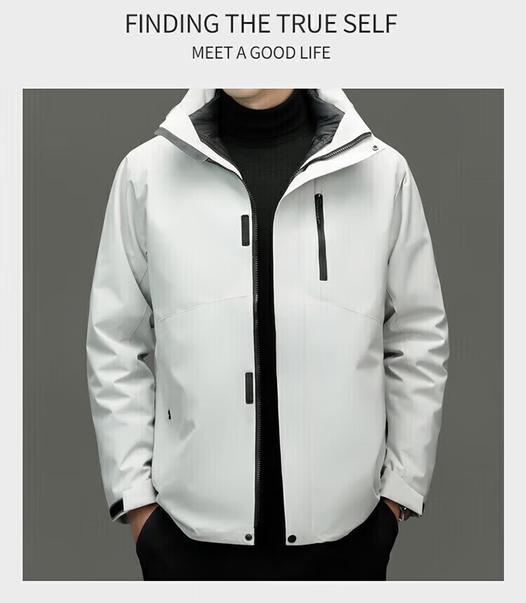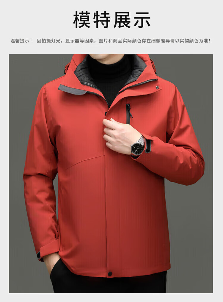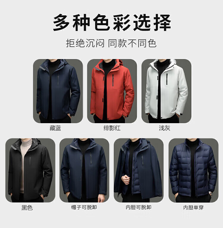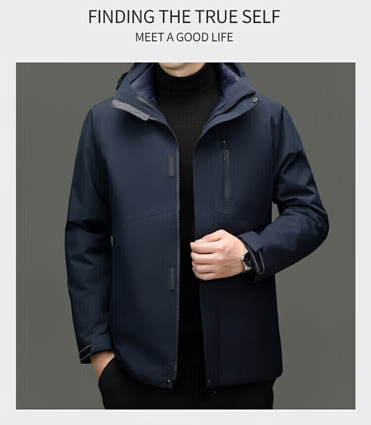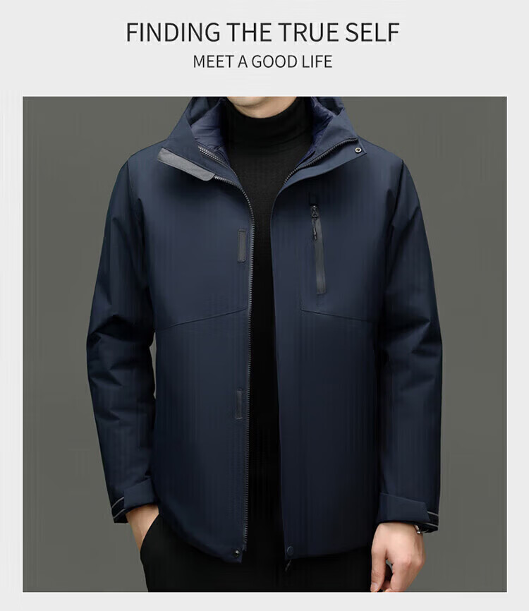 利郎(LILANZ)2025冬季新款三合一羽绒服男短款可拆卸内胆冲锋衣保暖外套潮 黑色 M