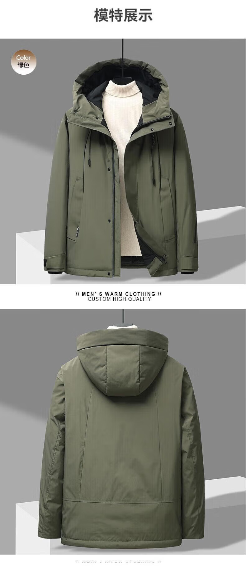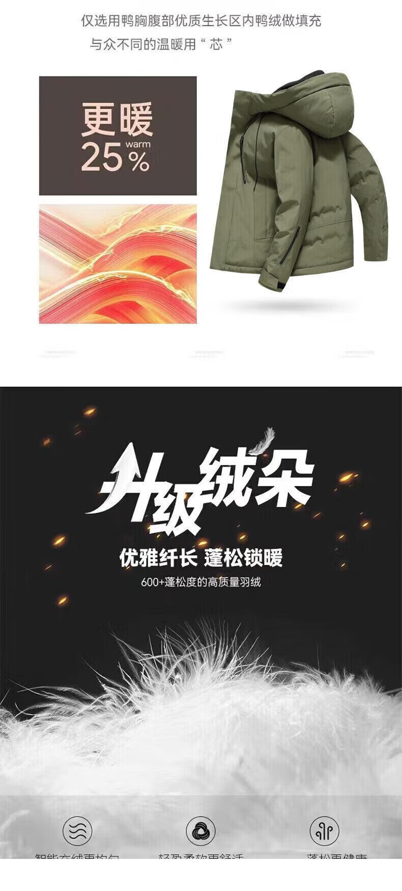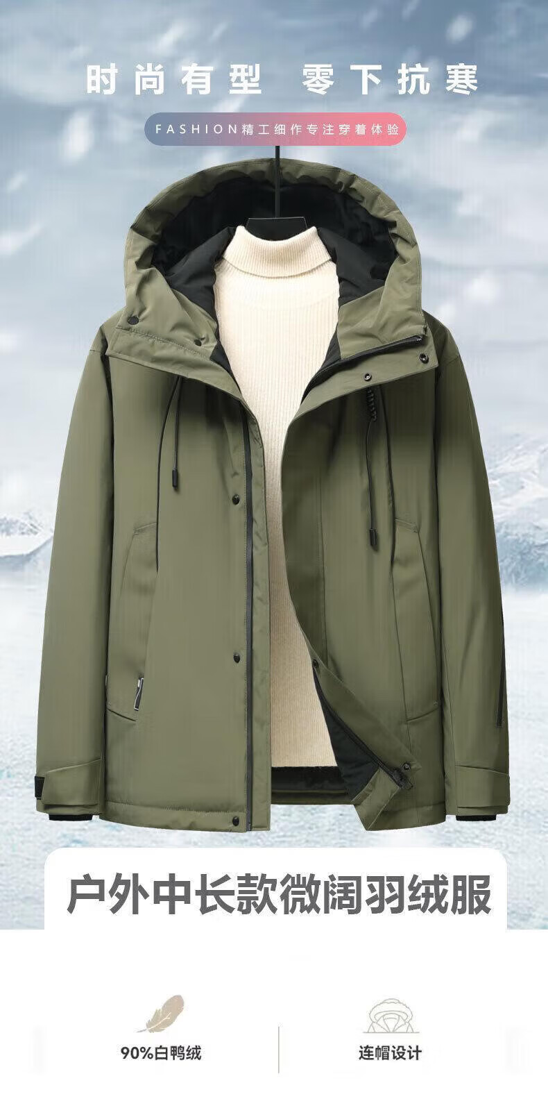 利郎(LILANZ)男士羽绒服2025冬季新款90白鸭绒防寒短款连帽羽绒袄外套男 绿色 M