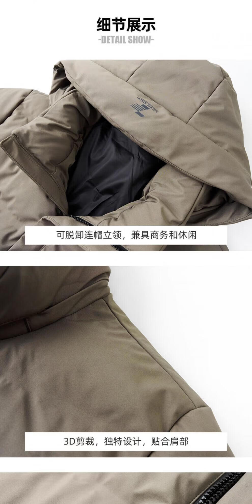 利郎(LILANZ)品牌男士羽绒服2025冬季新款立领白鸭绒保暖加厚时尚外套 卡其色 可脱卸帽 XL 适合体重130-150斤
