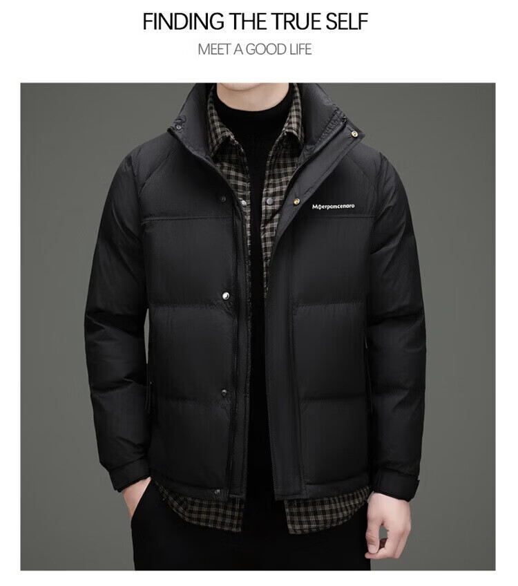LILANZ winter new duck down down jacket men's fashion trend stand collar down jacket new trendy fake two-piece down black XL