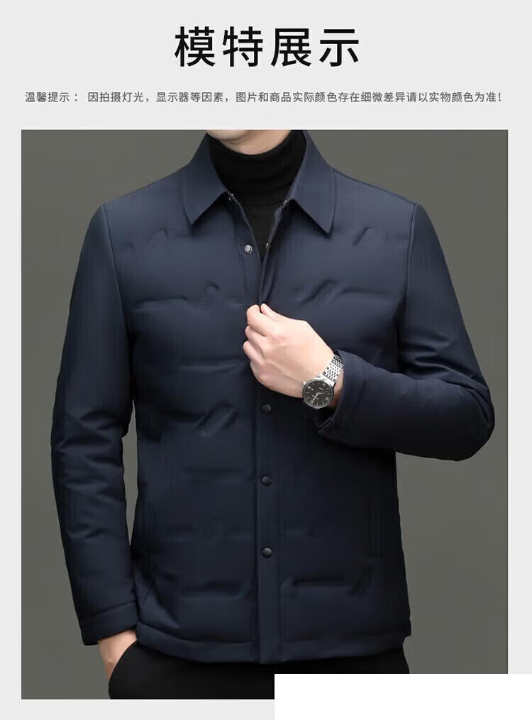 利郎(LILANZ)羽绒服男2025秋冬新款商务休闲中青年男士轻薄翻领白鸭绒外套 藏青色 M