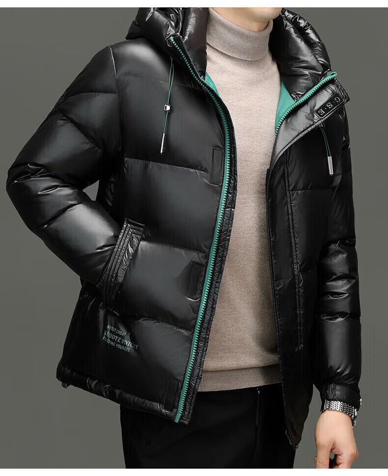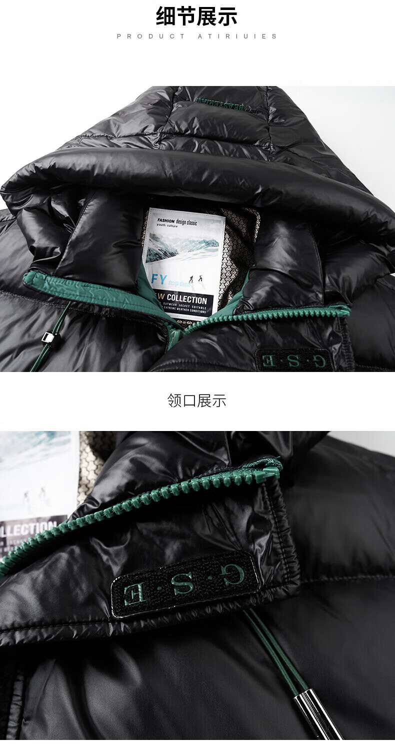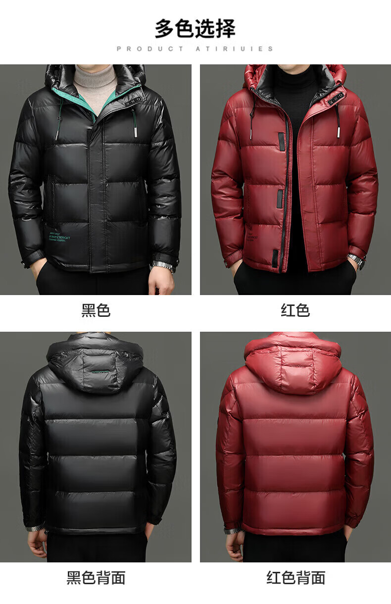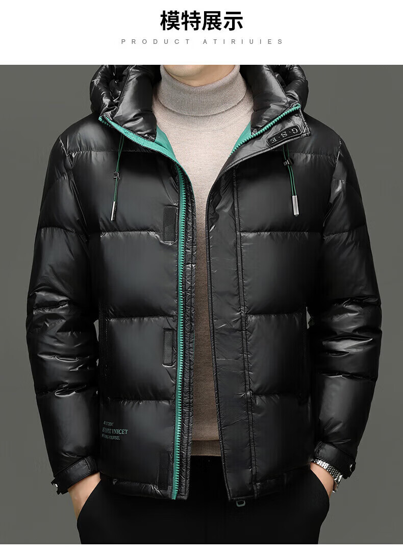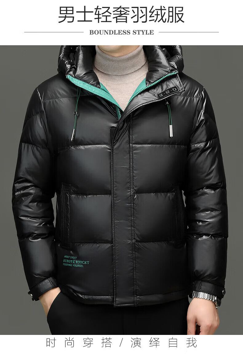 利郎(LILANZ)羽绒服男冬季休闲连帽短款上衣羽绒服青年加厚亮面男士外套潮 黑色 M 170