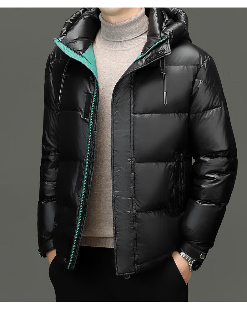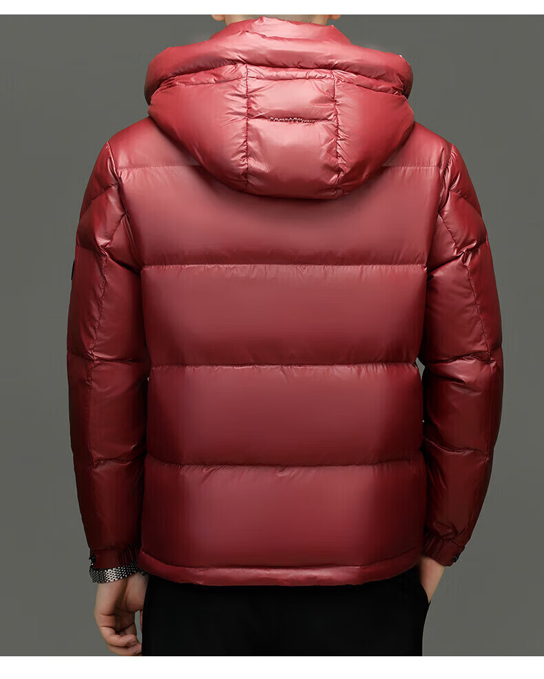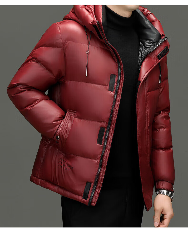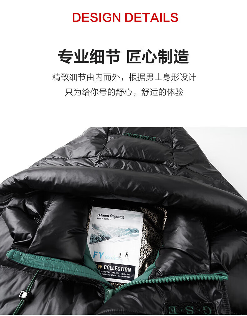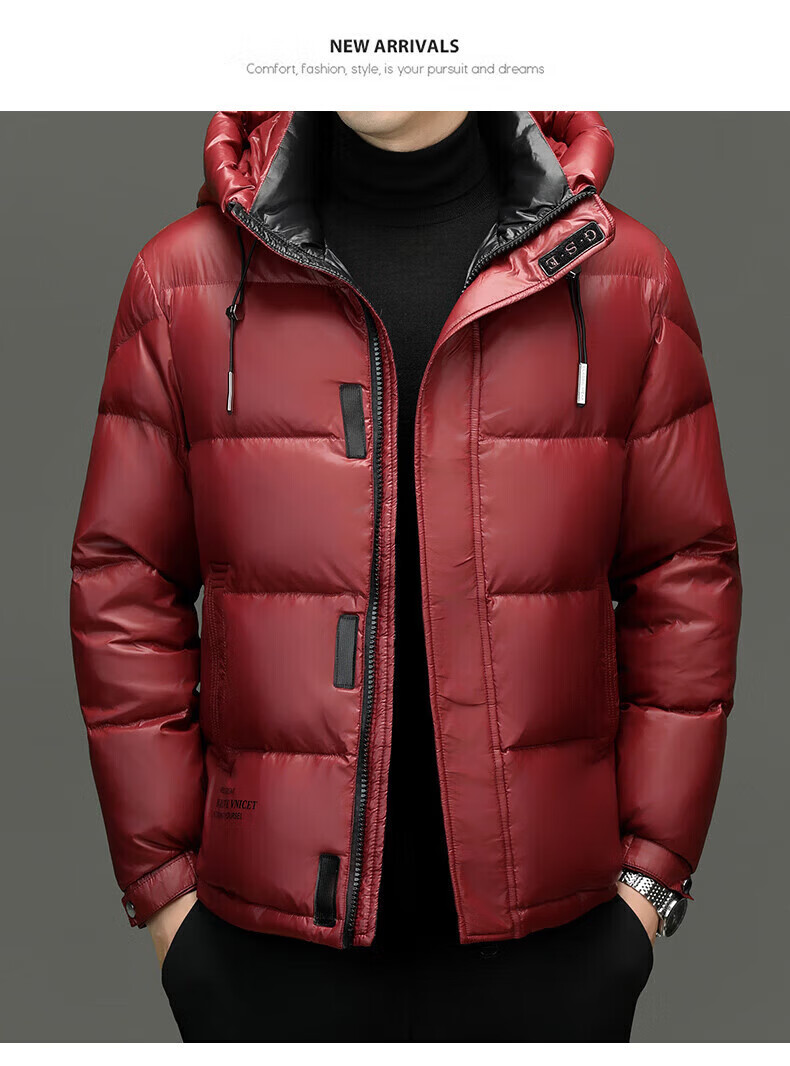 利郎(LILANZ)羽绒服男冬季休闲连帽短款上衣羽绒服青年加厚亮面男士外套潮 黑色 M 170