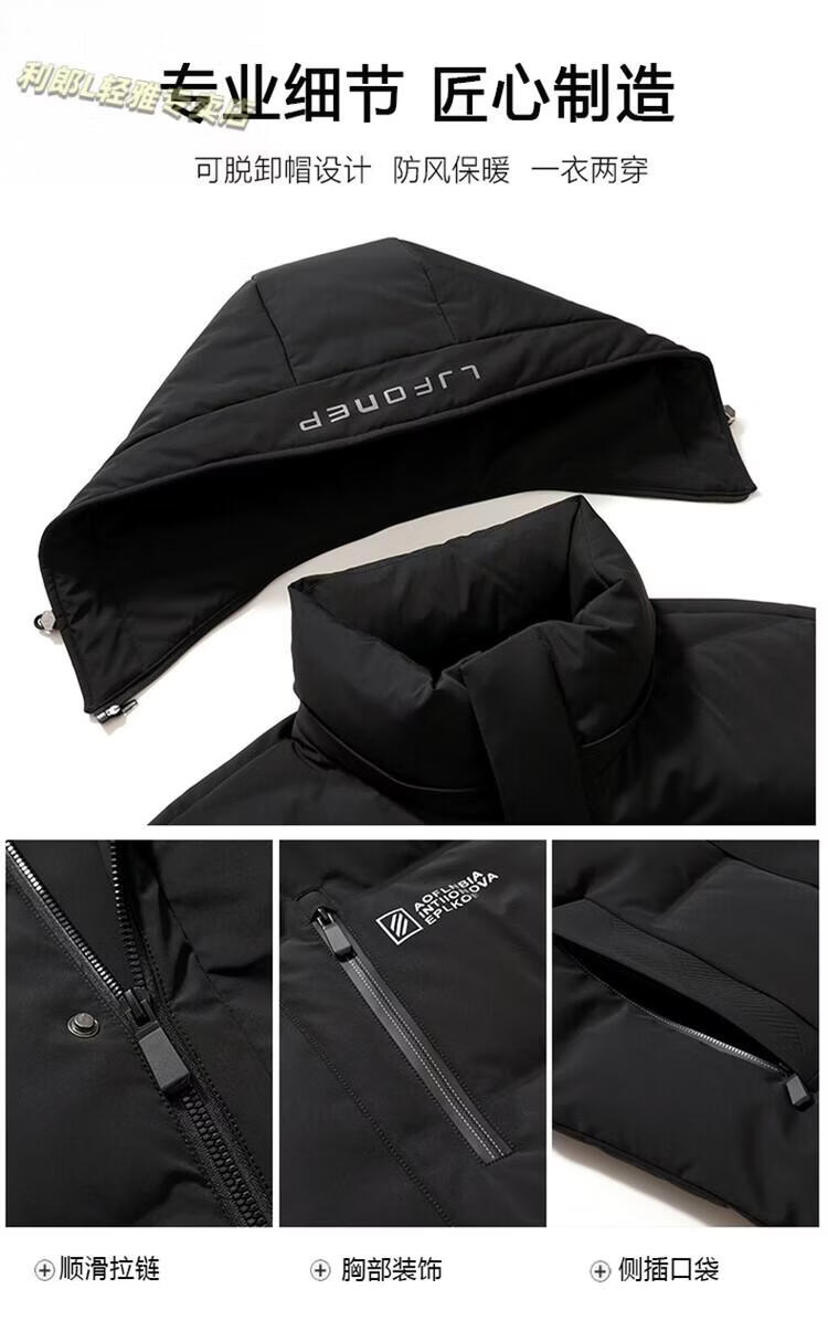 LILANZ goose down jacket men's 2025 winter new cold-resistant thickened warm windproof casual men's down jacket jacket black M