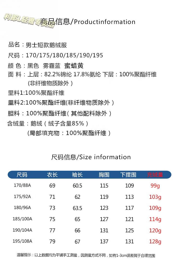 China (cm) 165 / 88-90 170 / 96-98 175 / 108-110 180 / 118-122 185 / 126-130