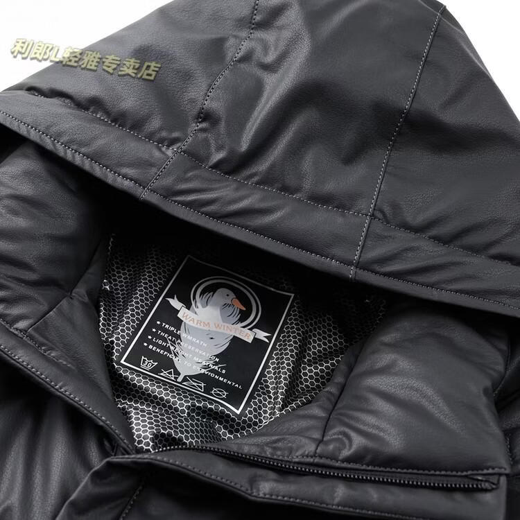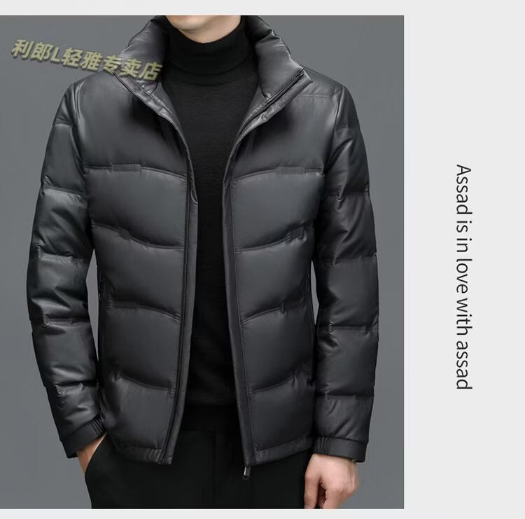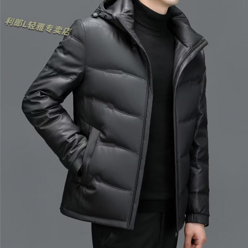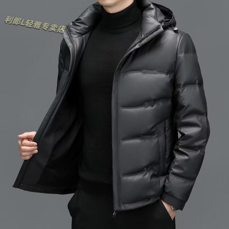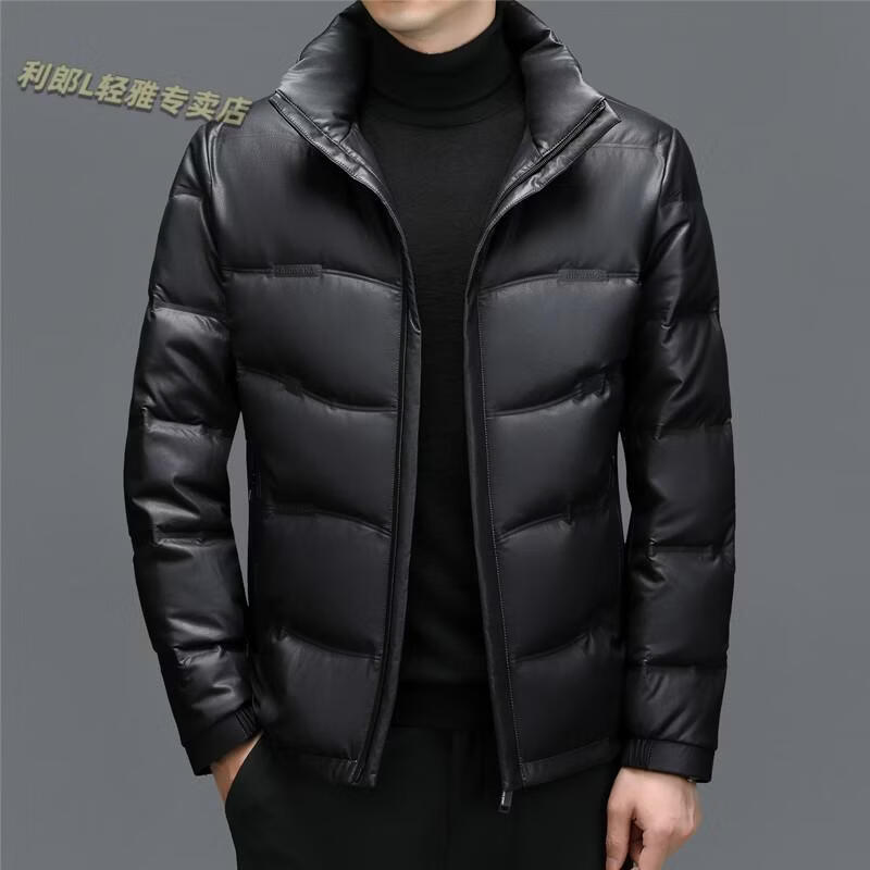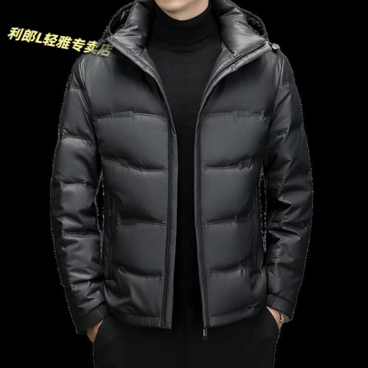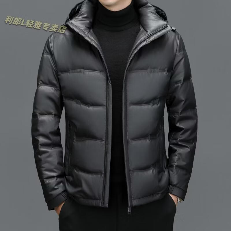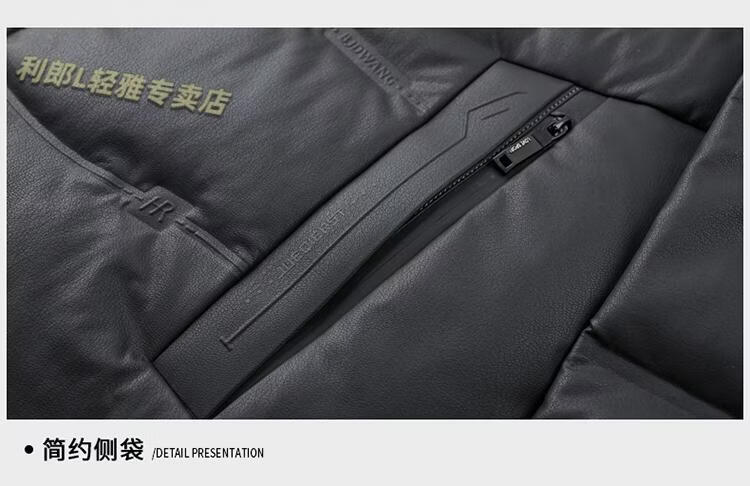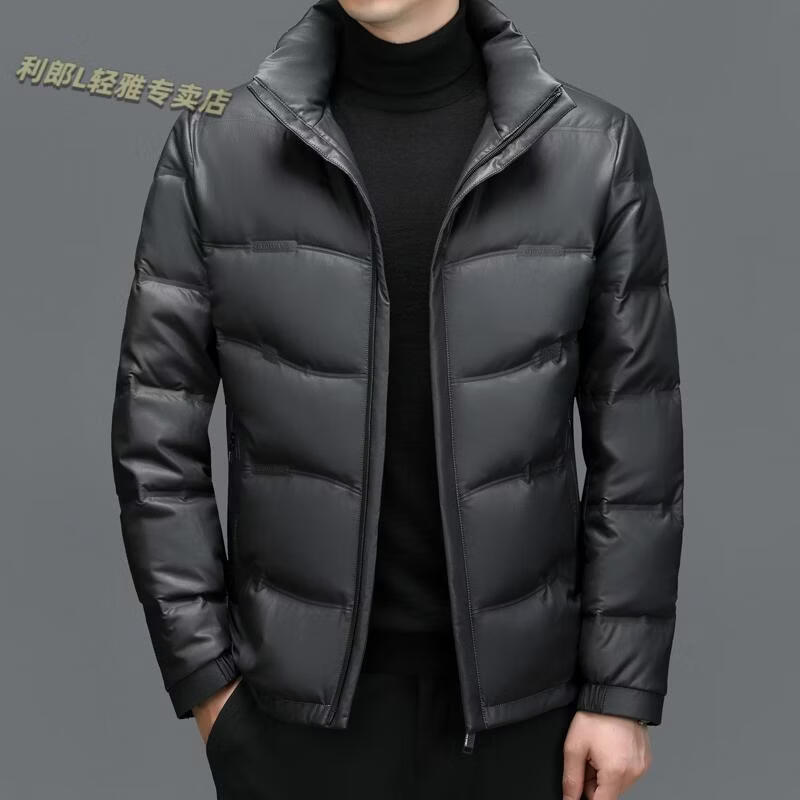 利郎(LILANZ)真皮羽绒服男绵羊皮立领皮夹克爸爸冬装中年皮衣加厚保暖轻薄外套 灰色 M 170