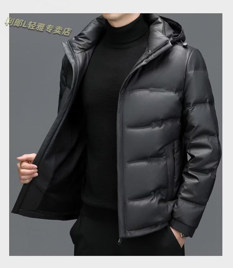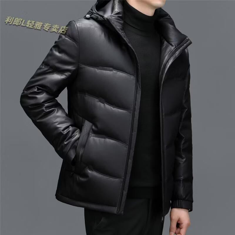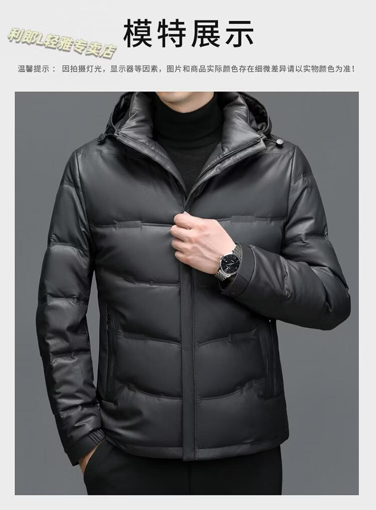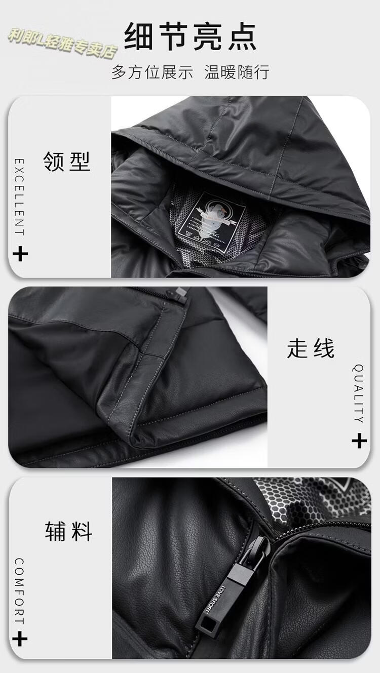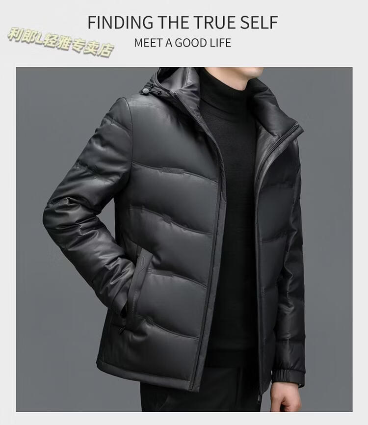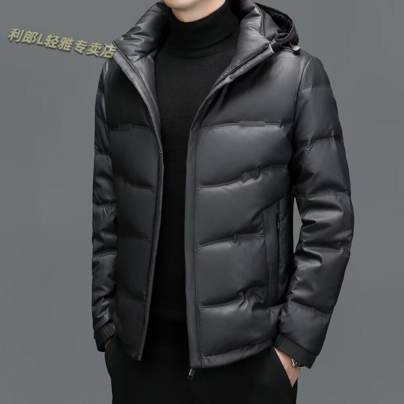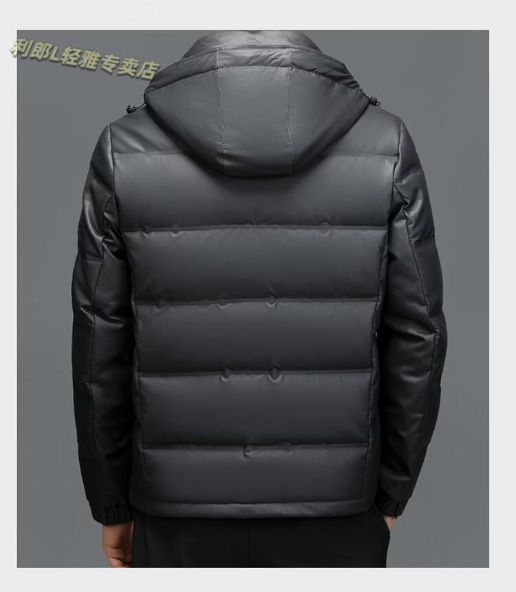 利郎(LILANZ)真皮羽绒服男绵羊皮立领皮夹克爸爸冬装中年皮衣加厚保暖轻薄外套 灰色 M 170